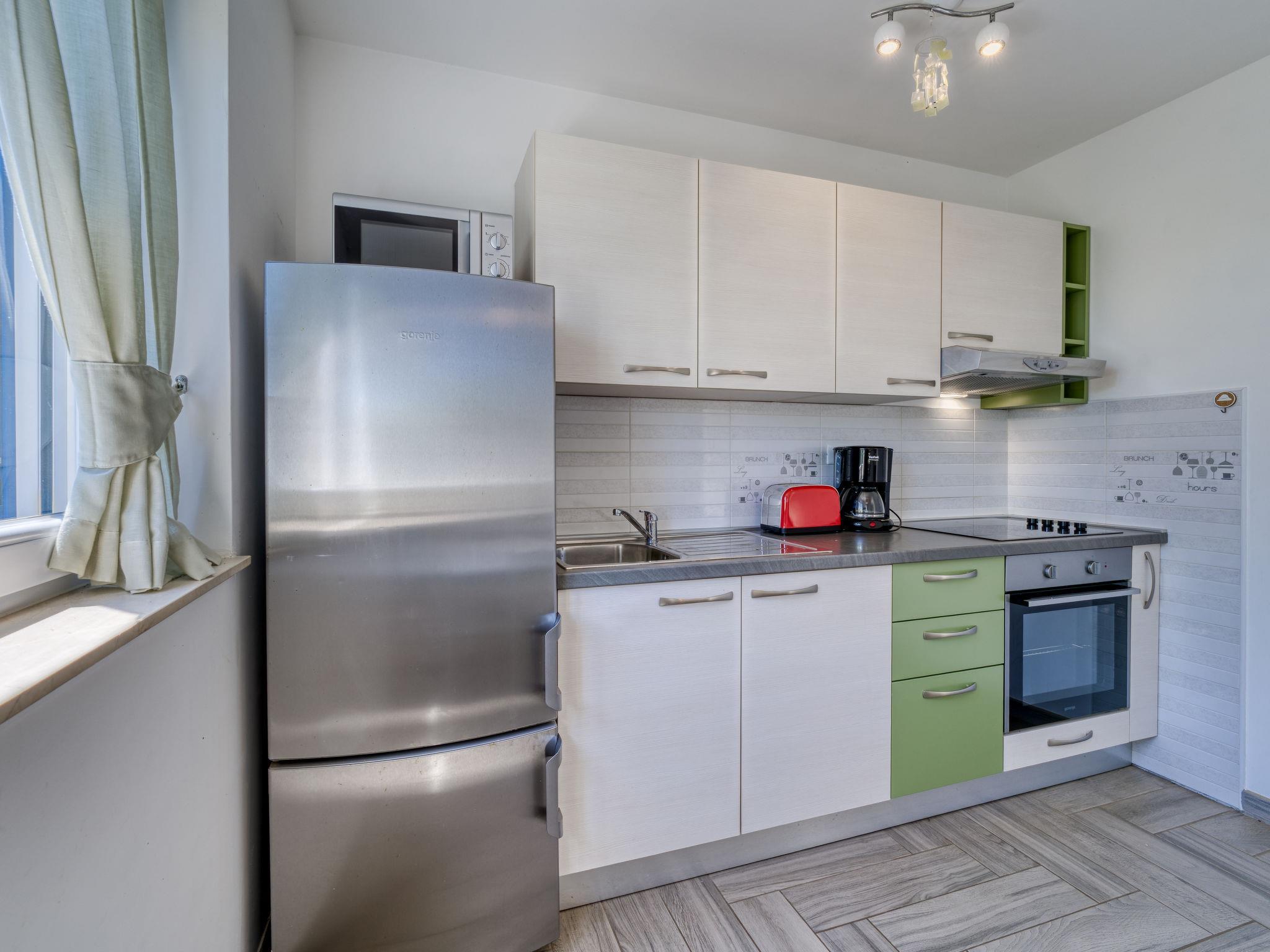 "Terra", 2-room apartment 40 m2, on the ground floor. Living/dining room with 1 sofabed (120 cm, length 200 cm), satellite TV and air conditioning. Exit to the terrace. 1 room with 1 bed (90 cm, length 200 cm), 1 french bed (160 cm, length 200 cm), air conditioning. Open kitchen (oven, 4 ceramic glass hob hotplates, toaster, kettle, microwave, freezer, electric coffee machine). Shower/bidet/WC. Forced-air heating. Terrace 15 m2, roofed. Terrace furniture. Facilities: Internet (WiFi, free). Please note: non-smoking house. 1 small pet/ dog allowed. Private entrance, fire extinguisher.