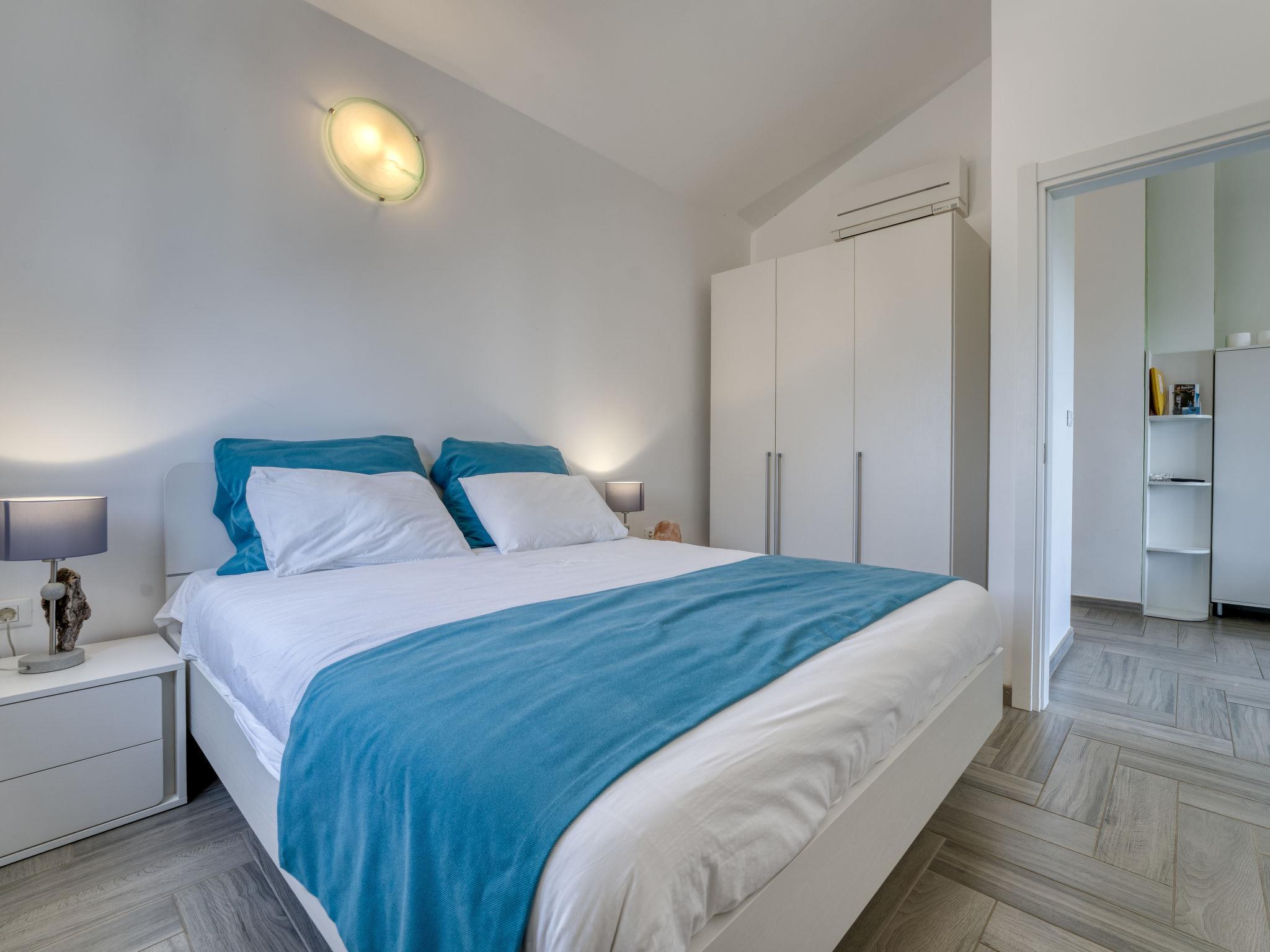 "Aqua", 2-room apartment 40 m2 on 1st floor. Living/dining room with 1 sofabed (120 cm, length 200 cm), satellite TV and air conditioning. Exit to the balcony. 1 room with 1 bed (90 cm, length 200 cm), 1 french bed (160 cm, length 200 cm), air conditioning. Open kitchen (oven, 4 ceramic glass hob hotplates, toaster, kettle, microwave, freezer, electric coffee machine). Shower/bidet/WC. Forced-air heating. Balcony 5 m2. Balcony furniture, covered balcony. Panoramic view of the sea. Facilities: Internet (WiFi, free). Please note: non-smoking house. 1 small pet/ dog allowed. Private entrance, fire extinguisher.