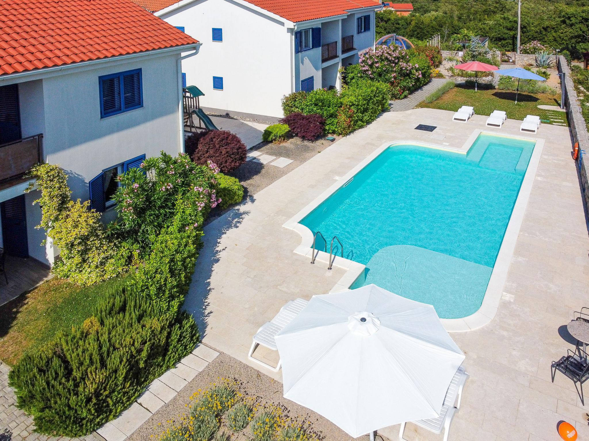 Cosy apartment house "Wabi Sabi Resort 2". In the hamlet Brzac 14 km from the centre of Krk, 14 km from the centre of Malinska, 1.5 km from the sea, 1.5 km from the beach, in the countryside. For shared use: property 1'500 m2 (fenced), well-kept garden with plants and flowers, swimming pool (9 x 6 m, depth 150 cm, seasonal availability: 01.May. - 30.Sep.). Children's pool, outdoor shower, barbecue, children's playground (slide, swing), pool maintenance by the owner/gardener. In the house: internet access. Parking at the house. Shop 1.2 km, supermarket 5 km, restaurant 1 km, bus stop 1.5 km, ferry "Valbiska" 8 km, pebble beach 1.5 km, rocky beach 3.5 km, diving center 14 km. Marina 25 km, walking paths from the house 20 m. Please note: suitable for families. On request: airport transfer to the holiday accommodation. Airfield 28 km from the property.