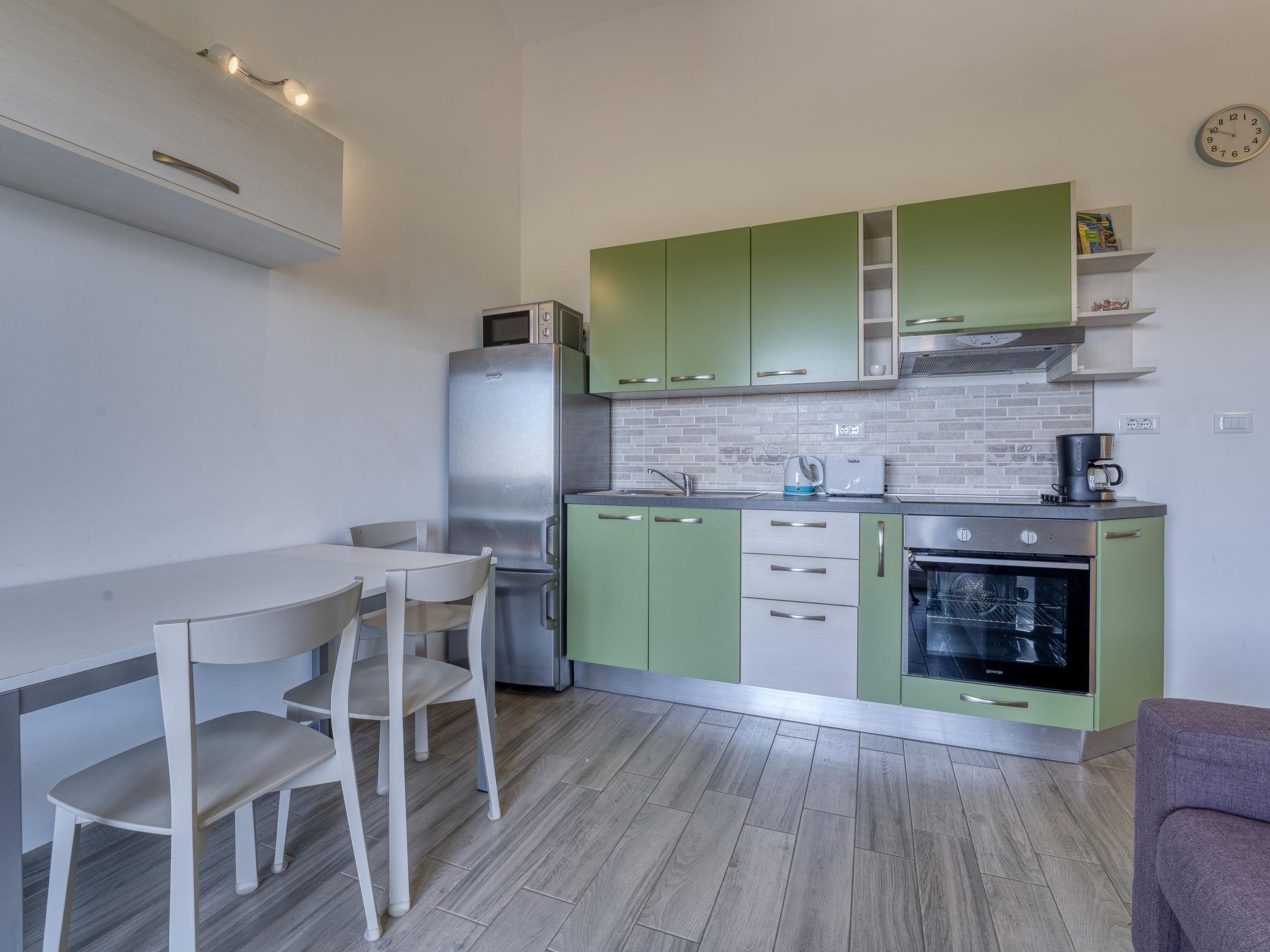 "Aria", 2-room apartment 40 m2 on 1st floor. Living/dining room with 1 sofabed (120 cm, length 200 cm), satellite TV and air conditioning. Exit to the balcony. 1 room with 1 bed (90 cm, length 200 cm), 1 french bed (160 cm, length 200 cm), air conditioning. Open kitchen (oven, 4 ceramic glass hob hotplates, toaster, kettle, microwave, freezer, electric coffee machine). Shower/bidet/WC. Forced-air heating. Balcony 5 m2. Balcony furniture, covered balcony. Panoramic view of the sea. Facilities: Internet (WiFi, free). Please note: non-smoking house. 1 small pet/ dog allowed. Private entrance, fire extinguisher.