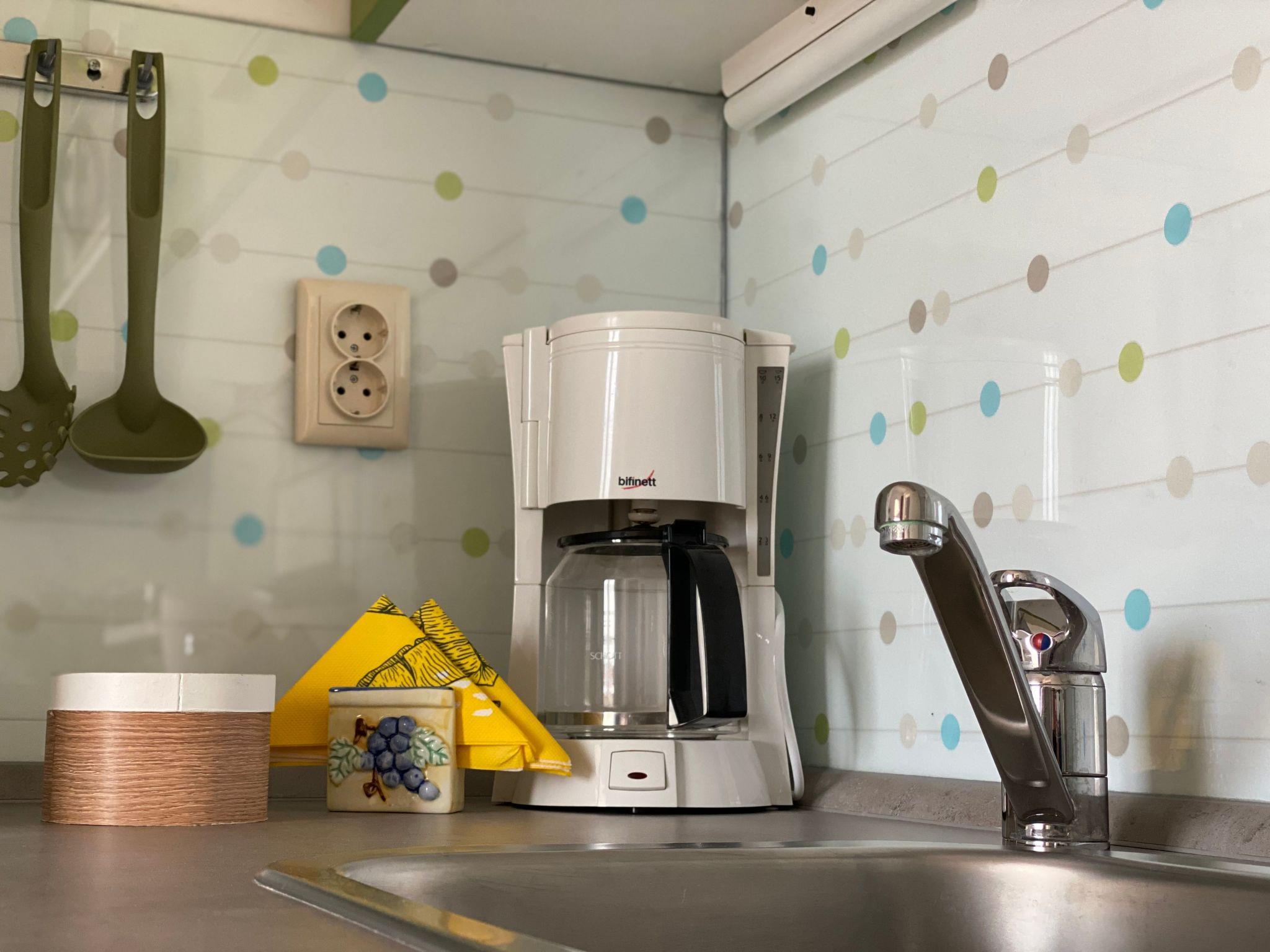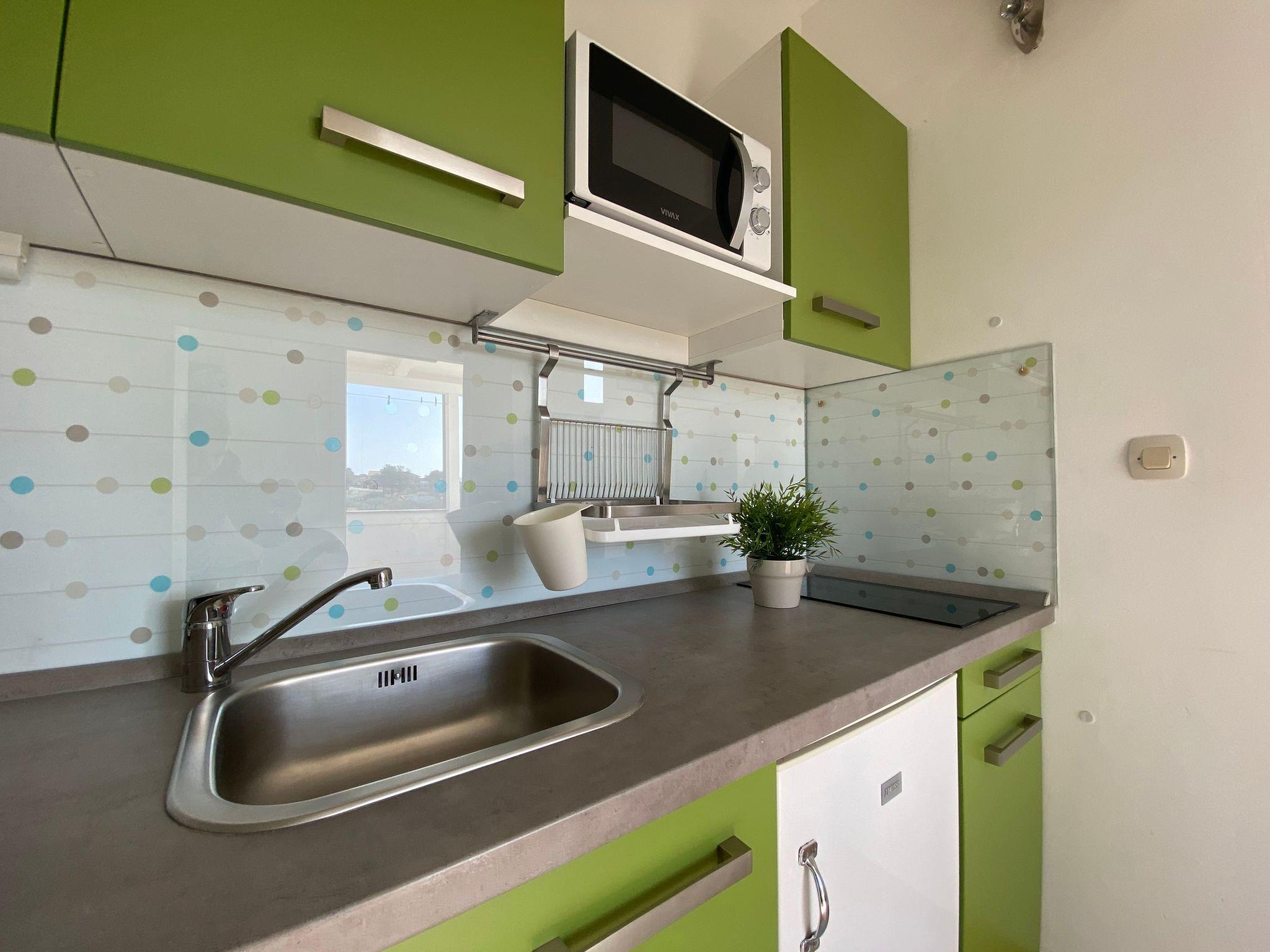 This accommodation is on the ground floor and consists of a dining area with a kitchen unit, a bathroom with a shower, a bedroom with a three-quarter bed and laminate flooring and satellite TV (LCD). Kitchenware an electric hob with two rings, a fridge with a small freezer compartment, a coffee machine, a table and two chairs are provided. The kitchen area and the bathroom are tiled. There is also air conditioning.