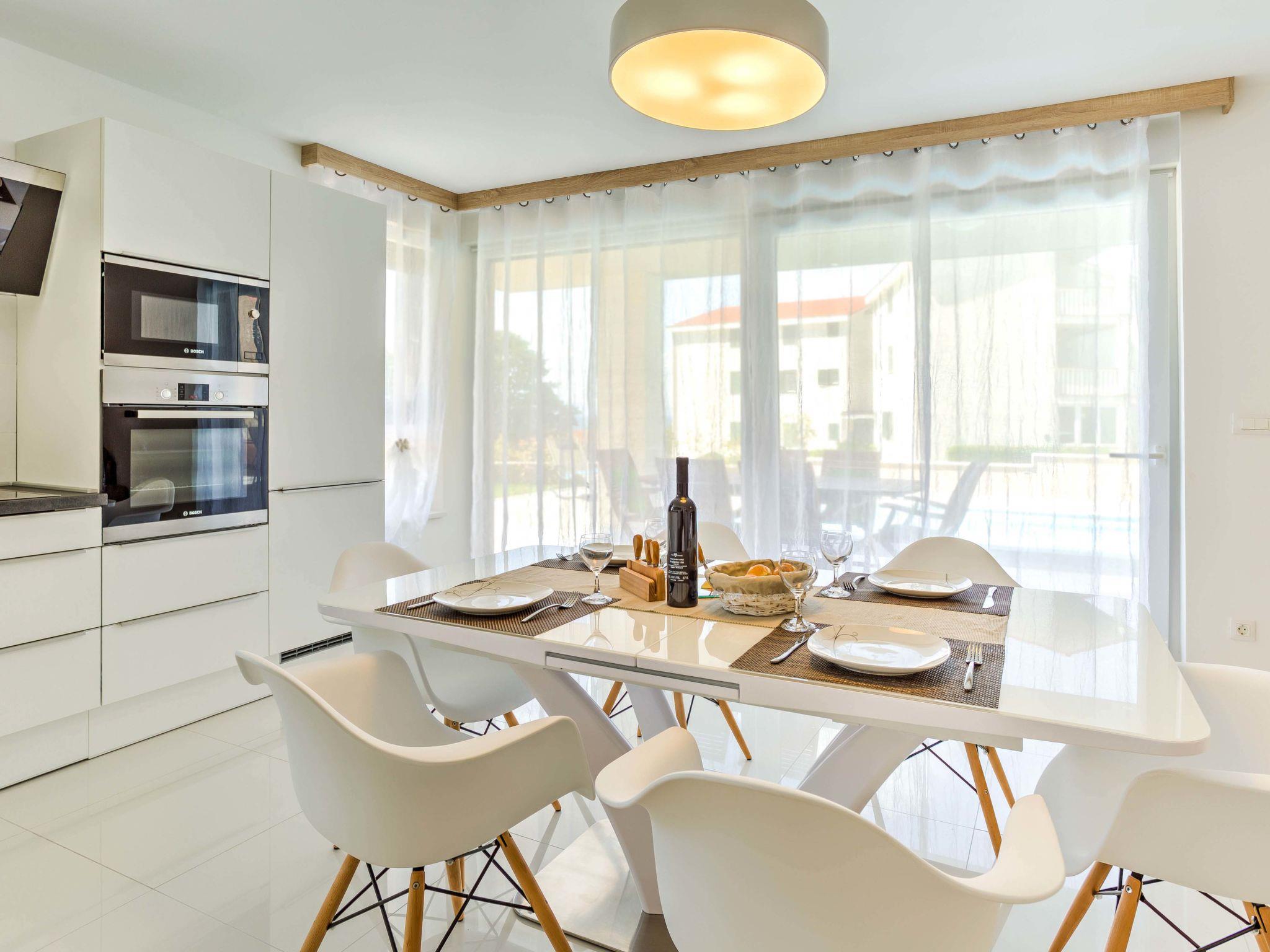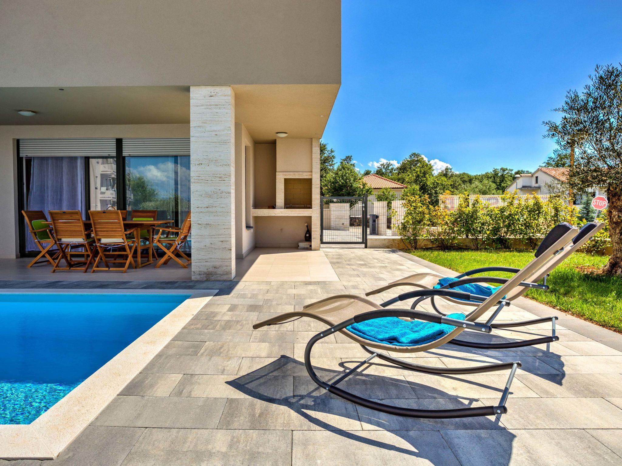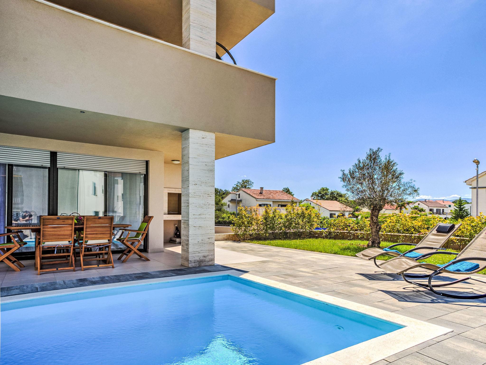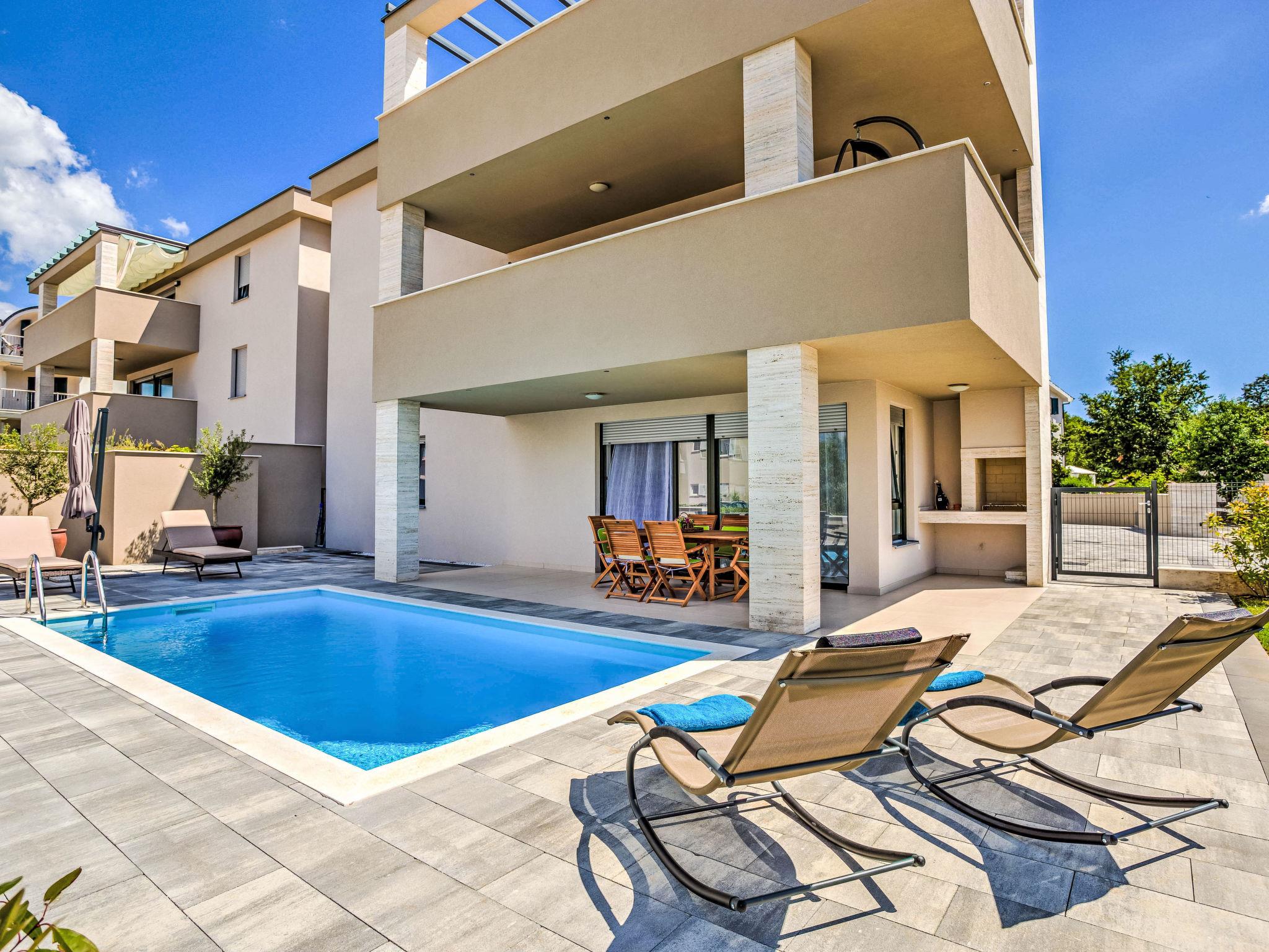 Vantacici 3 km from Malinska: Apartment house "ViD", built in 2016. In a sunny position, 200 m from the sea, 200 m from the beach. Private: swimming pool angular, heated (6 x 3 m, depth 150 cm, seasonal availability: 01.May. - 15.Oct.) with salt-electrolysis pool-cleaning system. Outdoor shower, barbecue. In the house: internet access. Parking at the house on the premises. Shop 1 km, restaurant 750 m, bus stop 1.8 km, pebble beach, rocky beach, concrete beach 200 m. The owner does not accept any youth groups. Neighbourhood highly sensitive to noise. Quietness and good behaviour expected. Organizing a party is not allowed.