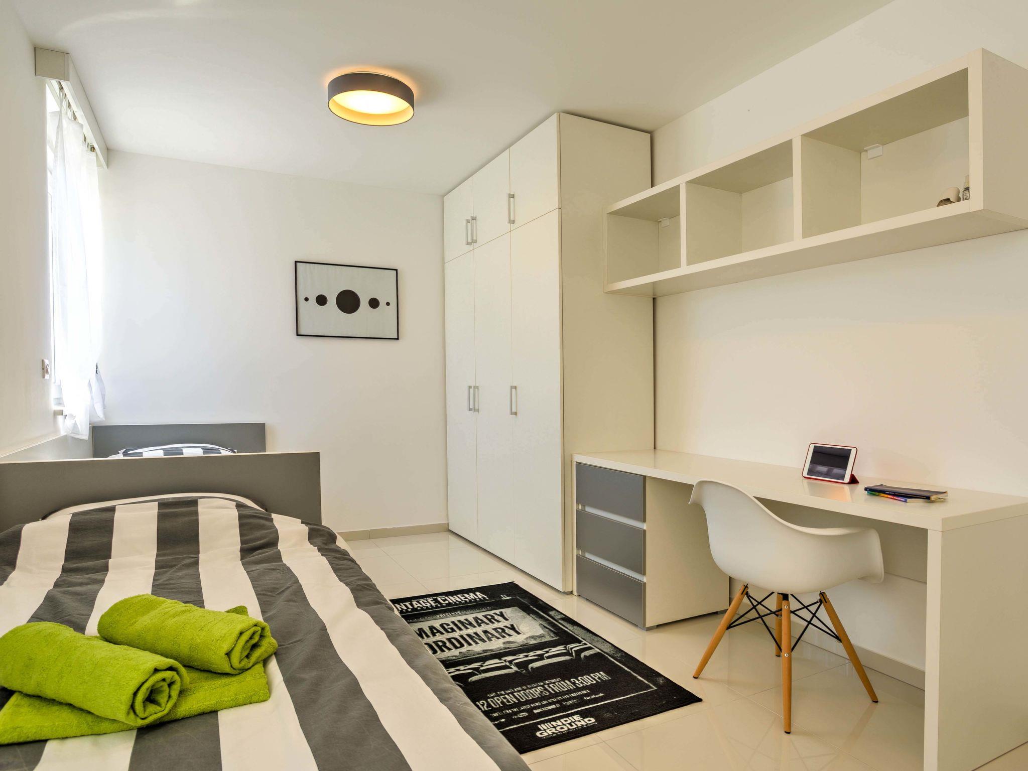 4-room apartment 122 m2, on the ground floor, south facing position. Beautiful and modern furnishings: living/dining room 35 m2 with satellite TV (flat screen), air conditioning. Exit to the terrace, to the swimming pool. 2 rooms, each room with 1 french bed (180 cm, length 200 cm), shower/WC and satellite TV (flat screen), air conditioning. 1 room with 2 beds (90 cm, length 200 cm), air conditioning. Open kitchen (oven, dishwasher, 4 ceramic glass hob hotplates, microwave, freezer, electric coffee machine). Shower/WC. Heating. Terrace 100 m2 partly roofed. Terrace furniture. Facilities: washing machine, safe, children's high chair, baby cot, hair dryer. Internet (WiFi, free). Parking (fenced).