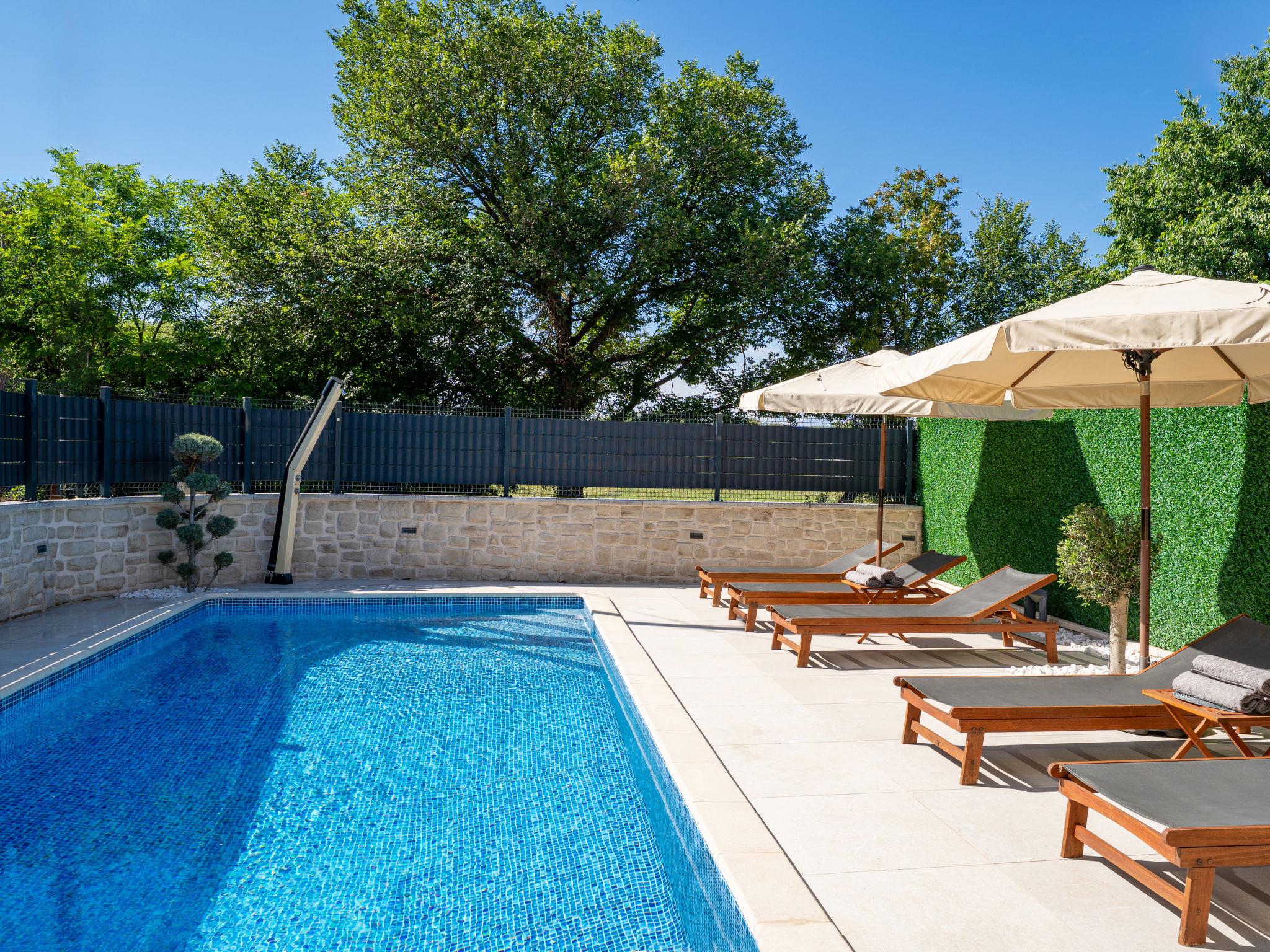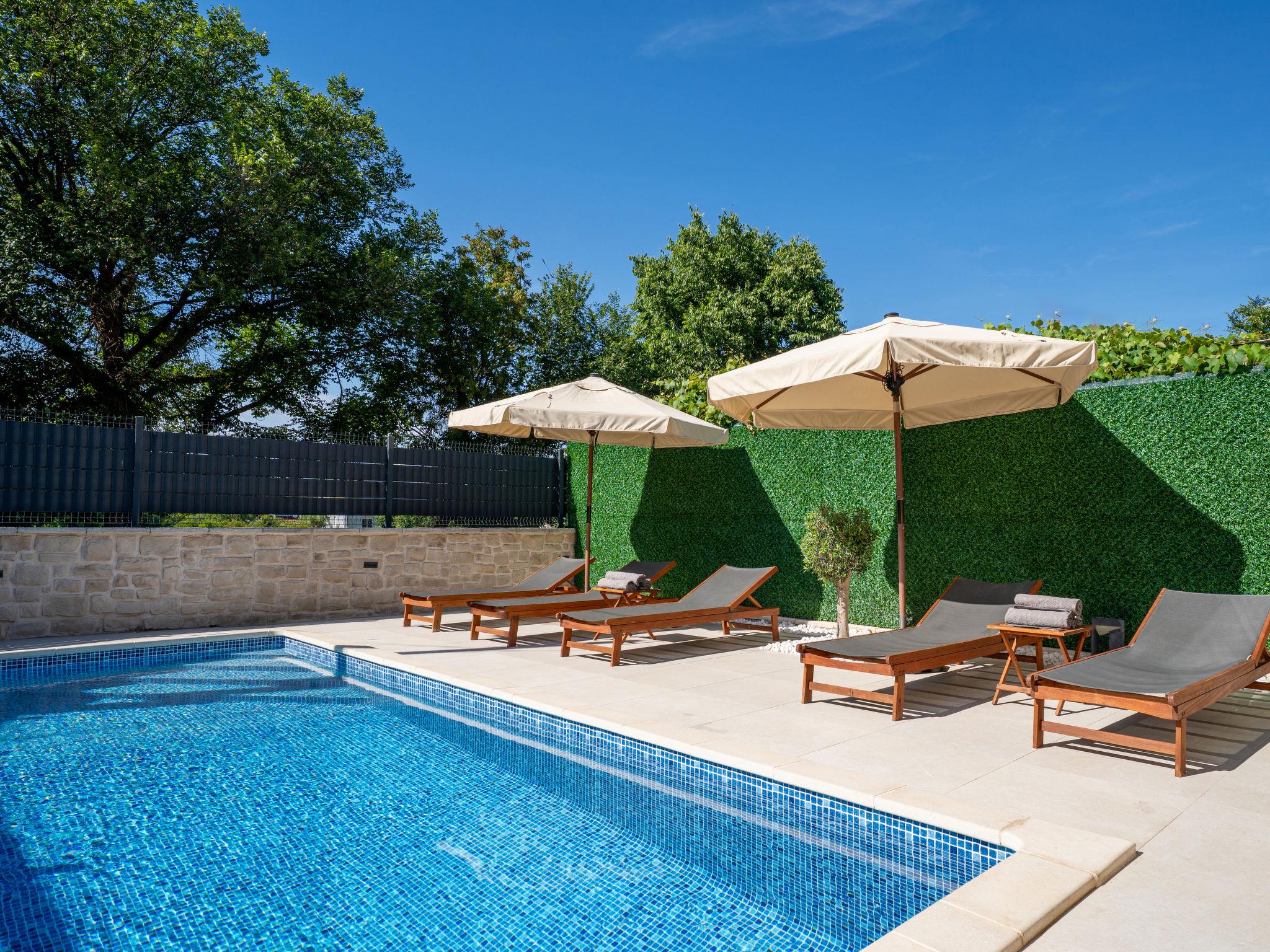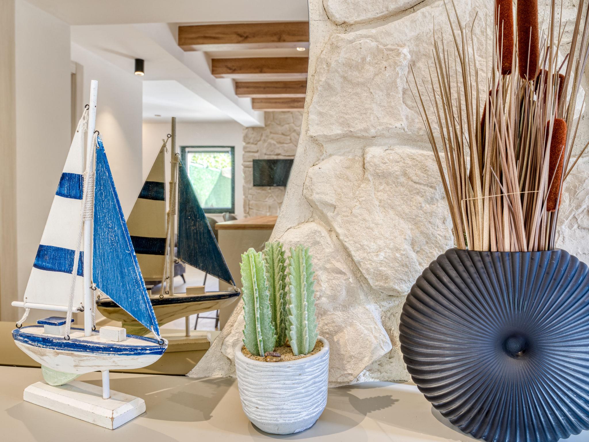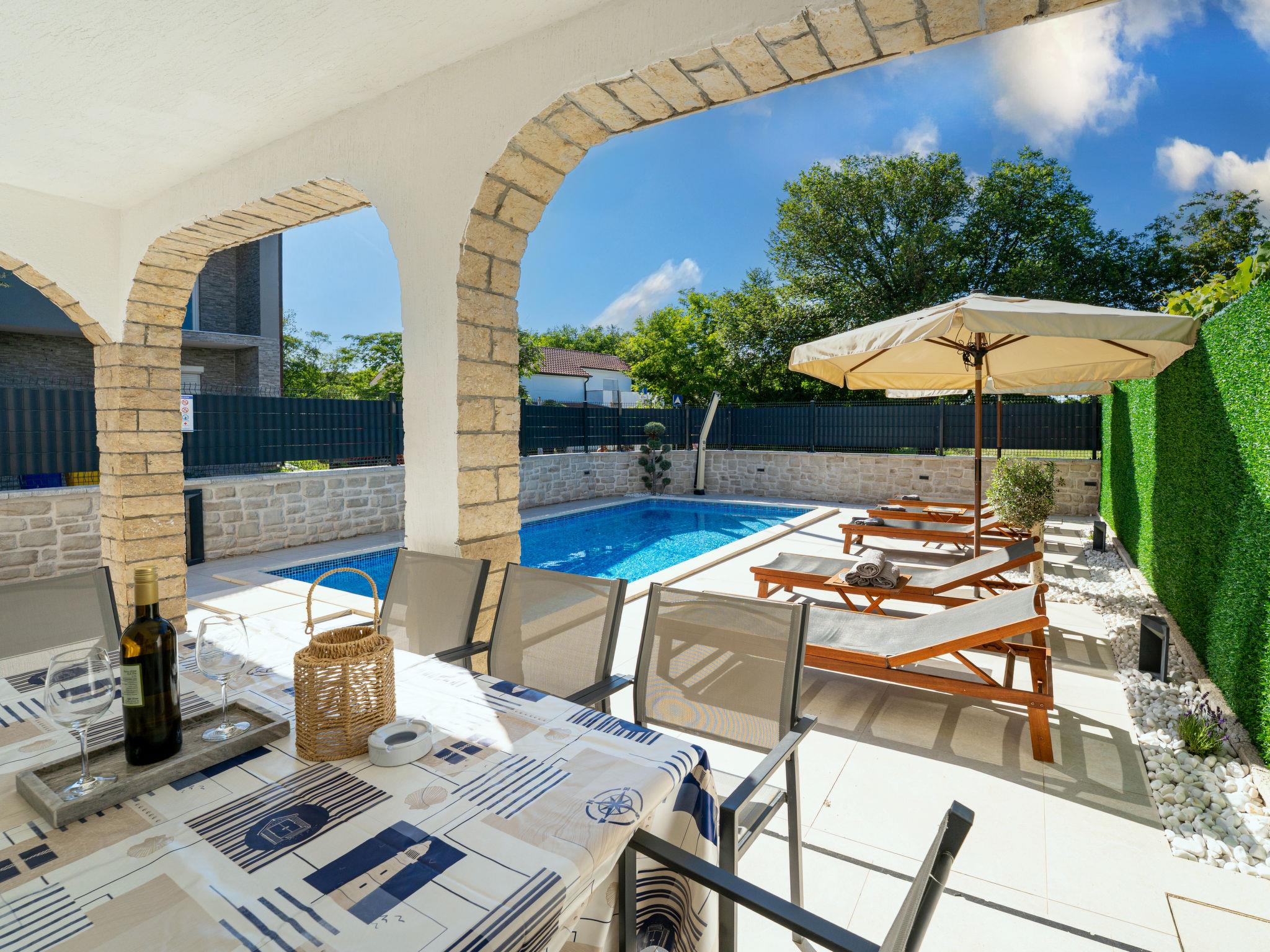 Semi-detached house "Domagoj". In the hamlet Sveti Anton 2.5 km from the centre of Malinska, 11 km from the centre of Krk, 20.5 km from the centre of Vrbnik, 1.8 km from the sea. Private: property 200 m2 (fenced) with trees, swimming pool heated (7 x 3 m, 24 m2, depth 120 - 150 cm, seasonal availability: 15.Mar. - 15.Nov.) with salt-electrolysis pool-cleaning system. Outdoor shower, pool maintenance by the owner/gardener. In the house: washing machine (for shared use, extra). Parking (for 2 cars) on the premises. Shop 1 km, bus stop 350 m, pebble beach 1.8 km. Please note: the owner lives in the same residence. Airfield 17 km from the property. The owner lives in an apartment on the upper floor.