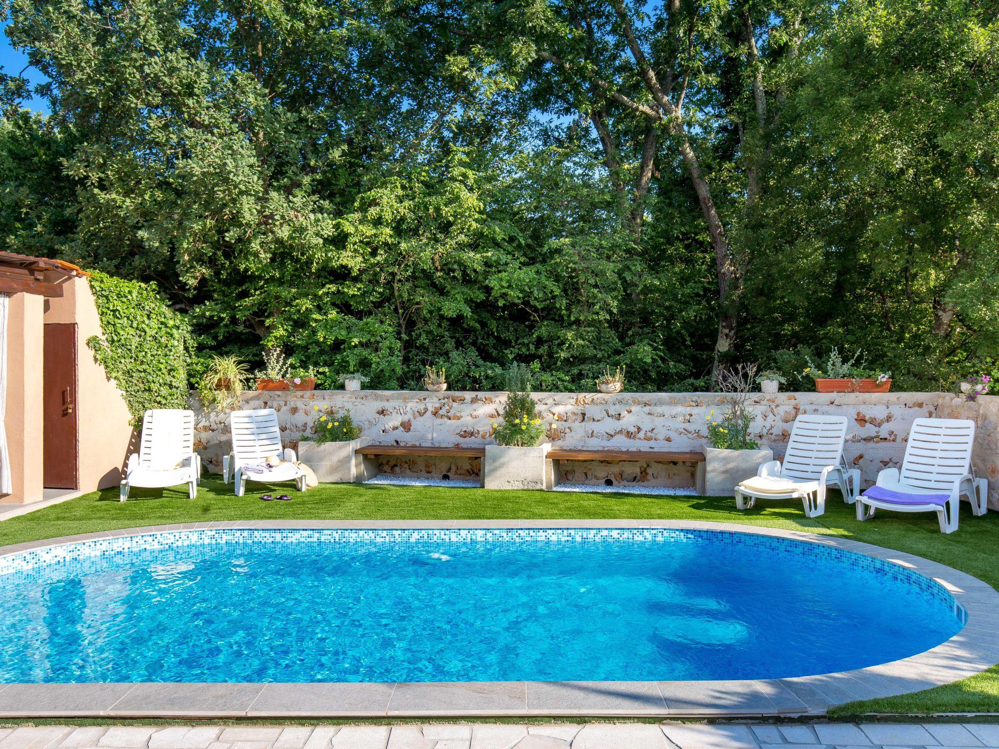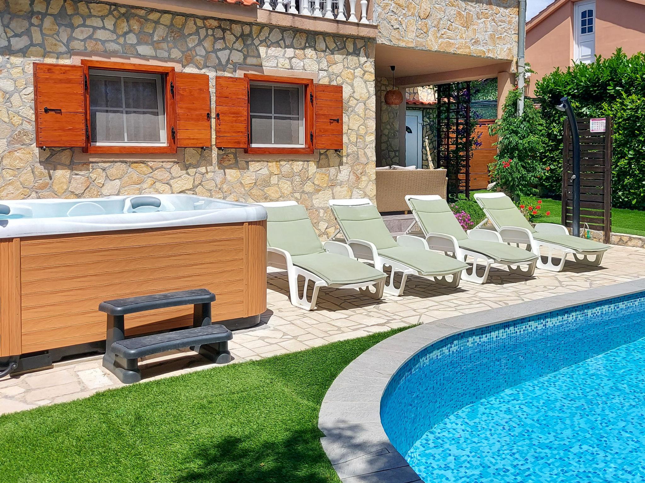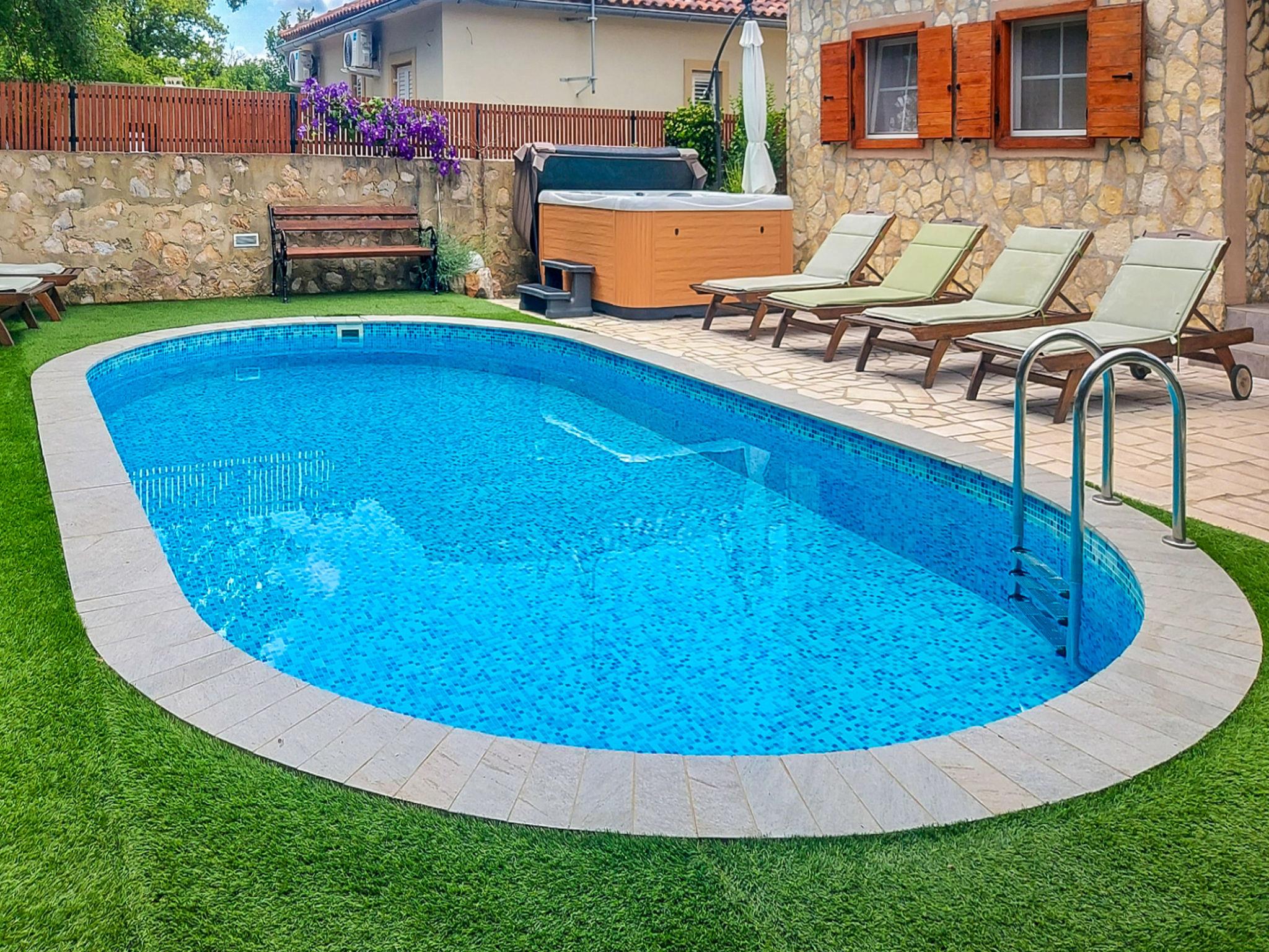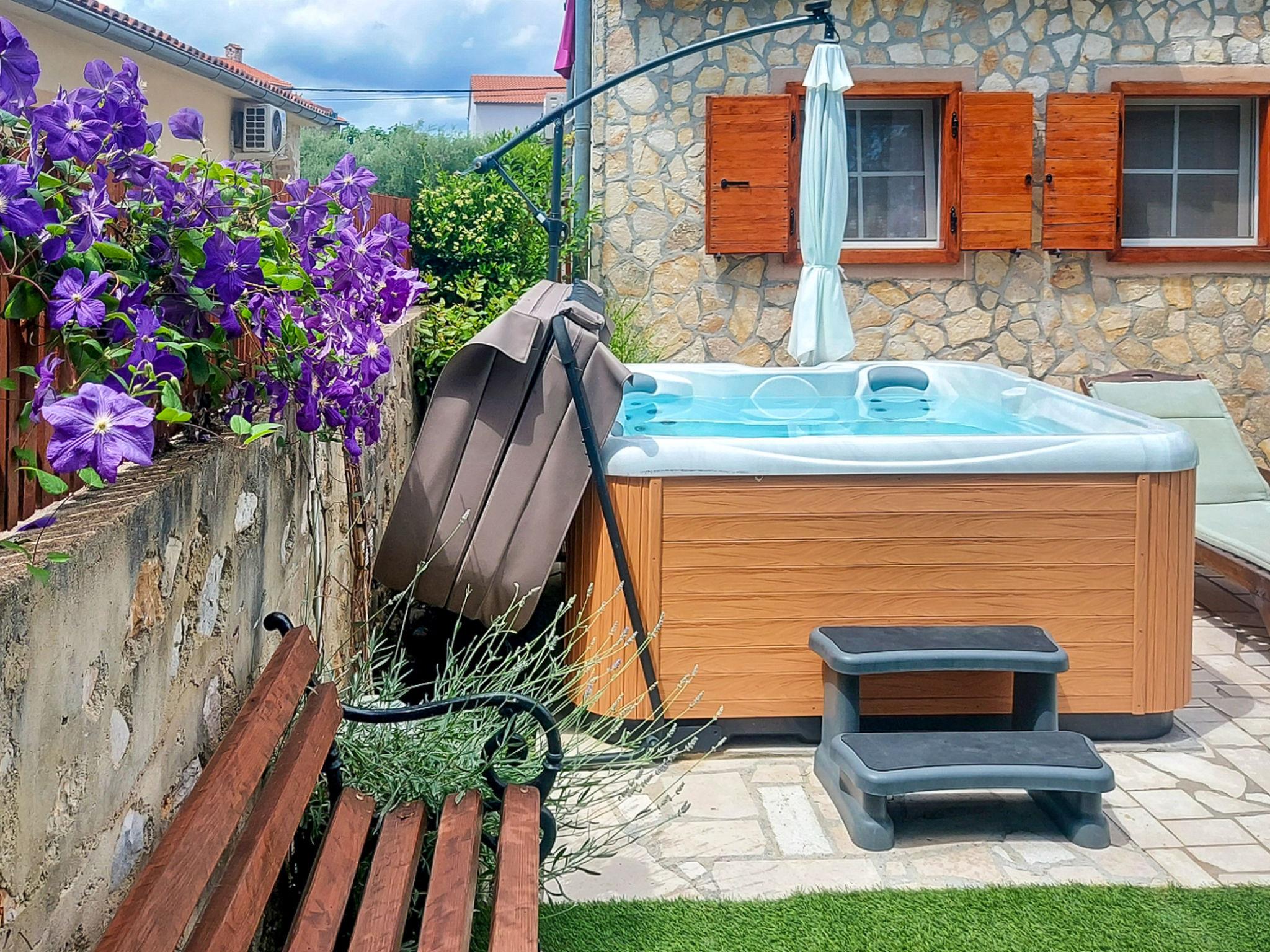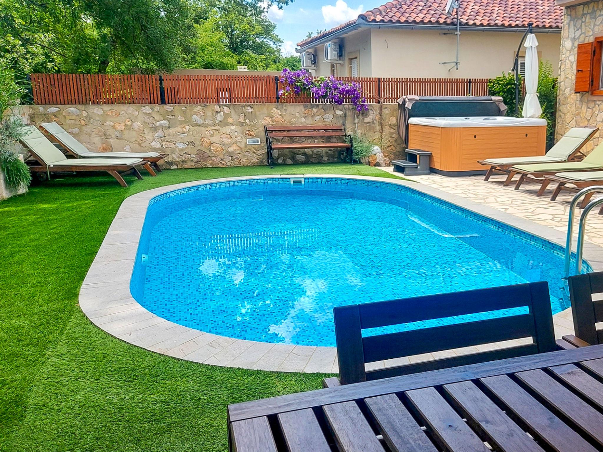 House "Mikac", 2 storeys. In the hamlet Županje 12 km from the centre of Malinska, 3 km from the centre of Šilo, 13 km from the centre of Vrbnik, 3.1 km from the sea, 3.1 km from the beach. Private: property 400 m2 (fenced), swimming pool (7 x 3 m, depth 120 cm, seasonal availability: 15.Mar. - 15.Nov.). Outdoor shower, hot tub, terrace (9 m2), garden furniture, barbecue, pool maintenance by the owner/gardener. In the house: internet access, sauna, washing machine. Parking (for 5 cars) on the premises. Shop 1.4 km, bus stop 3.5 km, sandy beach 4 km pebble beach 3.1 km. The owner does not accept any youth groups. Please note: the owner lives in the same residence. Airfield 16 km from the property. The owner lives in an apartment on the upper floor.