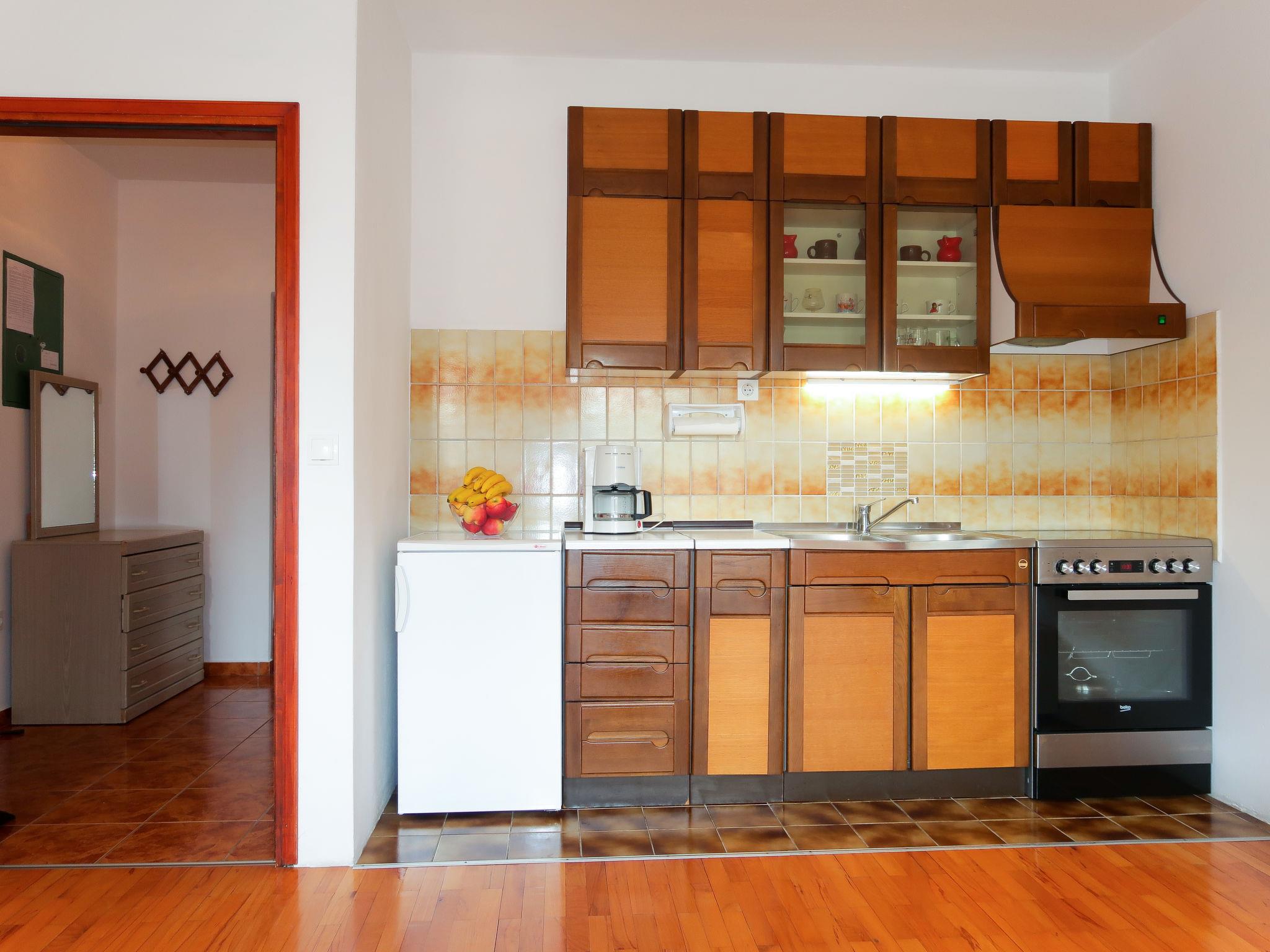 "Vera", 3-room apartment 55 m2, on the ground floor. Living/dining room with satellite TV. 1 room with 1 double bed (2 x 90 cm, length 190 cm). Exit to the terrace. 1 room with 1 double bed (2 x 90 cm, length 190 cm). Open kitchen (oven, 4 ceramic glass hob hotplates, toaster, kettle, microwave, electric coffee machine). Shower/bidet/WC. No heating option. Terrace. Terrace furniture, deck chairs (2). Facilities: hair dryer. Internet (WiFi, free). Please note: non-smoking house.