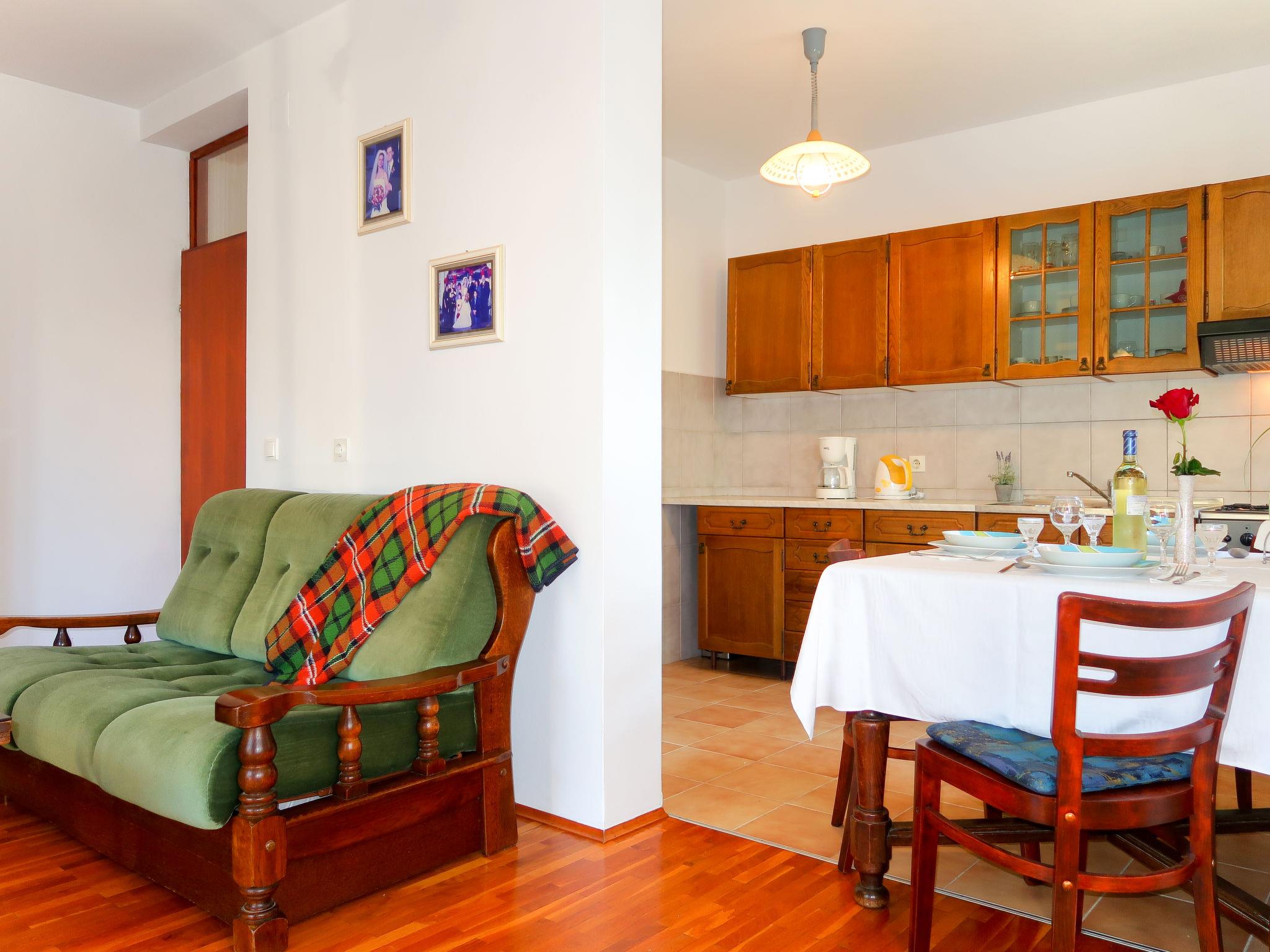 "Vera", 2-room apartment 40 m2, on the ground floor. Living/sleeping room with satellite TV. Exit to the terrace. 1 room with 1 double bed (2 x 90 cm, length 190 cm). Dining room. Open kitchen (1 hot plate, oven, 3 gas rings, toaster, kettle, microwave, freezer, electric coffee machine). Shower/WC. No heating option. Terrace. Terrace furniture, deck chairs (2). Facilities: hair dryer. Internet (WiFi, free). Please note: non-smoking house.