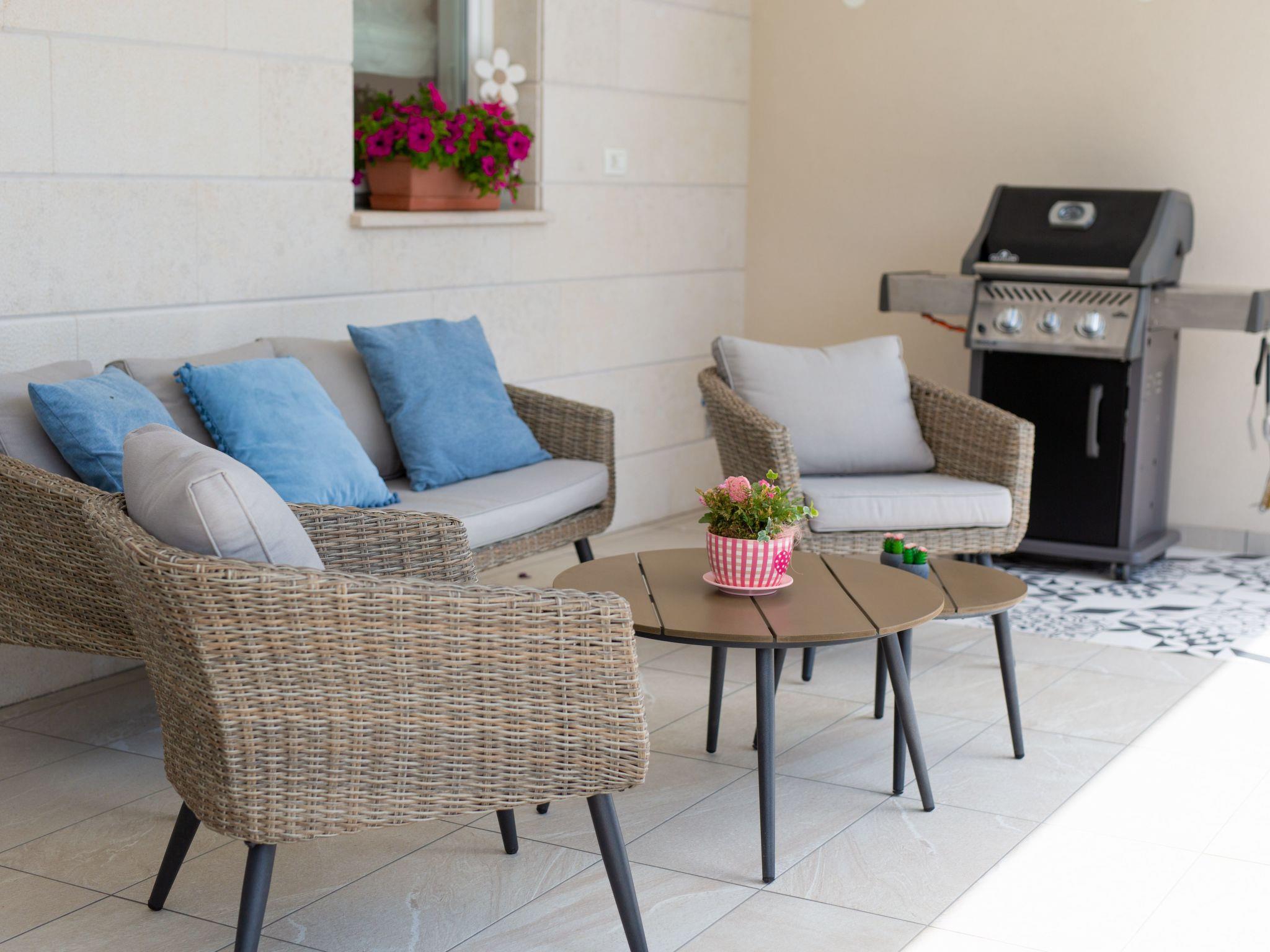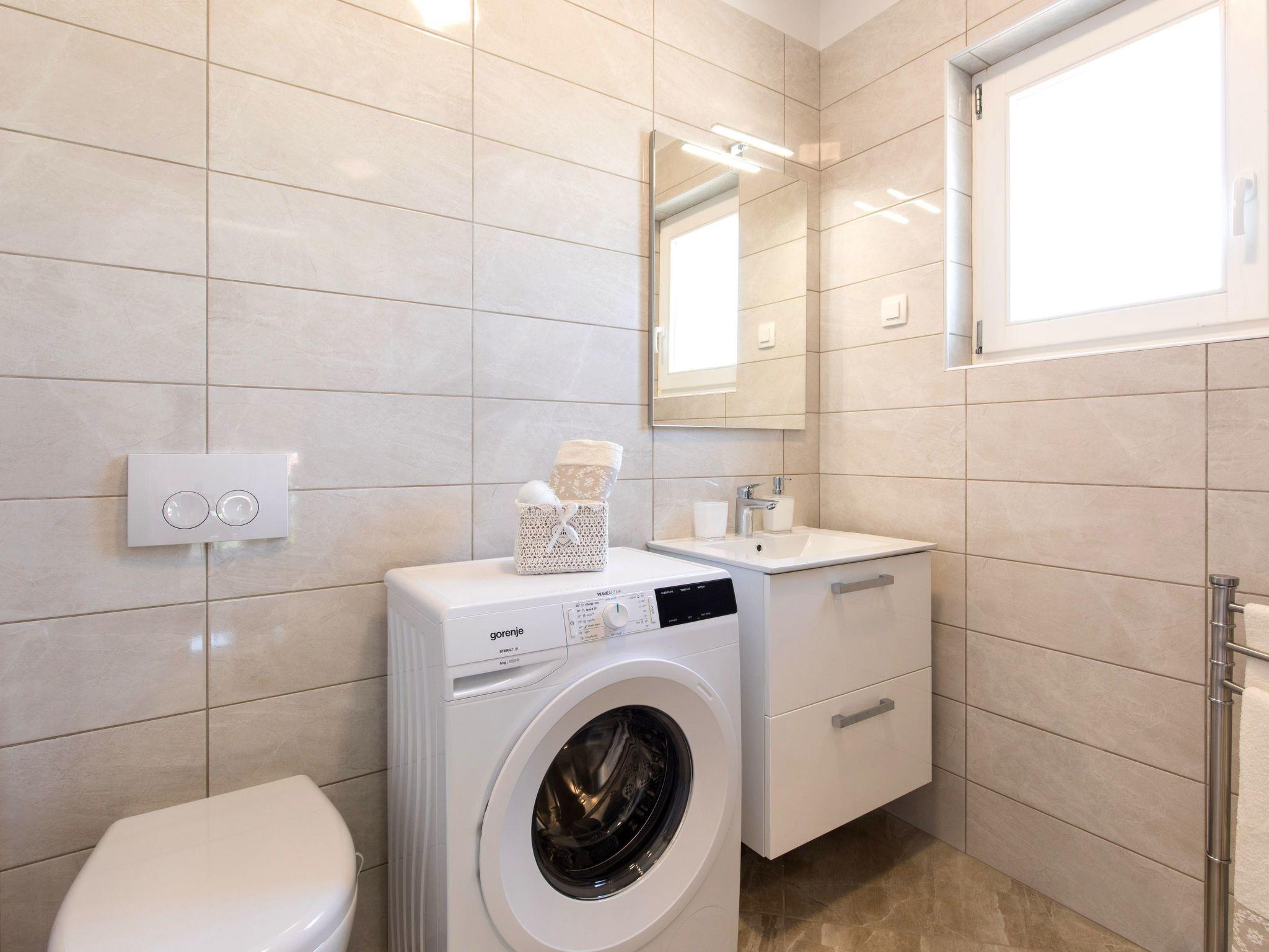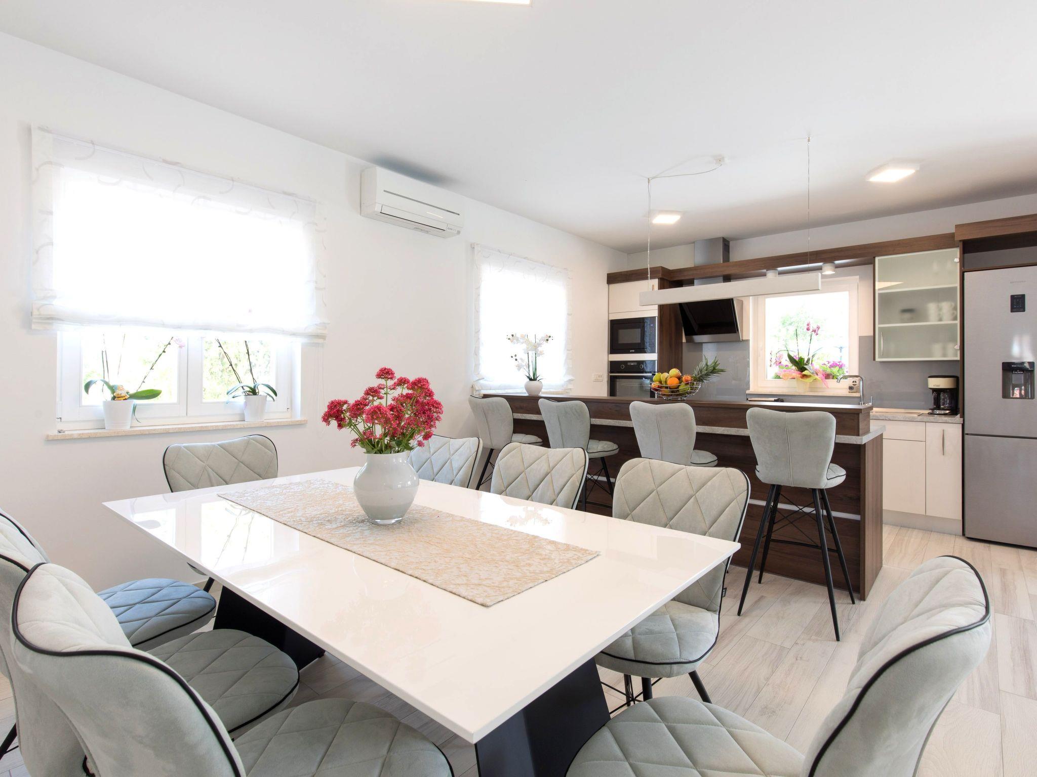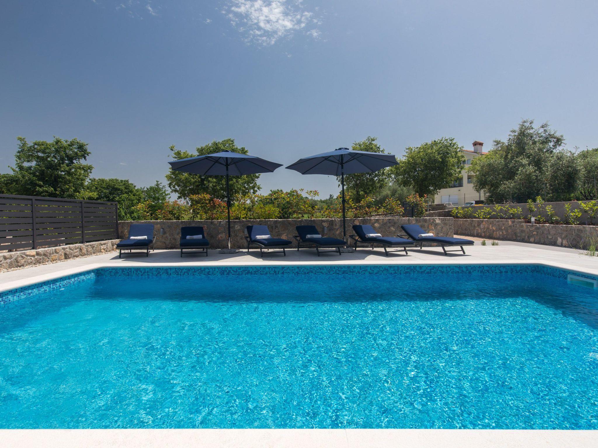 Villa Magdalena with pool, luxury and modernly decorated villa for 9 persons, located in fisherman’s village Porat on the beautiful island of Krk offers you everything you need for a completely enjoyable and relaxing holiday. It is situated in a quiet location, just 350 meters away from the beach and 200 meters from well-known restaurants. From Villa Magdalena, you can quickly reach the center of Malinska by car or by beautiful promenade on a walk. This new villa can accommodate 7 persons in three bedrooms on the first floor, which are all air-conditioned and all have satellite TV as own bathroom. From two bedrooms you can reach the balcony and enjoy the beautiful summer nights on the seating area under the romantic pergola. The ground floor consists of the living room with two extra beds and a dining area, a fully equipped kitchen and a spacious covered terrace with a pool view. Near the villa, you can find a pool, barbecue, children's playground, and a few parking places. Villa Magdalena will be an ideal choice to spend your vacation holidays and surely will not disappoint you!