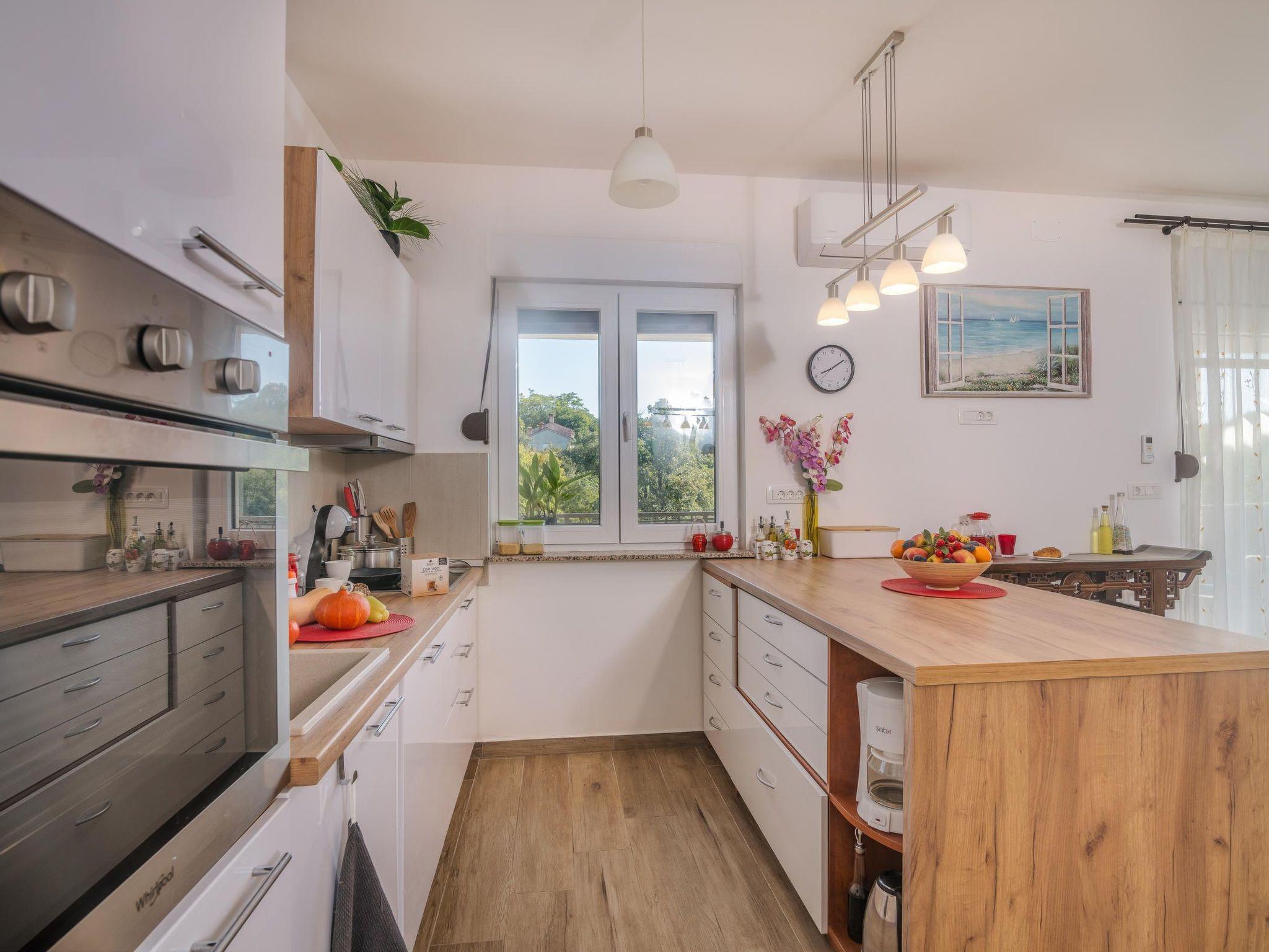 This charming Villa Josie is located in the small village of Gabonjin, 4 kilometers from Malinska. Villa Josie is a two-story house that can accommodate up to 8 people. On the ground floor of the house there is one bedroom, bathroom and toilet, kitchen and living room. On the first floor of the house there are 3 bedrooms with bathrooms.Each room is air-conditioned, as is the living room. On the ground floor you can enjoy a sunny day on the terrace or swimming in the pool. Pets are not allowed in this villa.
