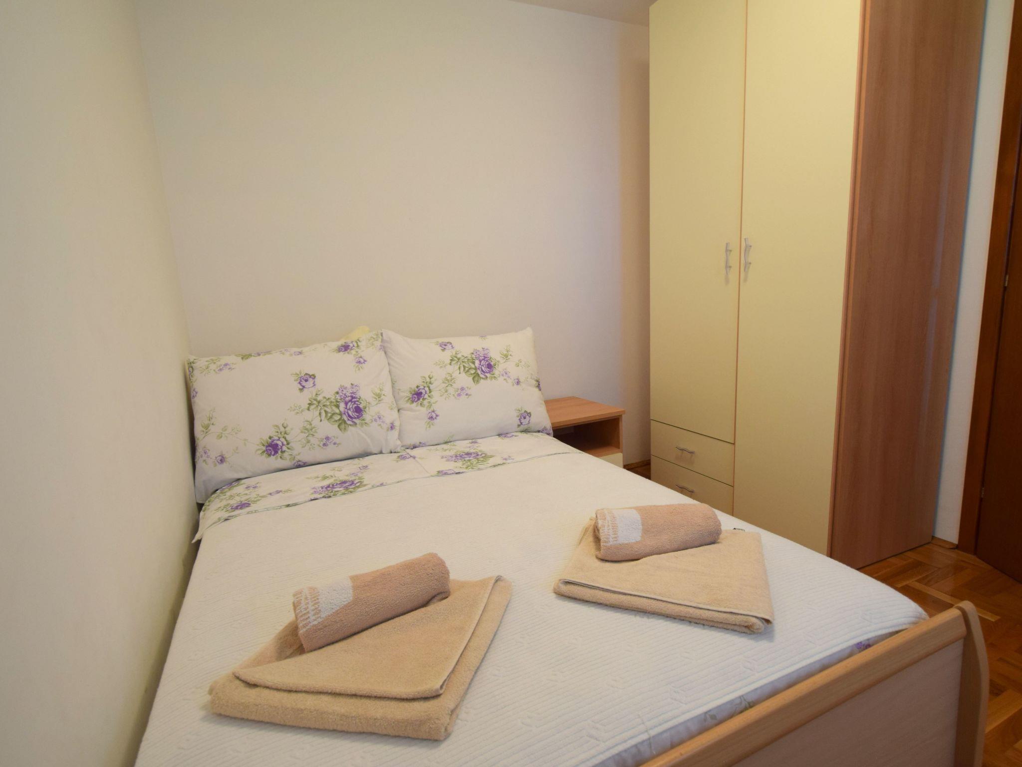 This nice furnished apartment is situated on the 1st floor in an apartment house in Malinska, 500 m away from the pebble beach and 300 m away from the city center, grocery shop, and restaurant. The apartment consists of 2 bedrooms, a living room with kitchen and dining room, and a bathroom with a bathtub. You can enjoy a beautiful sea view from the balcony. TV sat, internet and air conditioning are at your disposal. Pets are not allowed.
