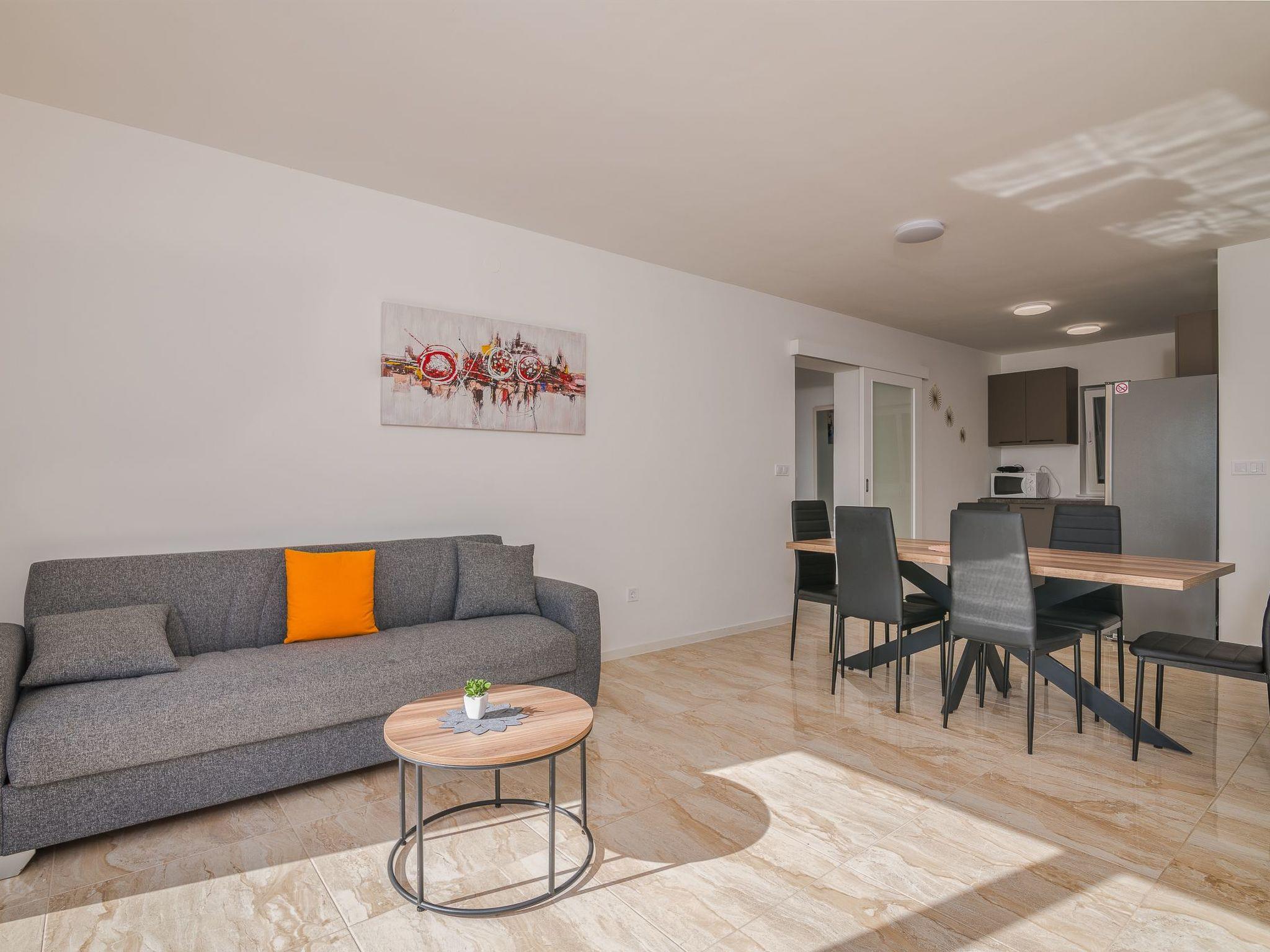 Apartments Martina are only a few minutes away from the center of Malinska, shops and the sea. The nearest beach is 900 meters from the house. There are a total of three apartments in the house, which is surrounded by several parking spaces. One apartment is on the ground floor and 2 are upstairs. All apartments have three bedrooms, kitchen and living room, bathroom and separate toilet. The apartments on the first floor also have a balcony. It can host up to 6 people. All apartments have internet access, air conditioning, satellite TV, and a parking space. Pets are not allowed.
