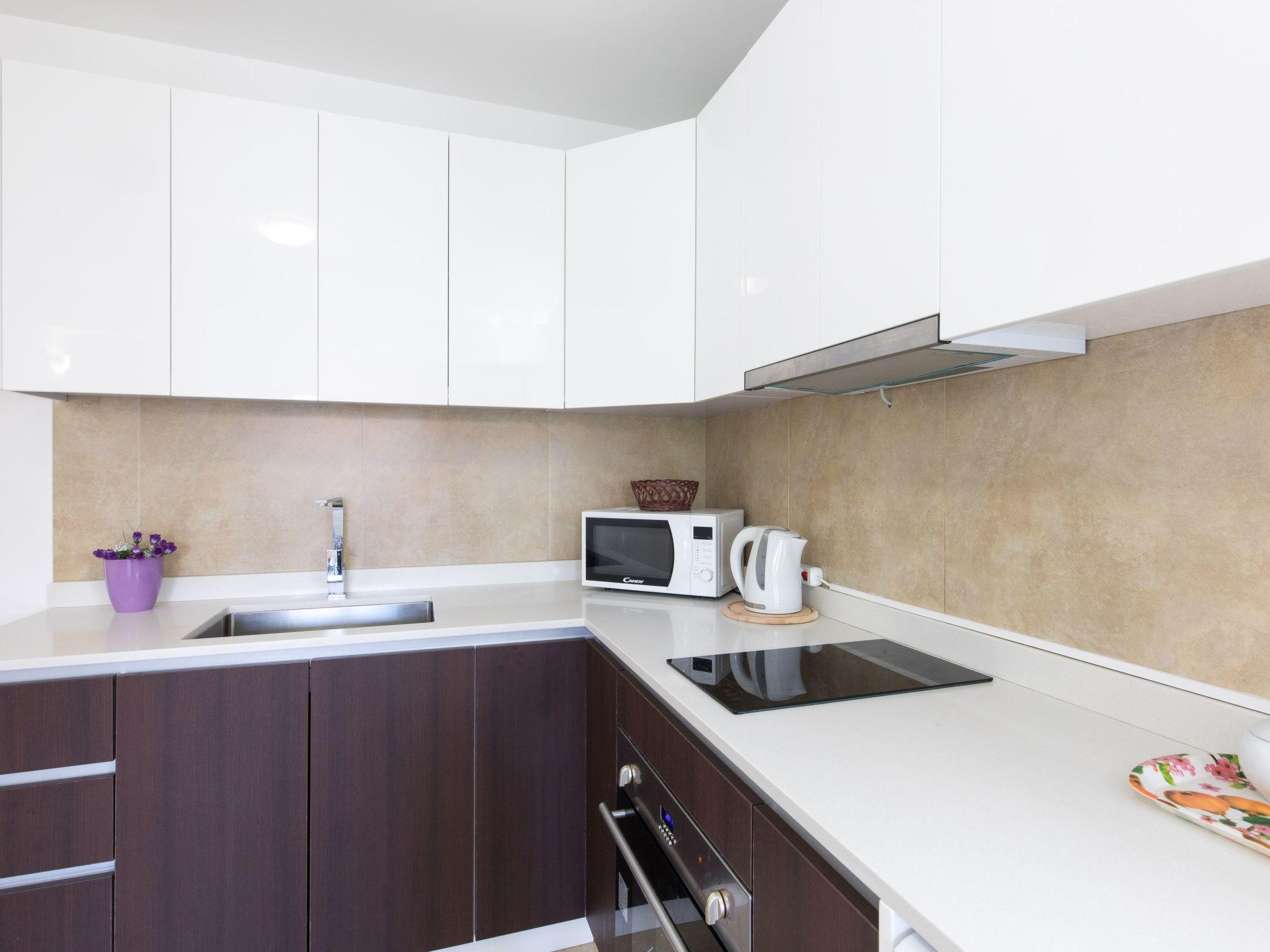 This nice and modern furnished apartmenthouse is situated in Malinska, distanced about 400 meters from the beach and 150 meters from grocery store, reastaurant and center. House consists of 5 apartments. On the first floor there are 2 apartments and one studio. Each apartment is new, nice and modern furnished and consists of 1 double bedroom, spacious living room with fully equipped kitchen and dining room, one bathroom with shower and balcony. Studio has sleeping/living space with kitchen, bathroom and balcony. On the second floor there are 2 apartments, each with 1 double bedroom, spacious living room with fully equipped kitchen and dining room, one bathroom with shower and balcony.At your disposal are also air conditioning, TV sat, internet access and closed parking places. Pets are not allowed.