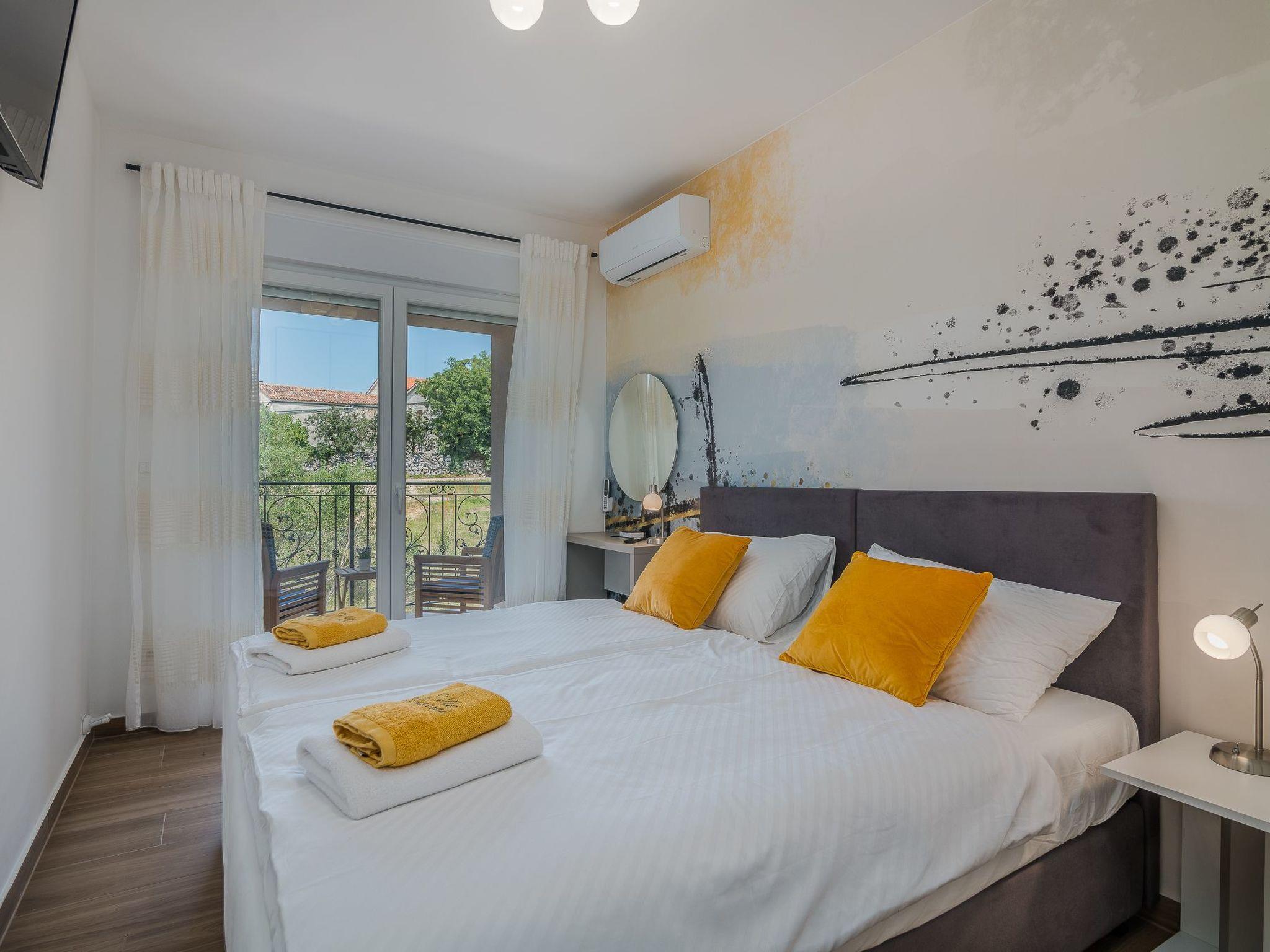 The island of Krk is the largest island in Croatia, and is full of attractions to which it takes only 5-15 minutes by car to all locations. The motorway and airport are also nearby. Krk town has beautiful old churches, old city walls, towers and the remains of the ancient Romans while the town of Vrbnik is known for its vineyards and excellent wines, Punat with the largest marina on the Adriatic and Košljun with the famous Franciscan monastery with a museum. Baška has one of the largest sandy beaches and an aquarium, Soline Bay has healthy mud and Biserujka cave. In all these places there are many restaurants where you can try fresh fish, wine and other specialties, take a trip with the fishing and tourist boats and swim with dolphins or take children to ride a submarine (the town of Krk).