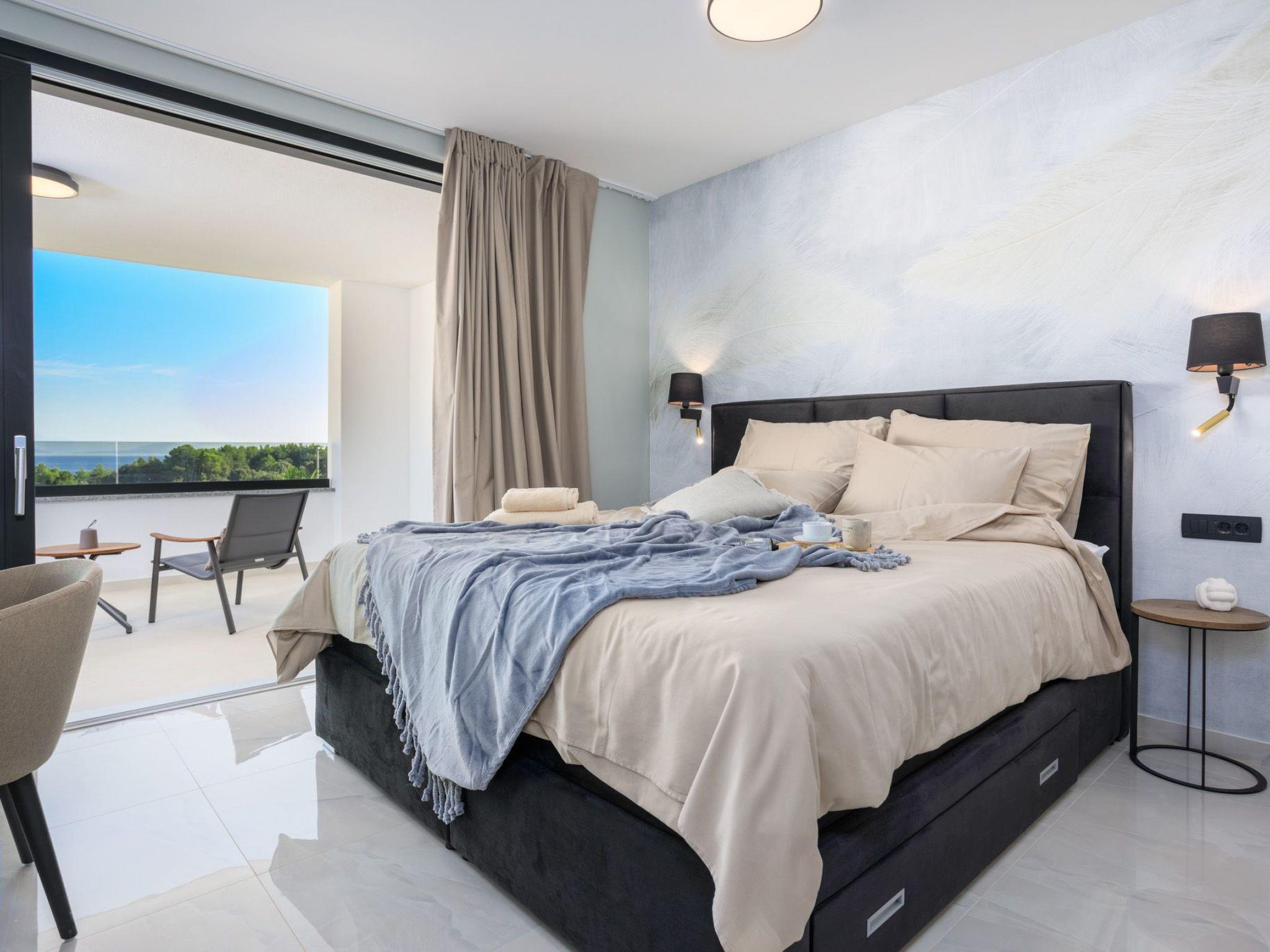 On the first floor there are two bedrooms with bathrooms, while on the second floor there is a bedroom with bathroom, gym, sauna and whirlpool. The terrace offers a beautiful panoramic view of the sea.