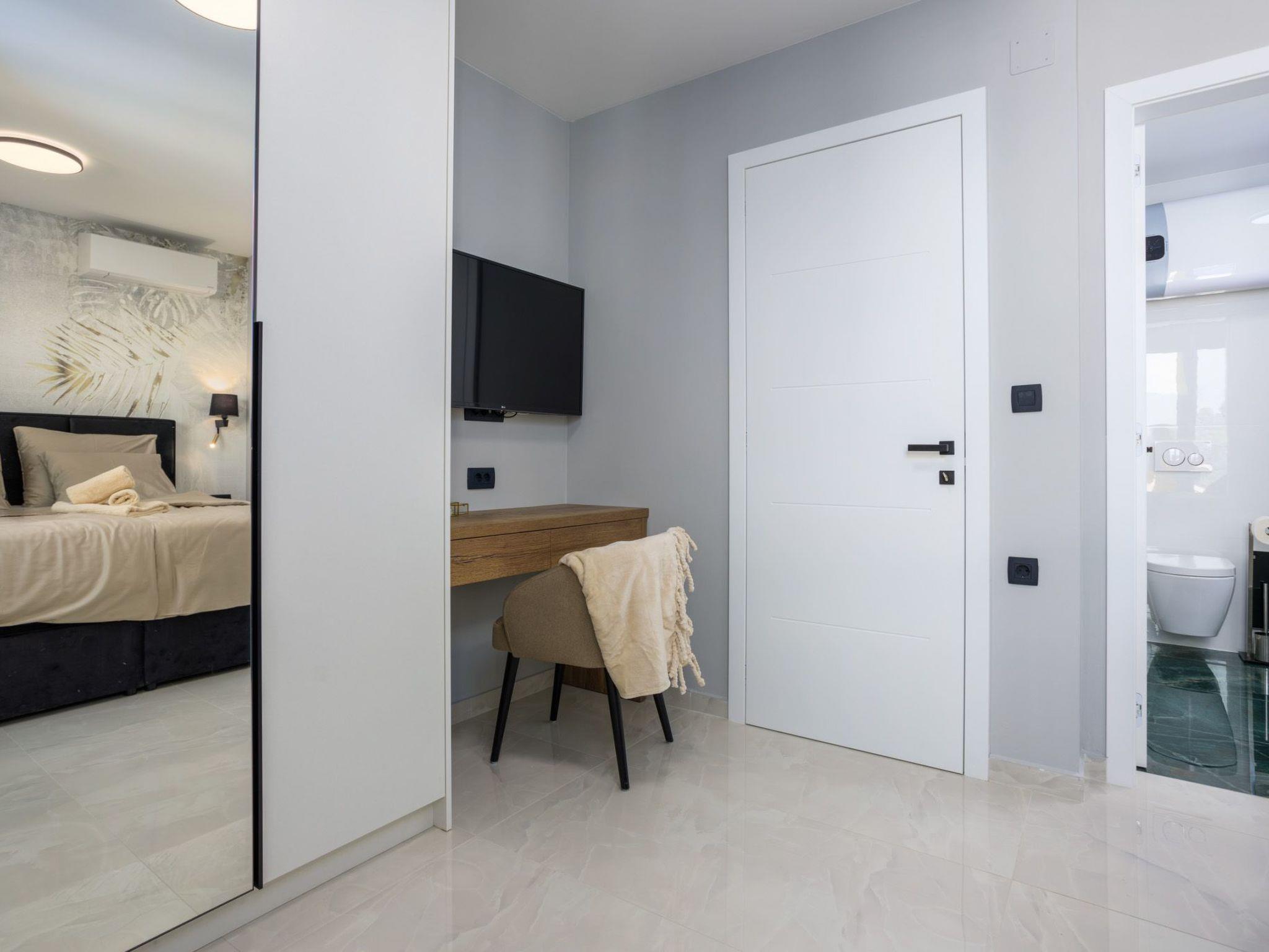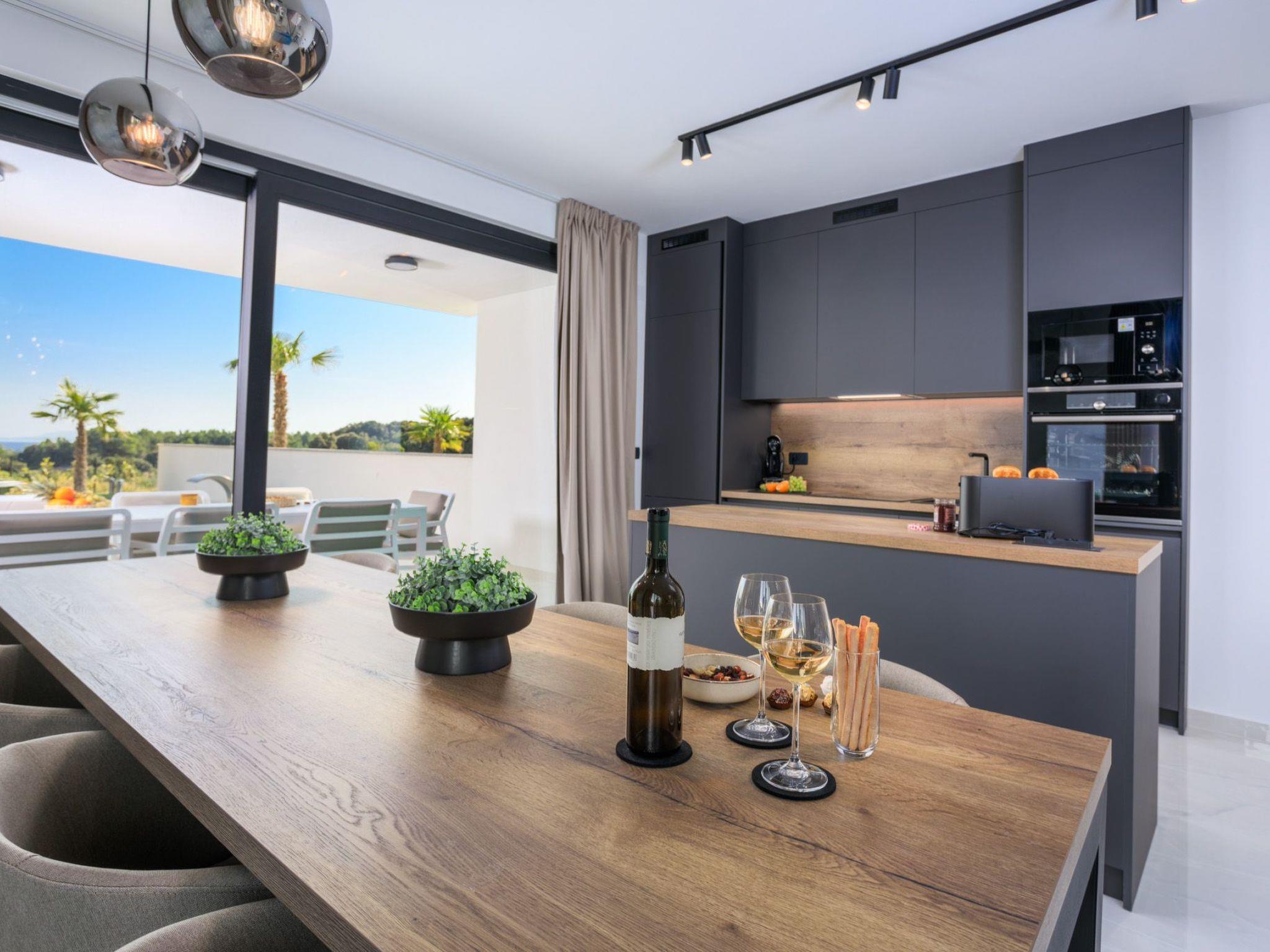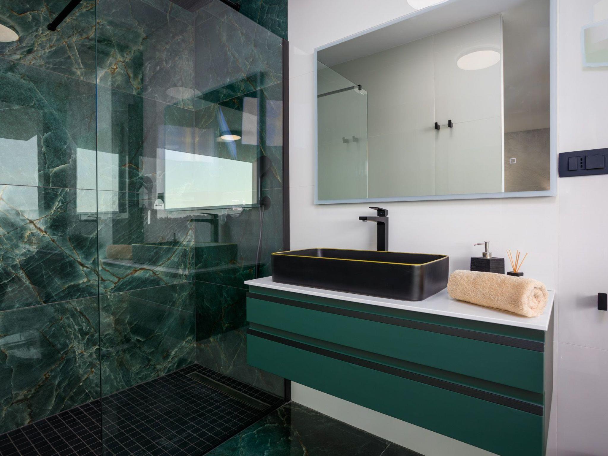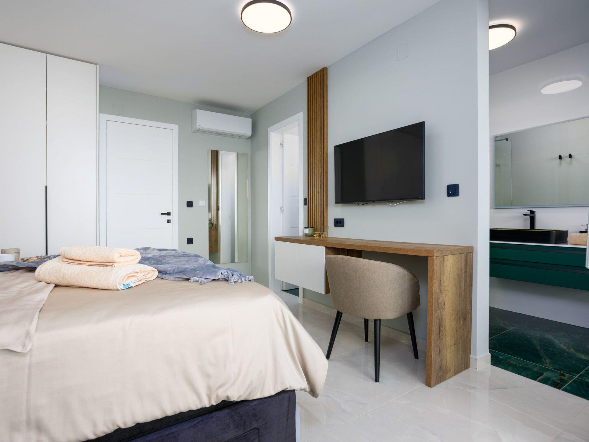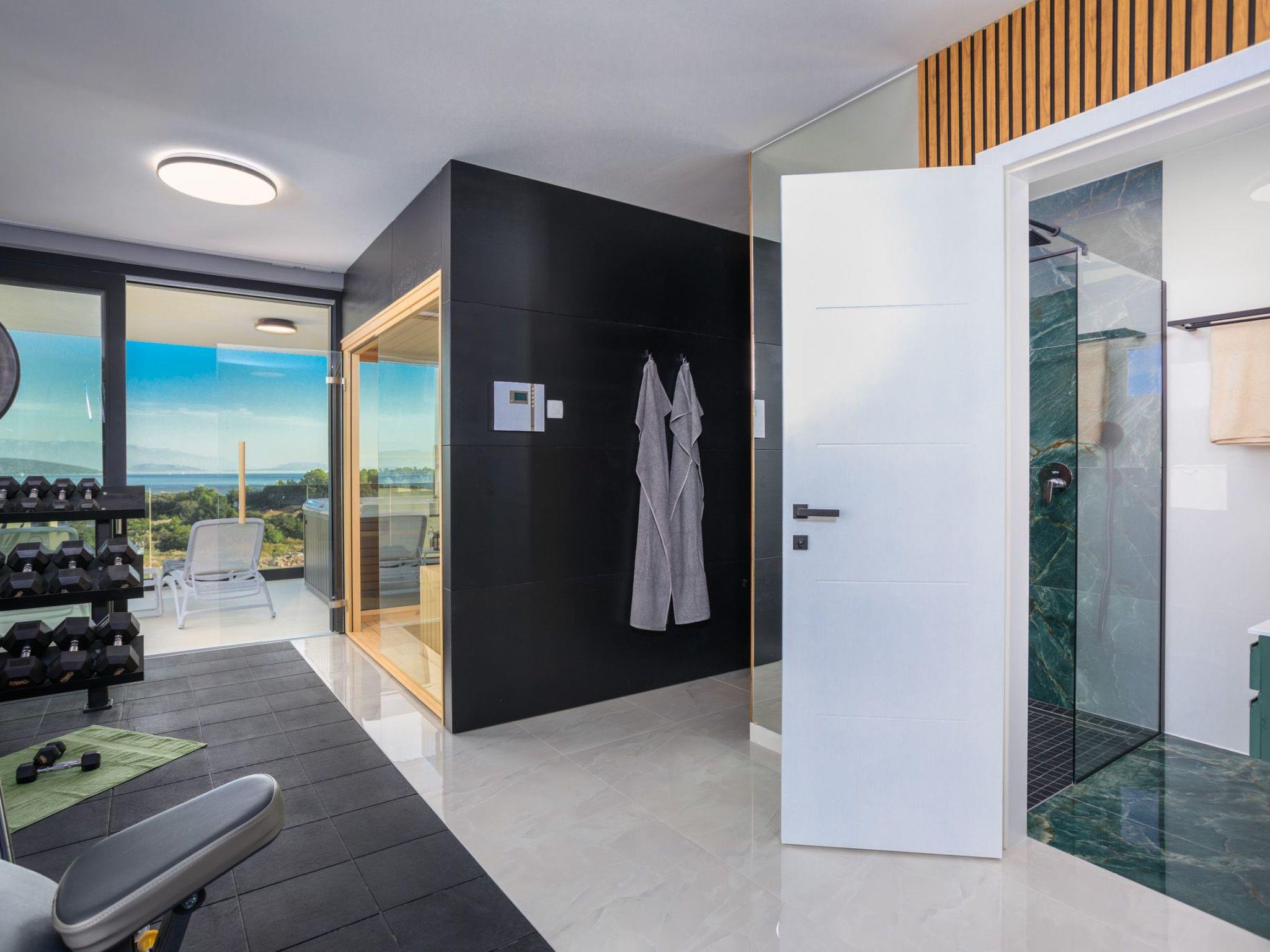 This beautiful new deluxe villa is located in the town of Krk, in a quiet area. The total area of the villa is 230 m2. On the ground floor of the villa there is a living room, a bedroom with a bathroom and a separate toilet.