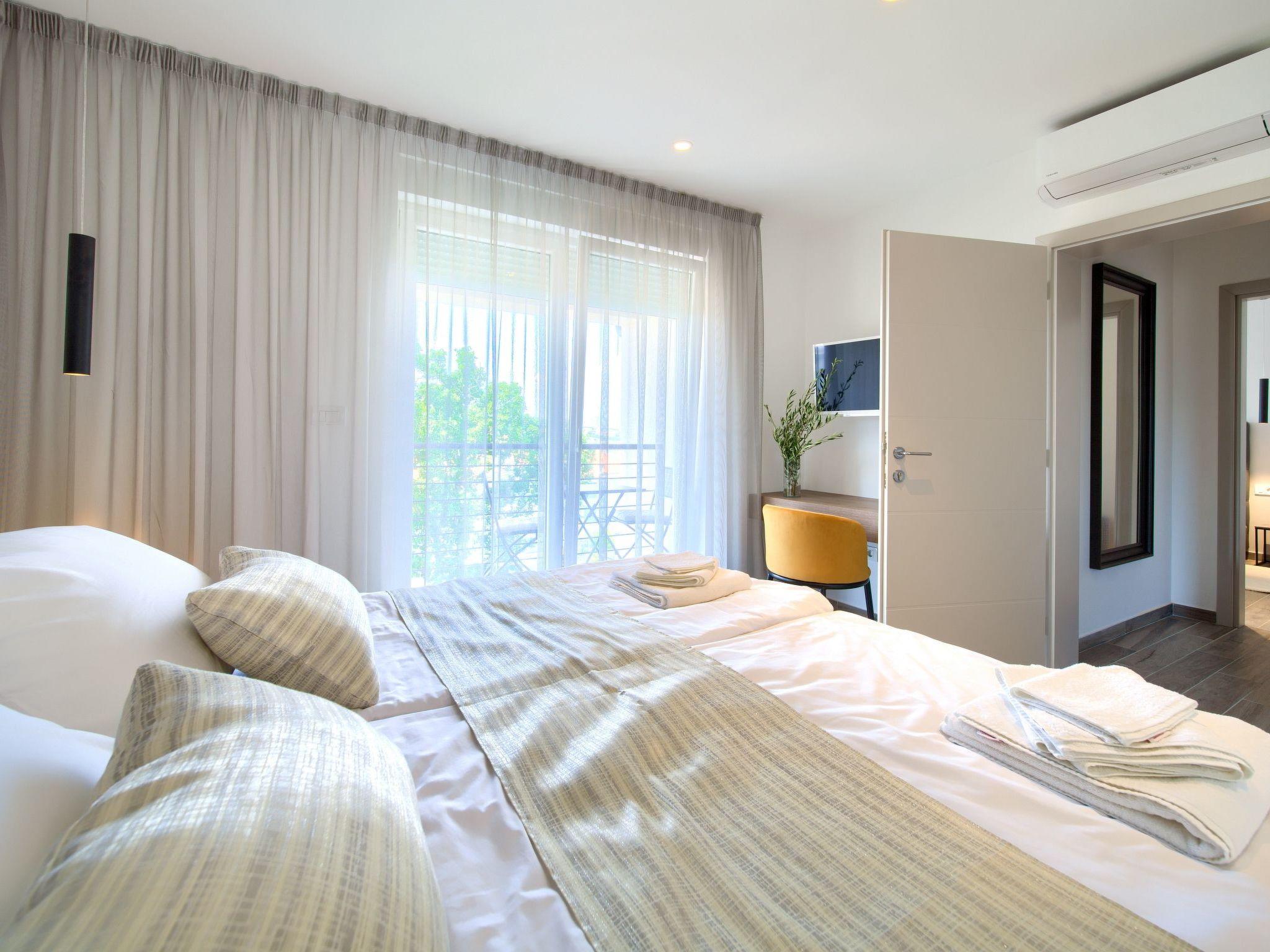 Apartments Vista Deluxe are located in a stunning position just a few steps to the pebble beach and surrounded by a lush oak forest. With the beach right on your doorstep, the sunny days will likely be spent enjoying in the crystal clear sea, but for those who prefer their own space, this beautiful holiday house offers a private alluring outdoor Jacuzzi on each balcony, and as an extra enjoyment, a fabulous view to the sea while relaxing in the hot tub on the balcony. Every apartment has a modern equipped open space kitchen with a dining area and living room opened to a huge balcony with lounge, hot tub and open dining space. In each apartment there are three exquisitely furnished bedrooms, all benefiting from having a lovely appointed ensuite bathroom.