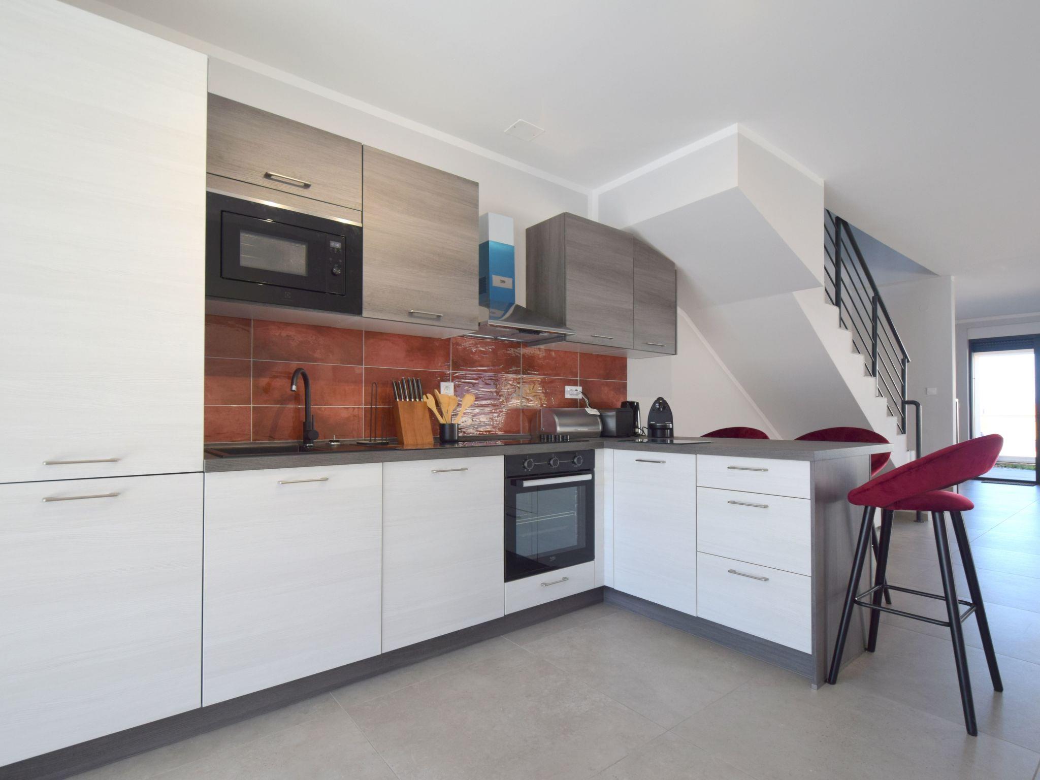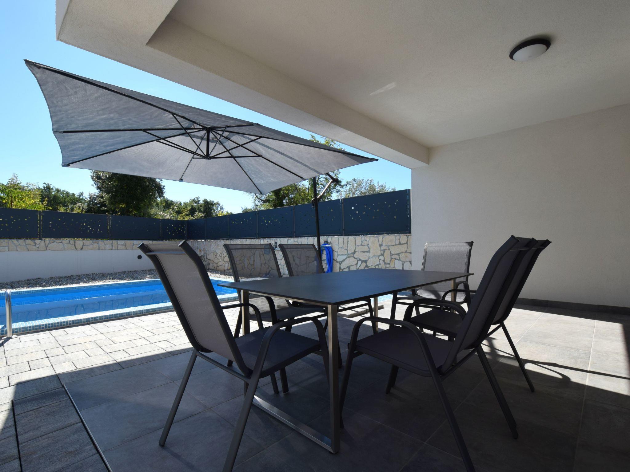 Villa Nya is a modern arranged villa located in Malinska, on the island of Krk. If you are looking for a family house to relax and leave all worries behind, this might be the right choice for you! Villa Nya is part of semi detached villa but it is separated by a wall and provides complete privacy. It is divided into two floors. On the ground floor of the villa you can find spacious living room with dining section and well-equipped kitchen. There is also a guest toilet. On the first floor there are two double bedrooms with private balconies and one single room. There are also two bathrooms with shower.Step into the courtyard of Villa Nya where you will find a private pool and a covered terrace with charcoal grill where you can dine with family and friends and spend unforgettable evenings with your loved ones. We hope you will enjoy your vacation in Villa Nya!