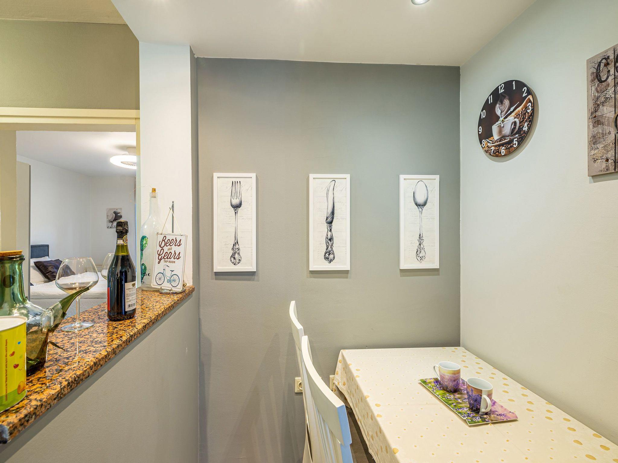 Inside, you will find a practically equipped kitchen with ceramic hob, espresso pot, filter coffee machine, dishwasher, fan, kettle and a mini oven that leaves nothing to be desired. A washing machine for sole use provides additional convenience. The flat combines functionality with cosiness and thus guarantees a pleasant stay.