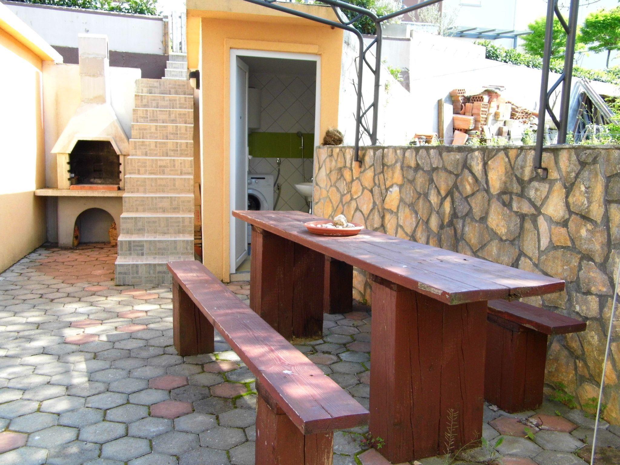 Ap. is on the ground floor of the house with two more floors above. It has private parking and most important nice big terrace on the back side of the house, with grill and small cottage with washing machine free to use, and extra toilet with sink and shower.
