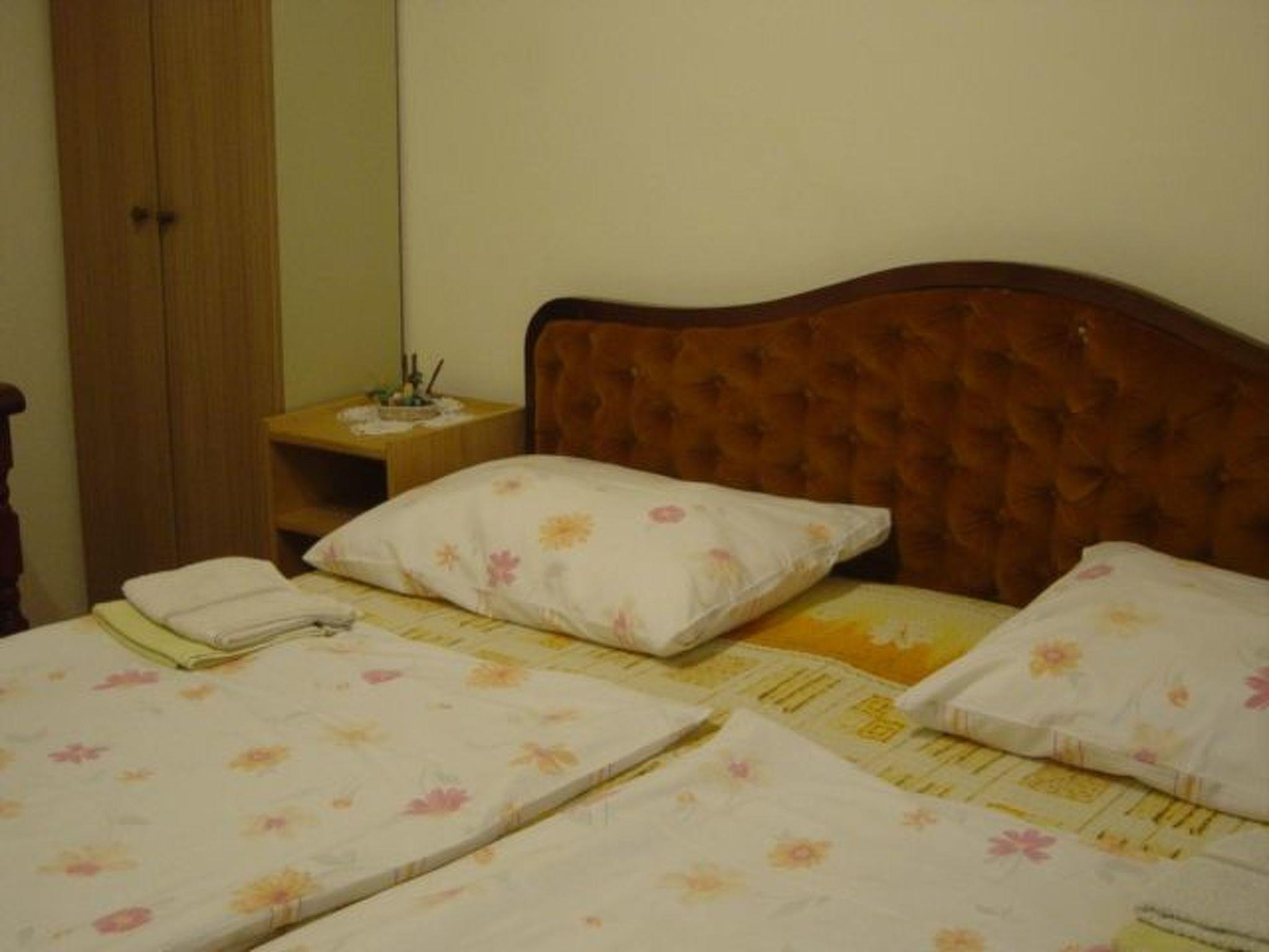Apartment is on the first floor of the house, with 2 bedrooms, bathroom, living room with kitchen, nice big terrace with and balcony all around the apartment. One bedroom is with double bed, another bedroom has two separate beds. Bathrom is with toilet and shower. Kitchen has gas cooker and back owen, electric kettle, coffe machine. In ap. is wi-fi and sat Tv.