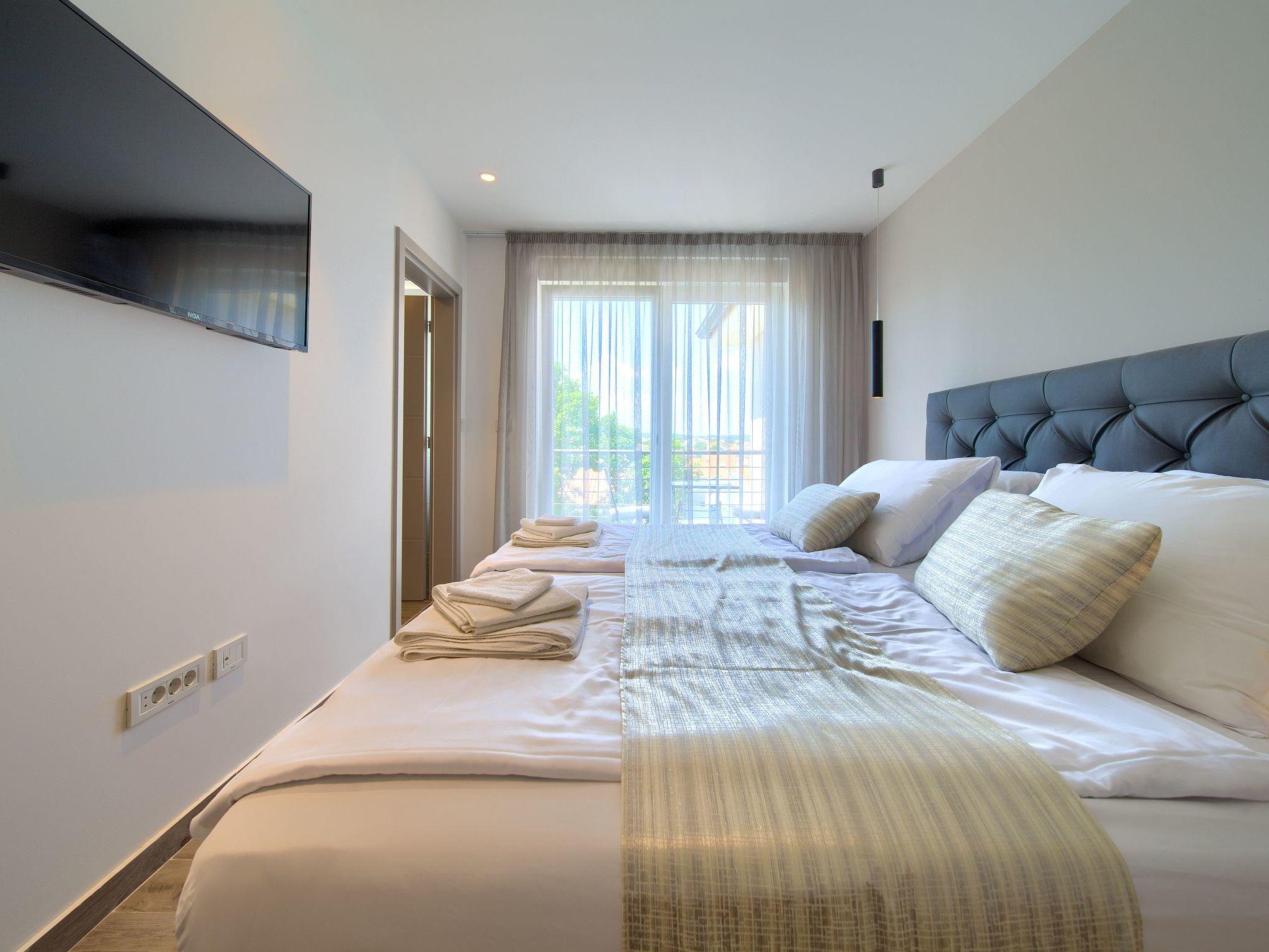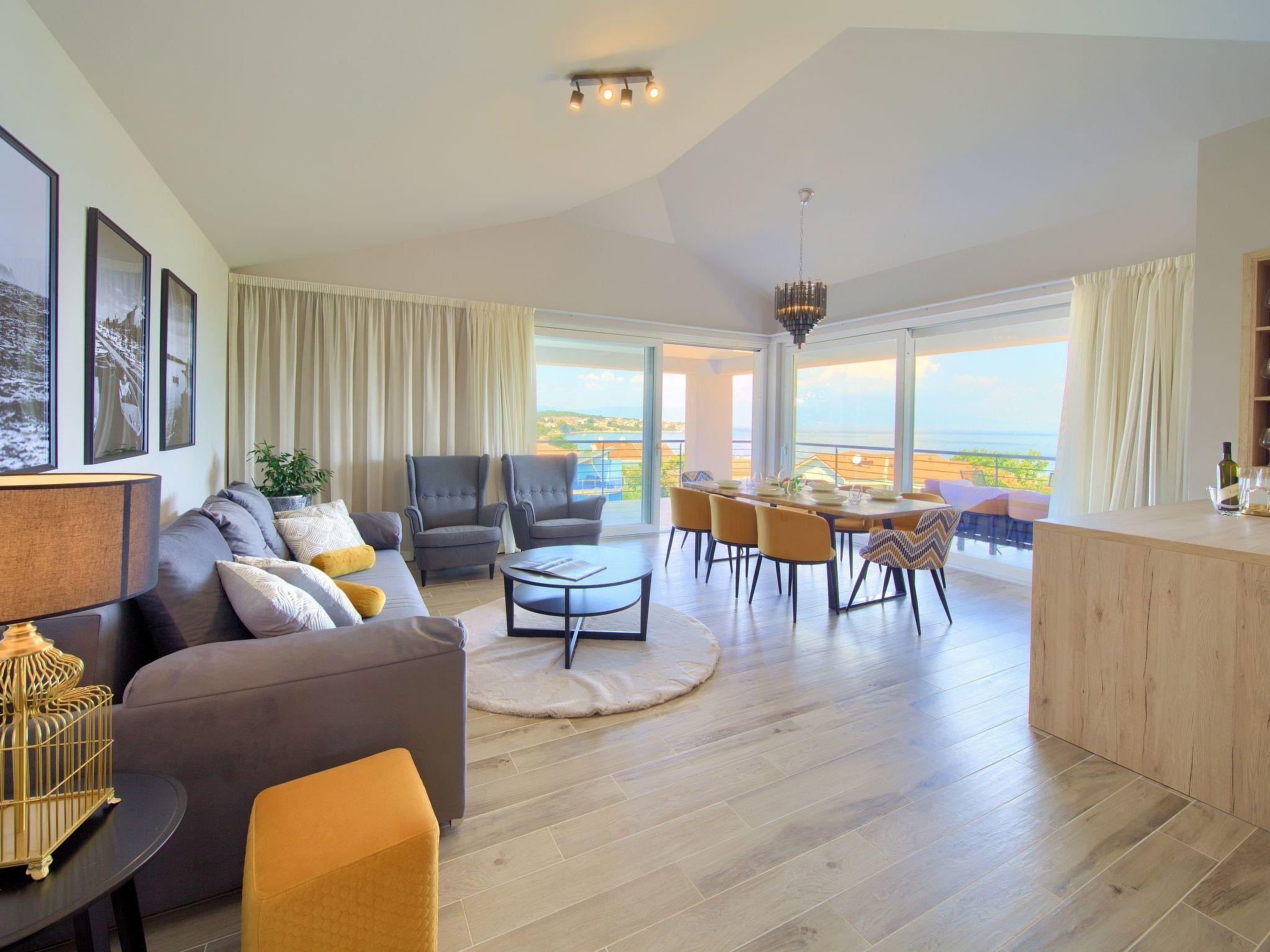 Apartments Vista Deluxe are located in a stunning position just a few steps to the pebble beach and surrounded by a lush oak forest. With the beach right on your doorstep, the sunny days will likely be spent enjoying in the crystal clear sea, but for those who prefer their own space, this beautiful holiday house offers a private alluring outdoor Jacuzzi on each balcony, and as an extra enjoyment, a fabulous view to the sea while relaxing in the hot tub on the balcony. Every apartment has a modern equipped open space kitchen with a dining area and living room opened to a huge balcony with lounge, hot tub and open dining space. In each apartment there are three exquisitely furnished bedrooms, all benefiting from having a lovely appointed ensuite bathroom.