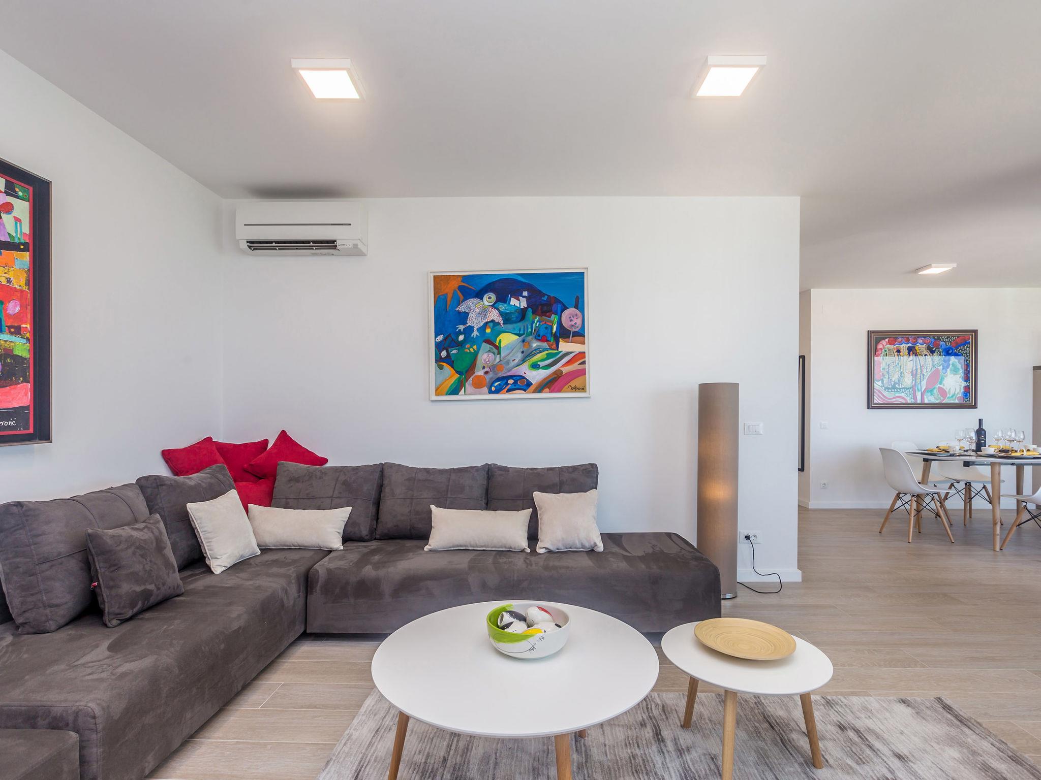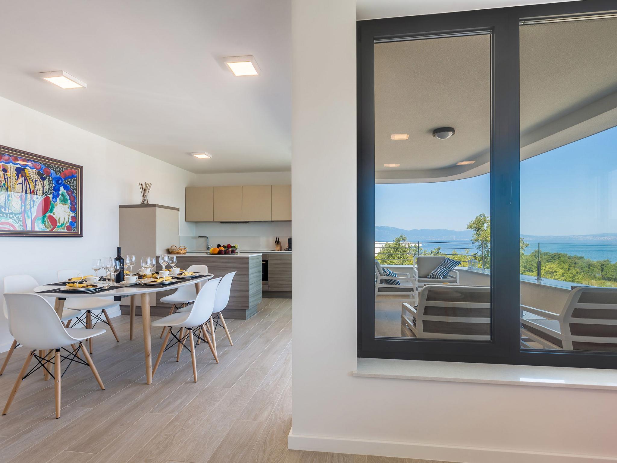 Apartments Villa Poseidon Rova*****are situated in a small village near Malinska called Vantacici. Distance from this village to the center of Malinska is approximately 2 km. This apartments are located 200 m from the beach.This 5 stars apartments both have spacious living/dining room with couch which can be easily mended into an extra bed for two persons, 2 king size bedrooms and 2 bathrooms with shower. Both apartments have fully equipped kitchen with dish-washer, electric cooker, cooker hood, refrigerator with deep freeze and coffee machine. High speed internet access is available. Apartments have shared swimming pool with all the necessary sunbathing equipment (sunbeds, sun umbrellas) and a barbecue with modern, high quality outdoor furniture (dinning table, chairs,…) and a private parking on premises. Apartments are fully air-conditioned (cooling and heating). Living room and bathrooms are with electric floor heating. Apartments are recommended for quiet, relaxed holiday as well as for active holiday. Please note that only 1 parking space is provided per apartment.