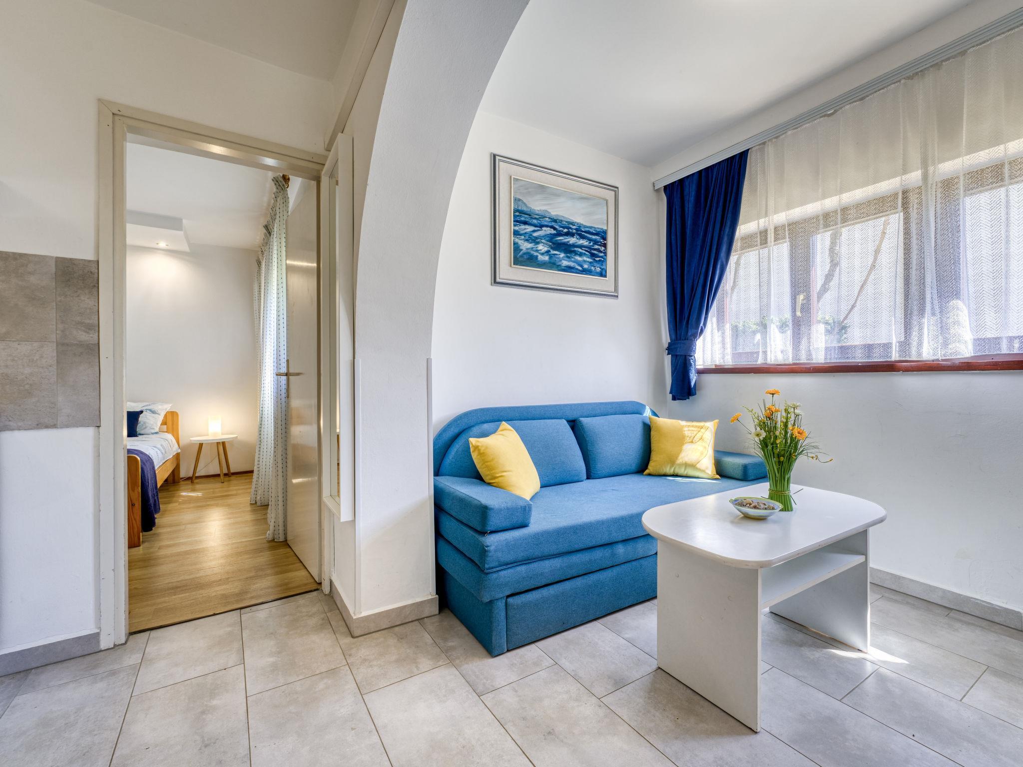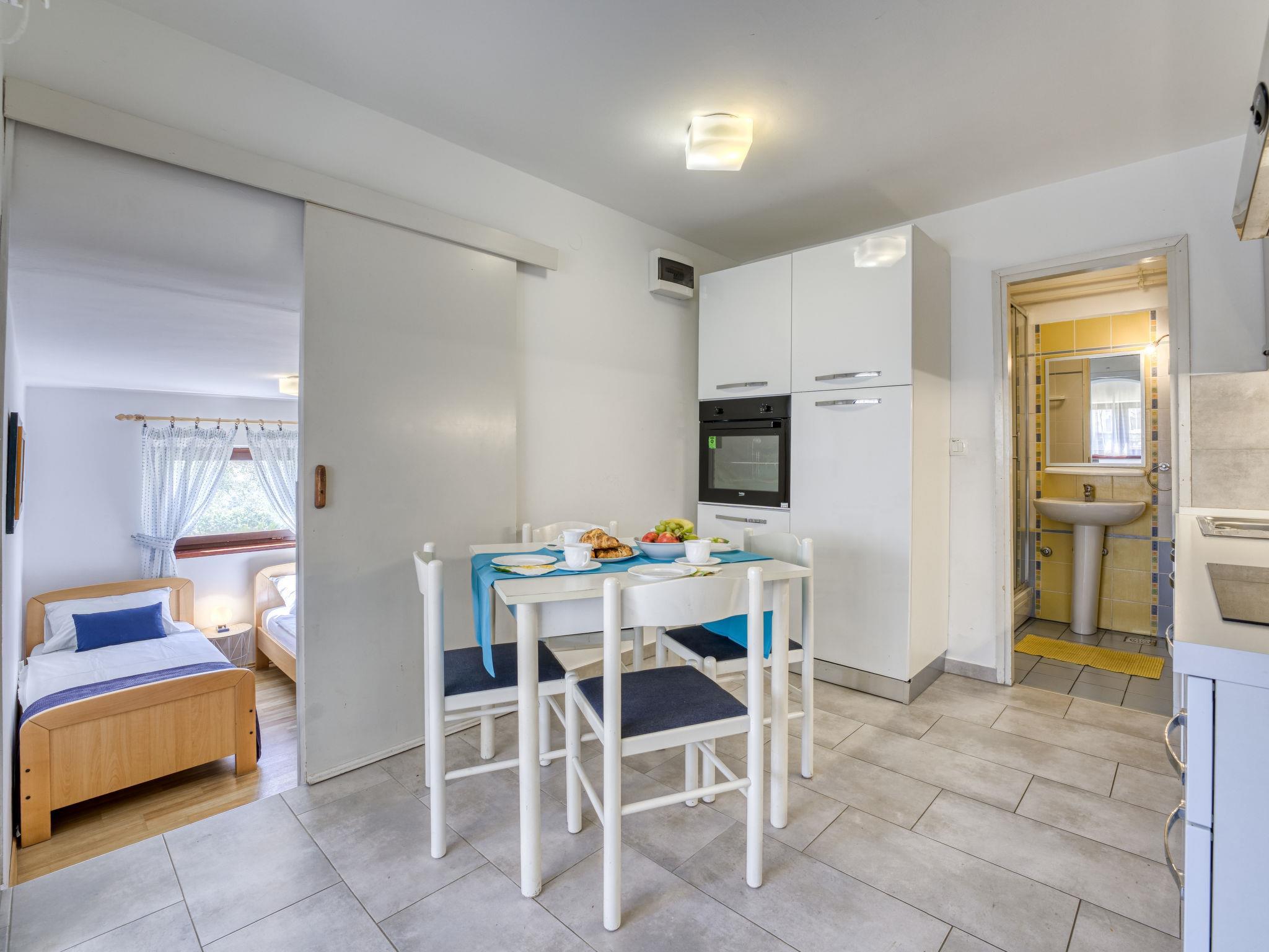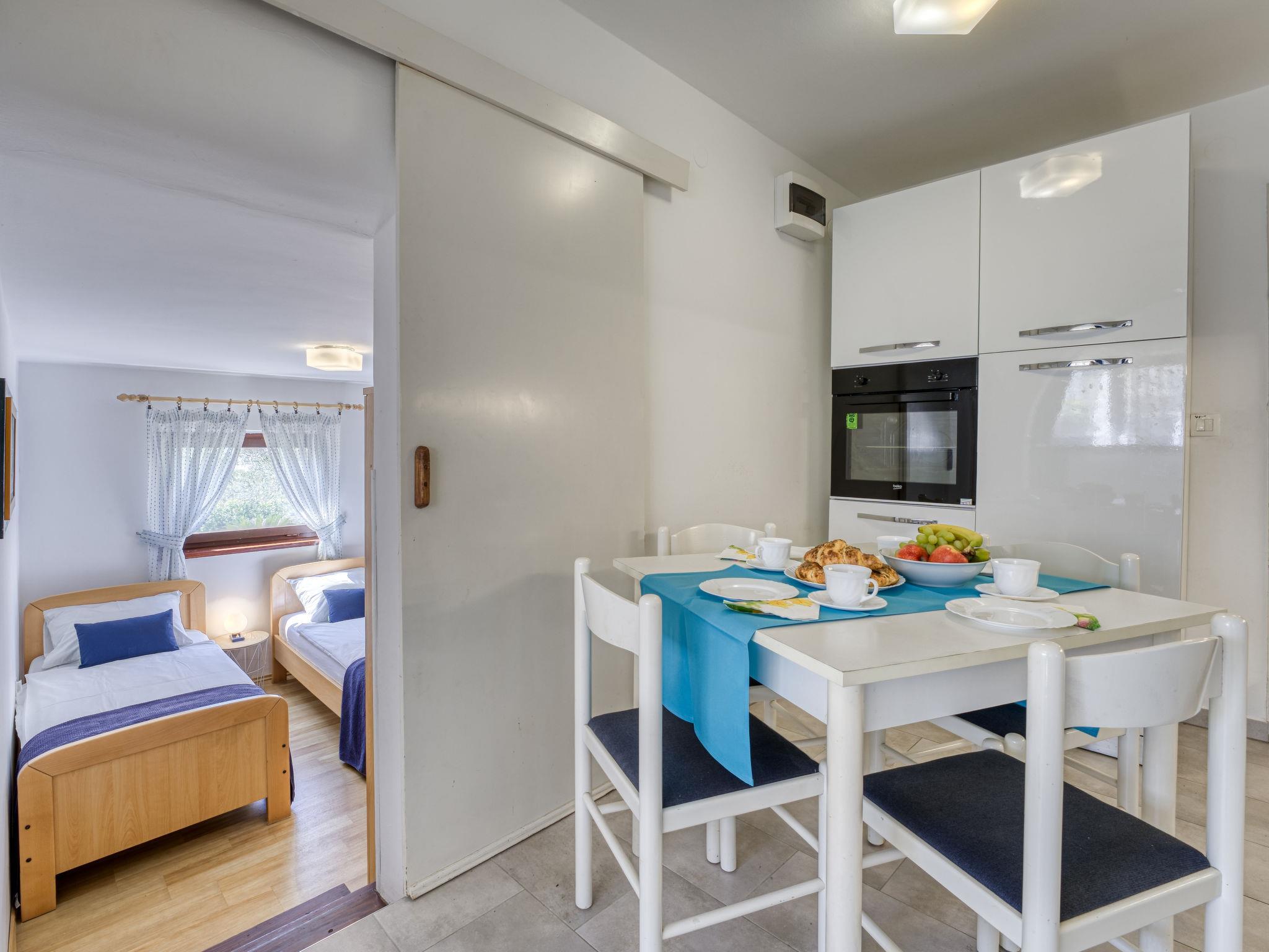 "Jurkovic", 3-room apartment 39 m2, on the ground floor. Living/dining room with satellite TV and air conditioning. Exit to the terrace. 1 room with 1 french bed (160 cm, length 200 cm). 1 room with 2 beds (90 cm, length 200 cm). Open kitchen (oven, dishwasher, 4 ceramic glass hob hotplates, toaster, kettle, microwave, freezer, electric coffee machine). Shower/WC. No heating option. Terrace 14 m2. Terrace furniture, deck chairs (2). Facilities: washing machine, baby cot (extra). Internet (WiFi, free). Parking (1 car). Please note: non-smoking house. KLASA: UP/I-335-03/20-01/1169, URBROJ: 2170/1-08-0