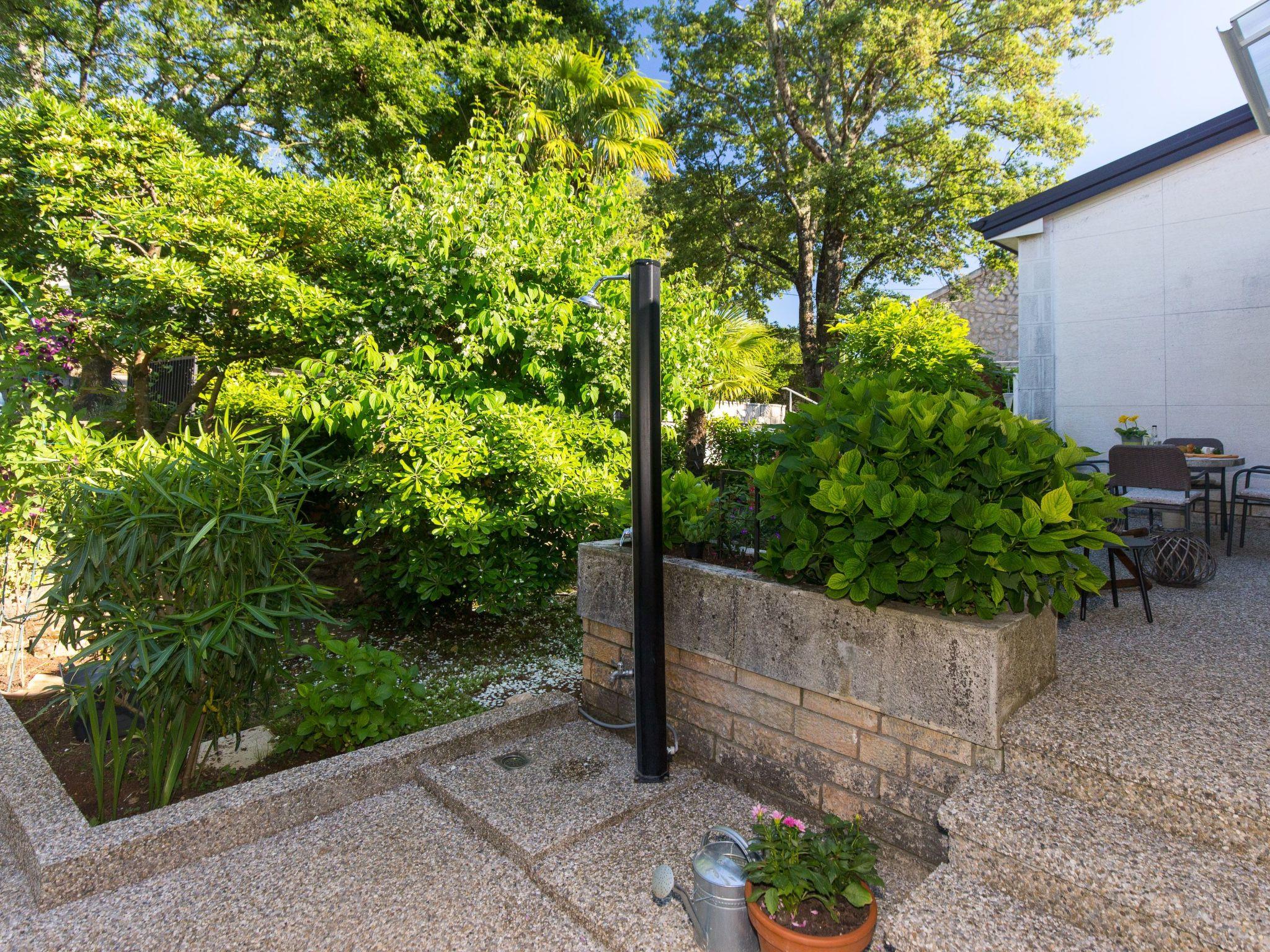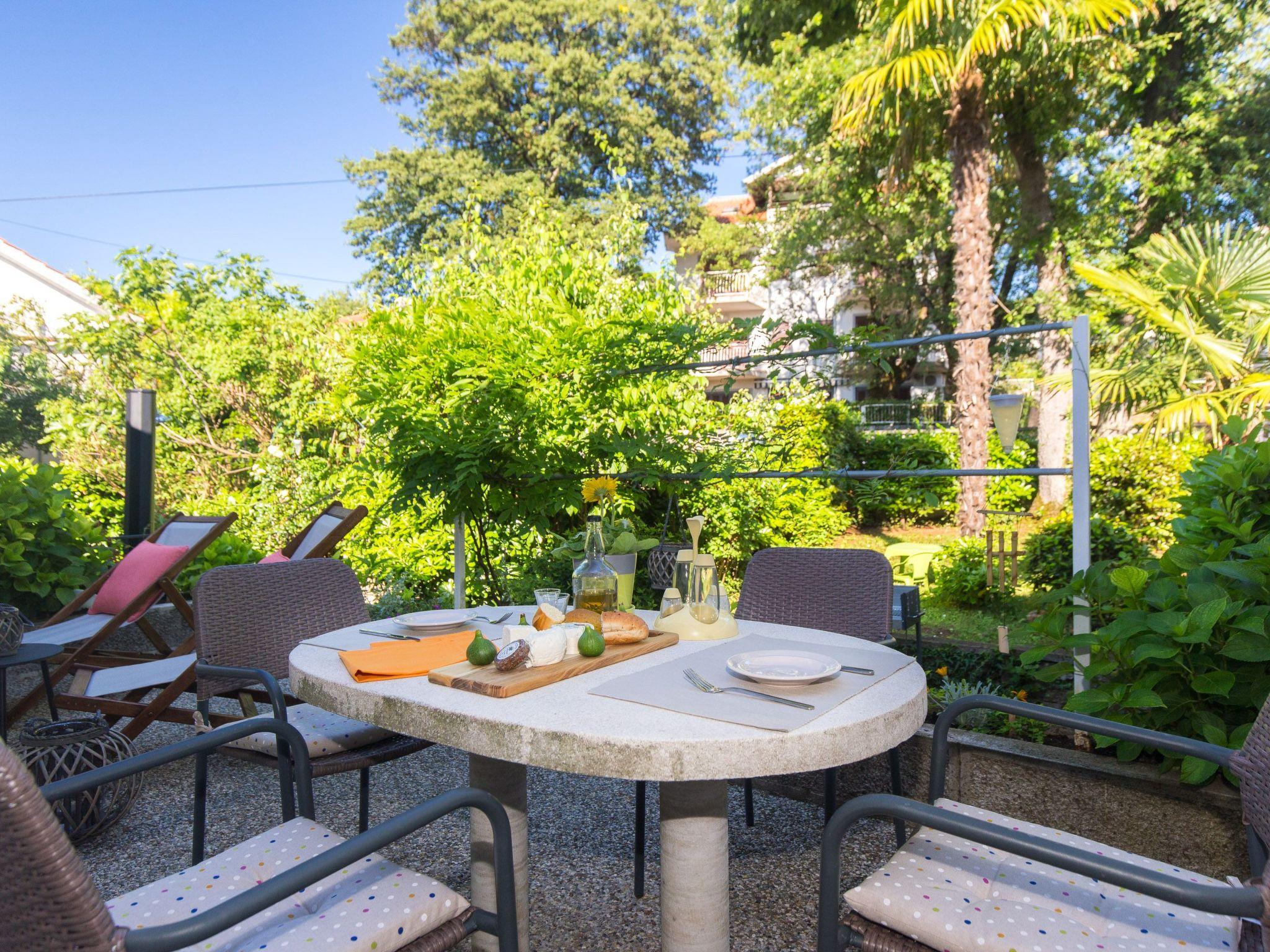 It has two (2) terraces , one of them is 25 sq. meters and the other 30 .Both are covered with the mobile sunshades and are located toward the east and the west.You can eat outdoors as both have the tables and the chairs.When the weather is very hot and the sun is high you can always choose one of them to be comfortable. There is the garden around the apartment so the children can play in it. There is an exterior shower in the garden and the mobile grill for roasting fishes,meat and vegetables. The property is fenced and is therefore suitable for children and dogs. There is your own parking place.