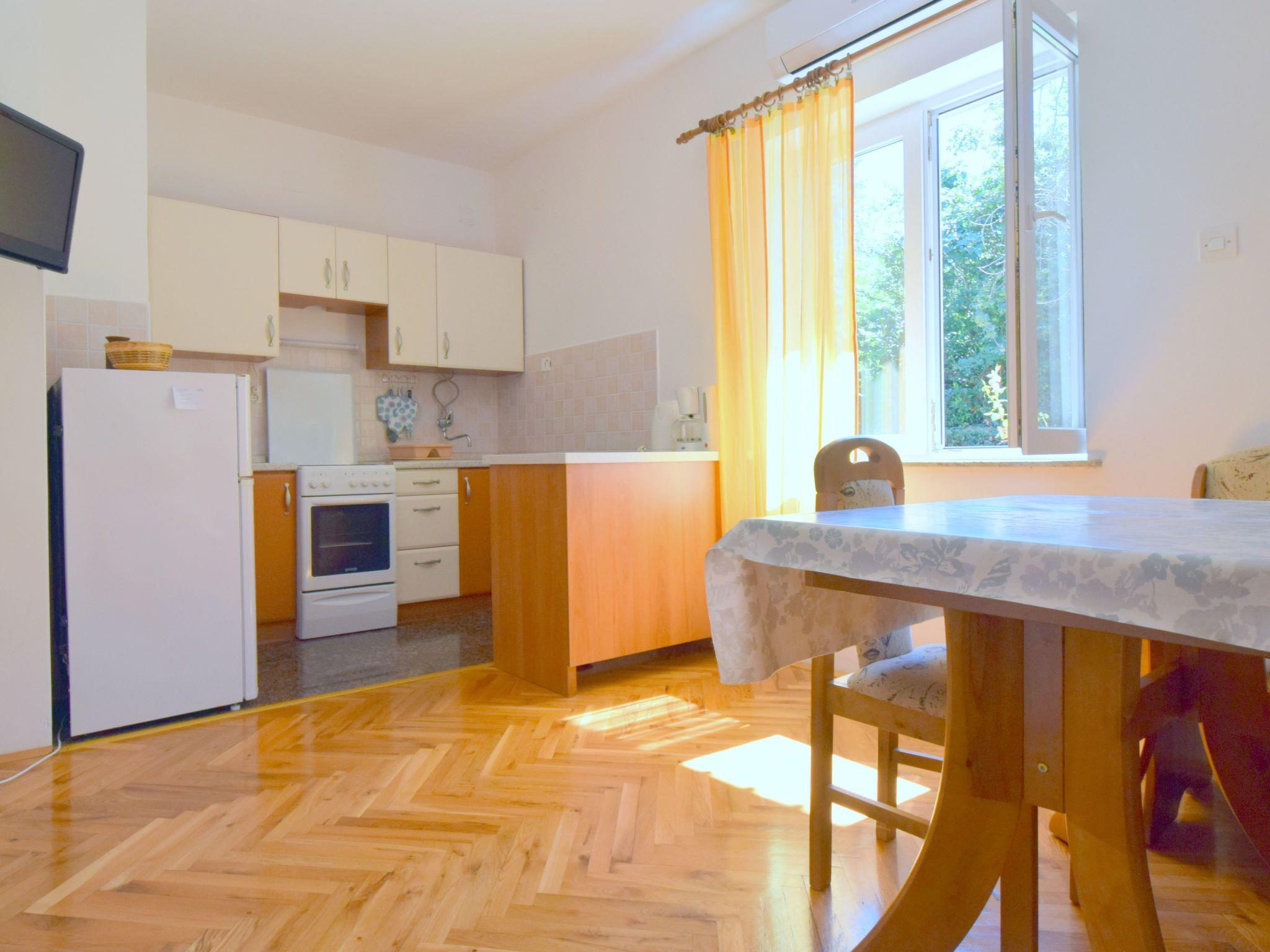 The house is located in the center of Njivice, 150 m from the beach. There are three apartments in the house. Each apartment can accommodate a maximum of 2 people and consists of one bedroom with a double bed, kitchen with dining area, and bathroom. It has a TV without Sat, air conditioning, and WiFi. The 1st and 2nd-floor apartments have a balcony and the ground-floor apartment has a part of the yard that can be used as a terrace. There is a parking in front of the house.
