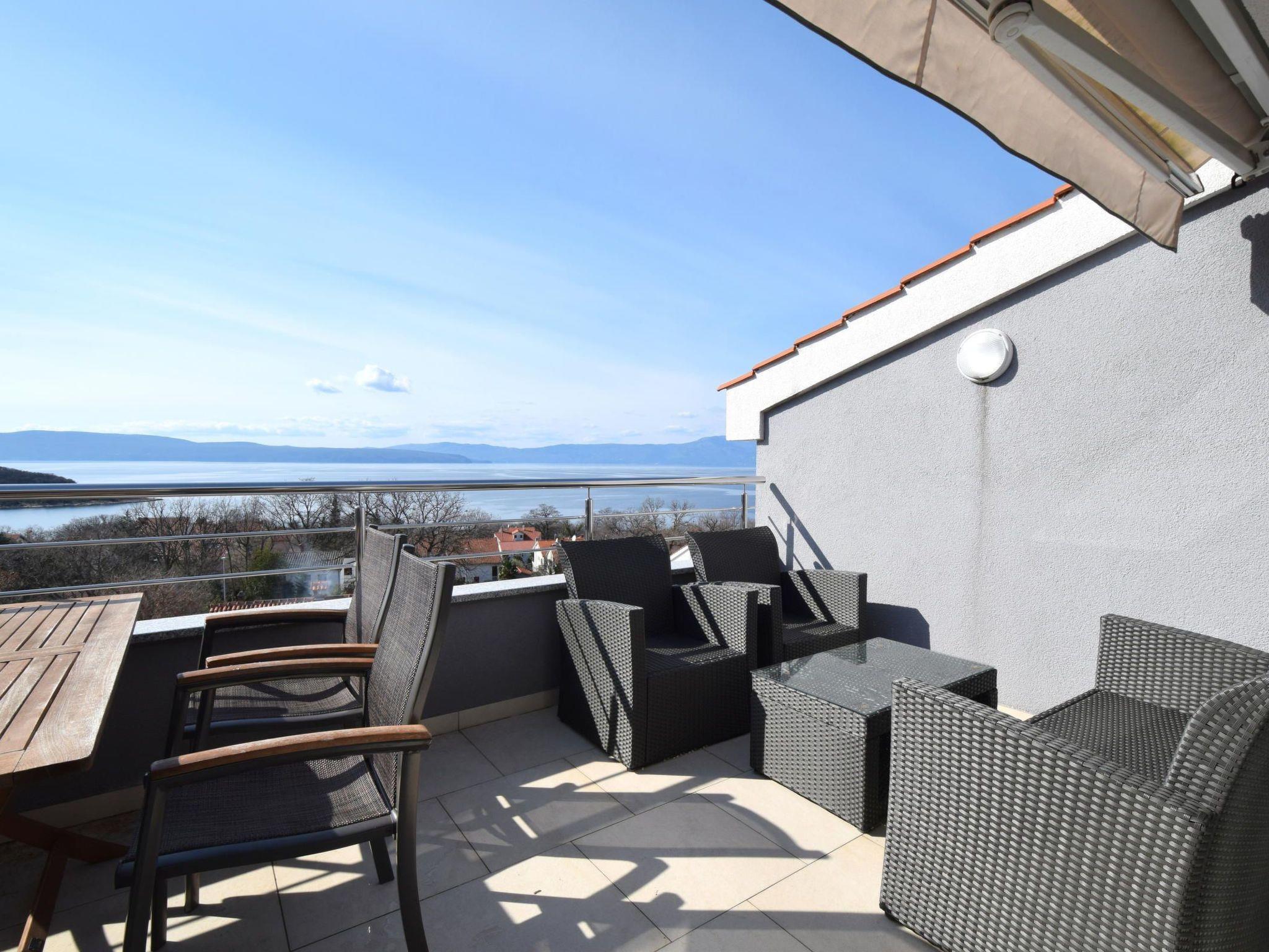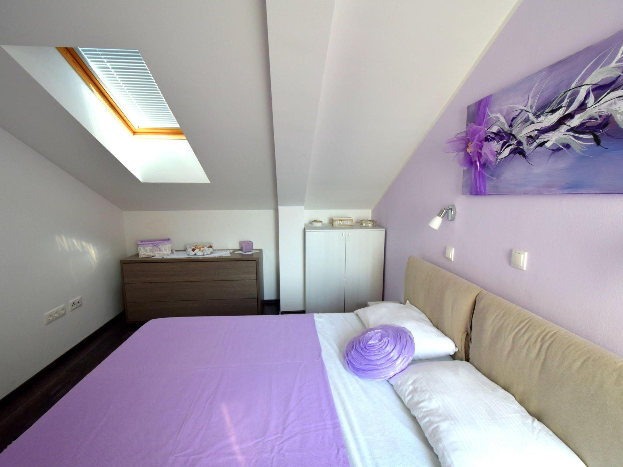 The apartment is located in the attic of a residential building in Njivice, 900 m from the center of Njivice and 250 m from the beach. The apartment has 70 m2 and can accommodate 4 people. It consists of two bedrooms (2 double bedrooms with matrimonial bed and shower), kitchen, living room with dining area, bathroom with toilet and a balcony with panoramic sea view. TV-SAT, air conditioning and parking are available. Behind the house there is a private terrace with barbecue.