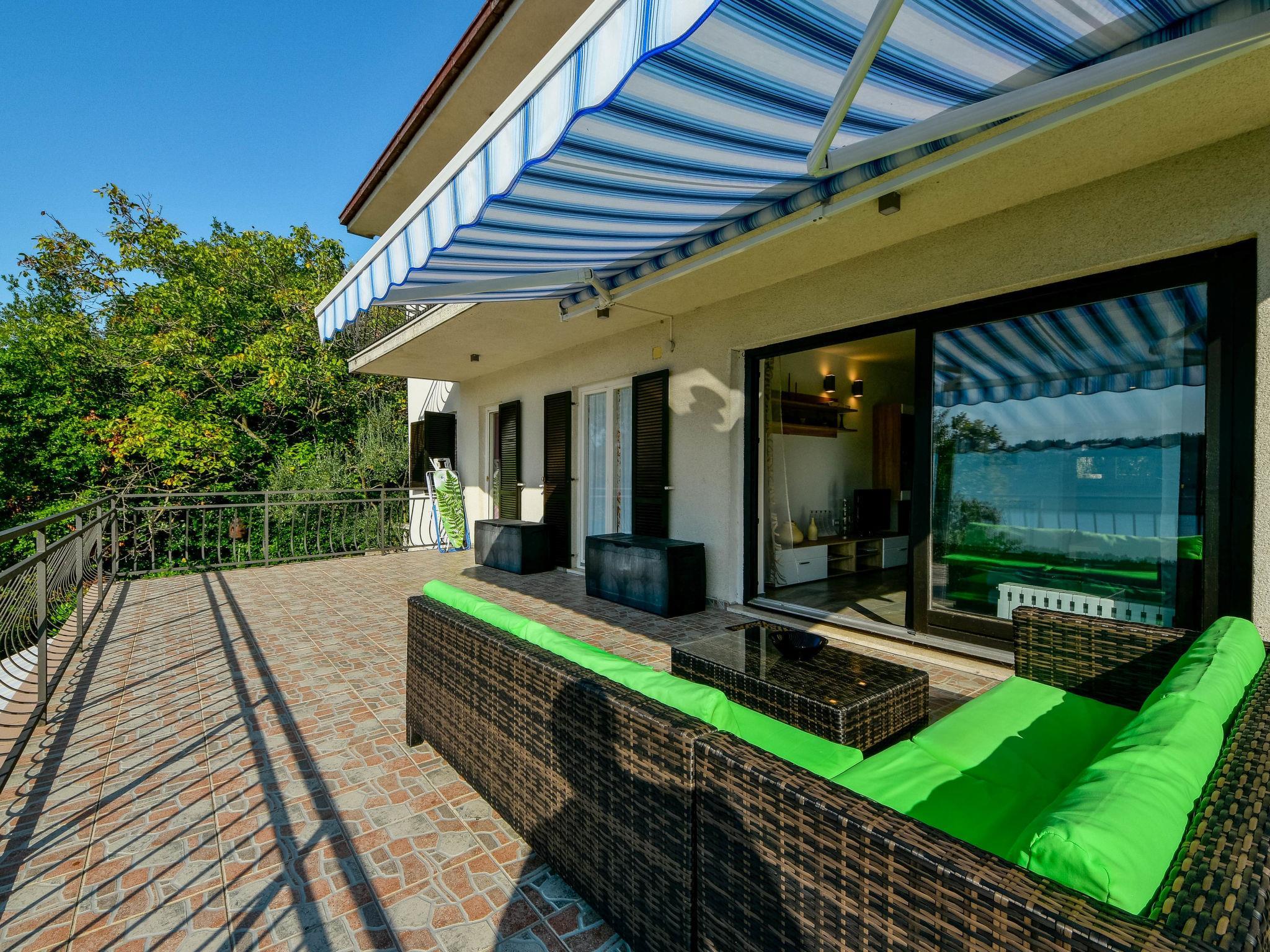 4-room apartment 90 m2 on 1st floor. Fully renovated in 2018: living/dining room 45 m2 with panoramic window with cable TV and international TV channels (flat screen), air conditioning. Exit to the balcony, to the terrace. 1 room with 1 double bed (2 x 90 cm, length 200 cm), air conditioning. Exit to the terrace. 1 room with 2 beds (90 cm, length 200 cm), air conditioning. 1 room with 1 bed (90 cm, length 200 cm). Exit to the terrace. Open kitchen (oven, dishwasher, 4 ceramic glass hob hotplates, microwave, freezer, electric coffee machine). Shower/bidet/WC, sep. WC. Forced-air heating (extra). Small balcony, large terrace 40 m2 partly roofed. Terrace furniture. View of the sea. Facilities: hair dryer. Internet (WiFi, free). Please note: maximum 1 pet/ dog allowed. Private entrance. 335-03/24-01/409