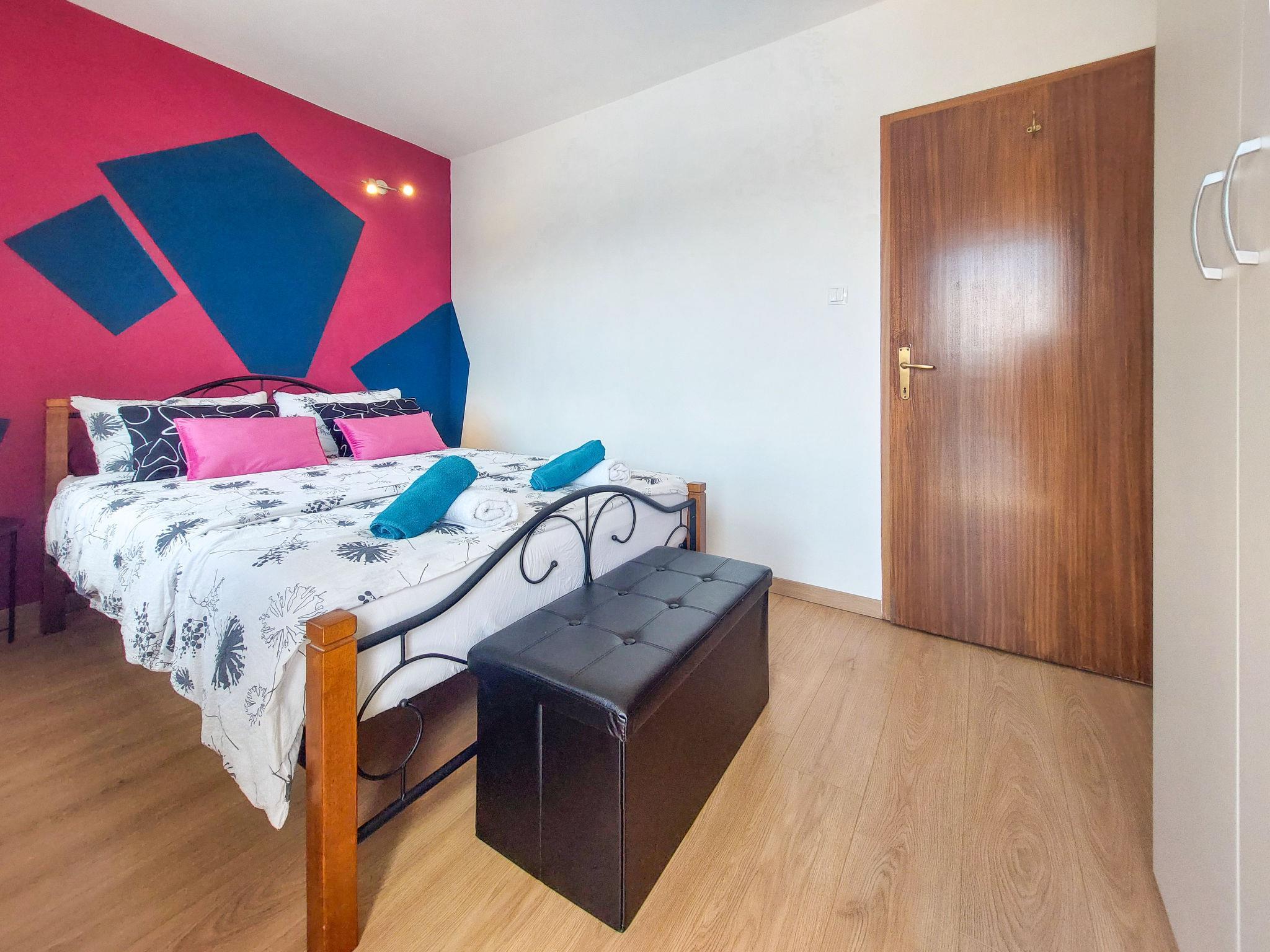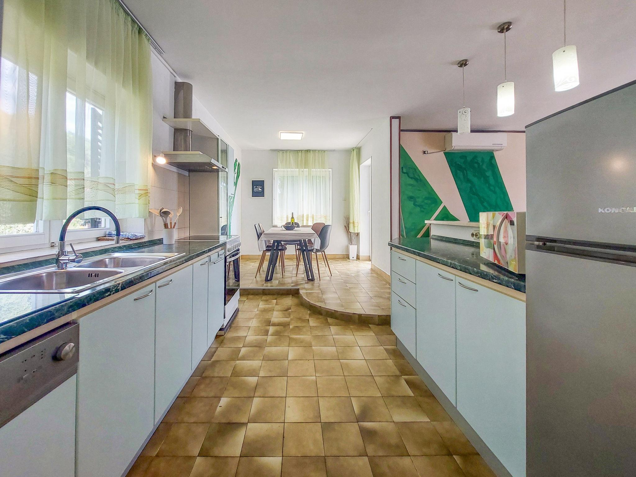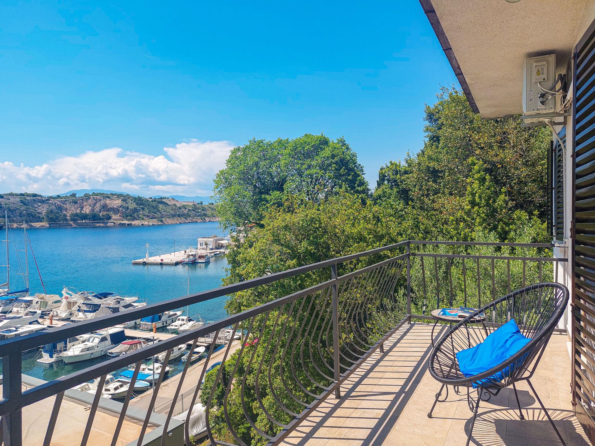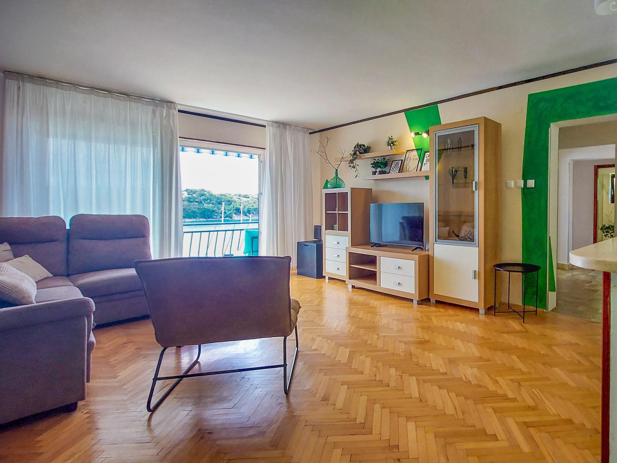 "Marija 2", 4-room apartment 90 m2 on 2nd floor. Open living room 25 m2 with panoramic window with cable TV (flat screen), air conditioning. Exit to the balcony. 1 room with 1 french bed (140 cm, length 200 cm). Exit to the balcony. 1 room with 1 french bed (160 cm, length 200 cm). 1 room with 1 bed (90 cm, length 200 cm). Exit to the balcony. Dining room. Exit to the balcony. Open kitchen (4 hot plates, oven, dishwasher, microwave, freezer, electric coffee machine). Bath/bidet/WC, sep. WC. Heating. Balcony 15 m2, south-west facing position, north-east facing position. Balcony furniture. View of the sea. Facilities: washing machine. Internet (WiFi, free). Please note: maximum 1 pet/ dog allowed. Private entrance.