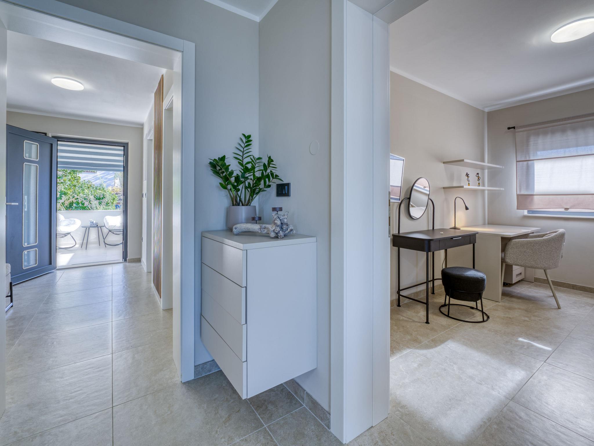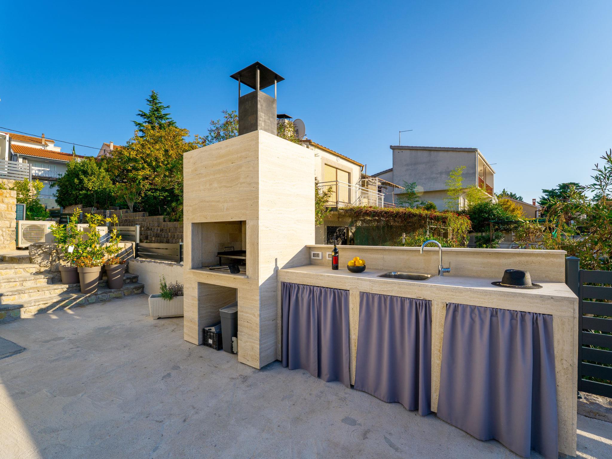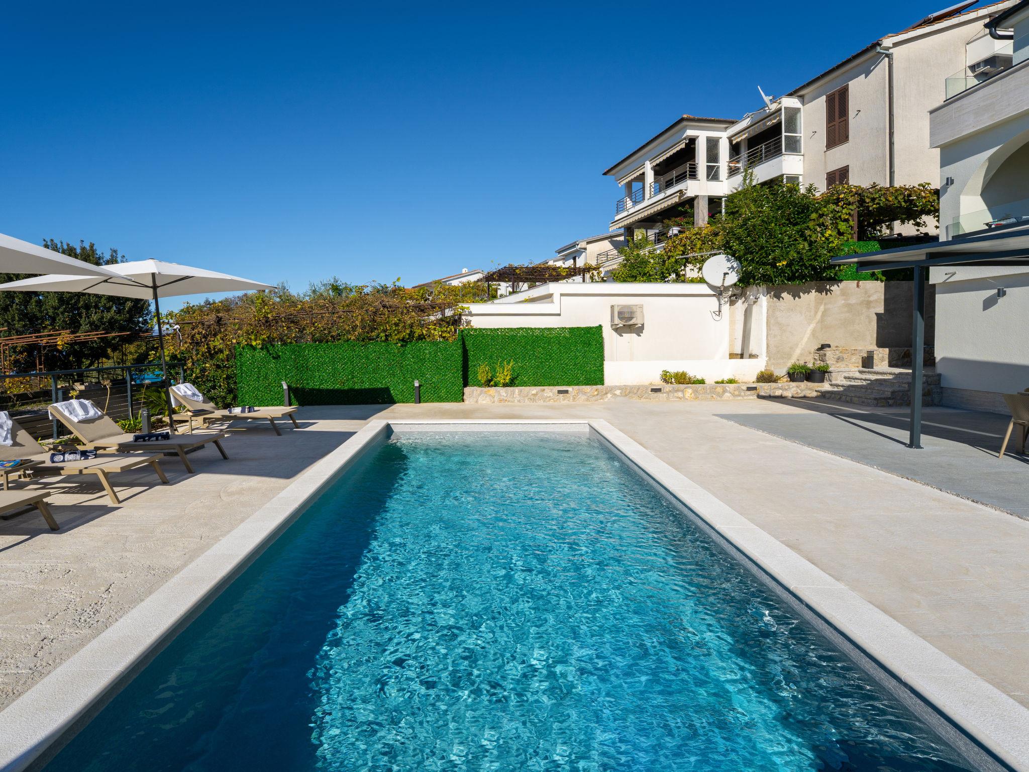 Modern, comfortable 2-family house detached in 2025. In the hamlet Mali Kijec 4.5 km from the centre of Omišalj, 10 km from the centre of Njivice, in a sunny position, 20 m from the sea, 20 m from the beach. Private: property 300 m2 (fenced), swimming pool angular, heated (3 x 7 m, depth 150 cm, seasonal availability: 15.May. - 01.Oct.) with internal staircase and salt-electrolysis pool-cleaning system. Outdoor shower, terrace (25 m2), garden furniture, barbecue, pool maintenance by the owner/gardener. In the house: WiFi. Parking (for 2 cars) at the house on the premises. Shop 100 m, supermarket 3.5 km, restaurant 4.5 km, bus stop 100 m, concrete beach 20 m. Fishing possibilities 20 m. The owner does not accept any youth groups. Please note: airfield 3.5 km from the property.