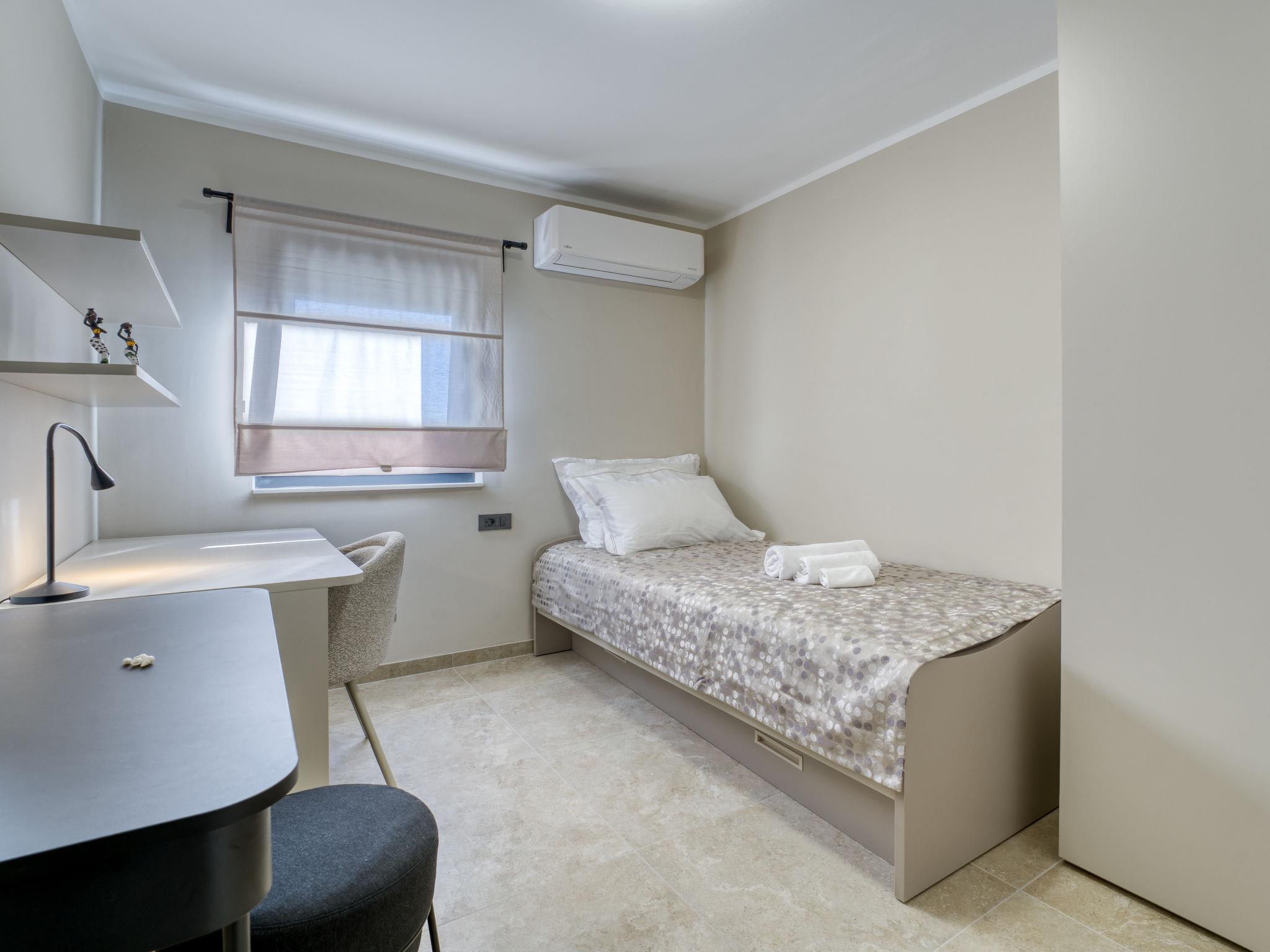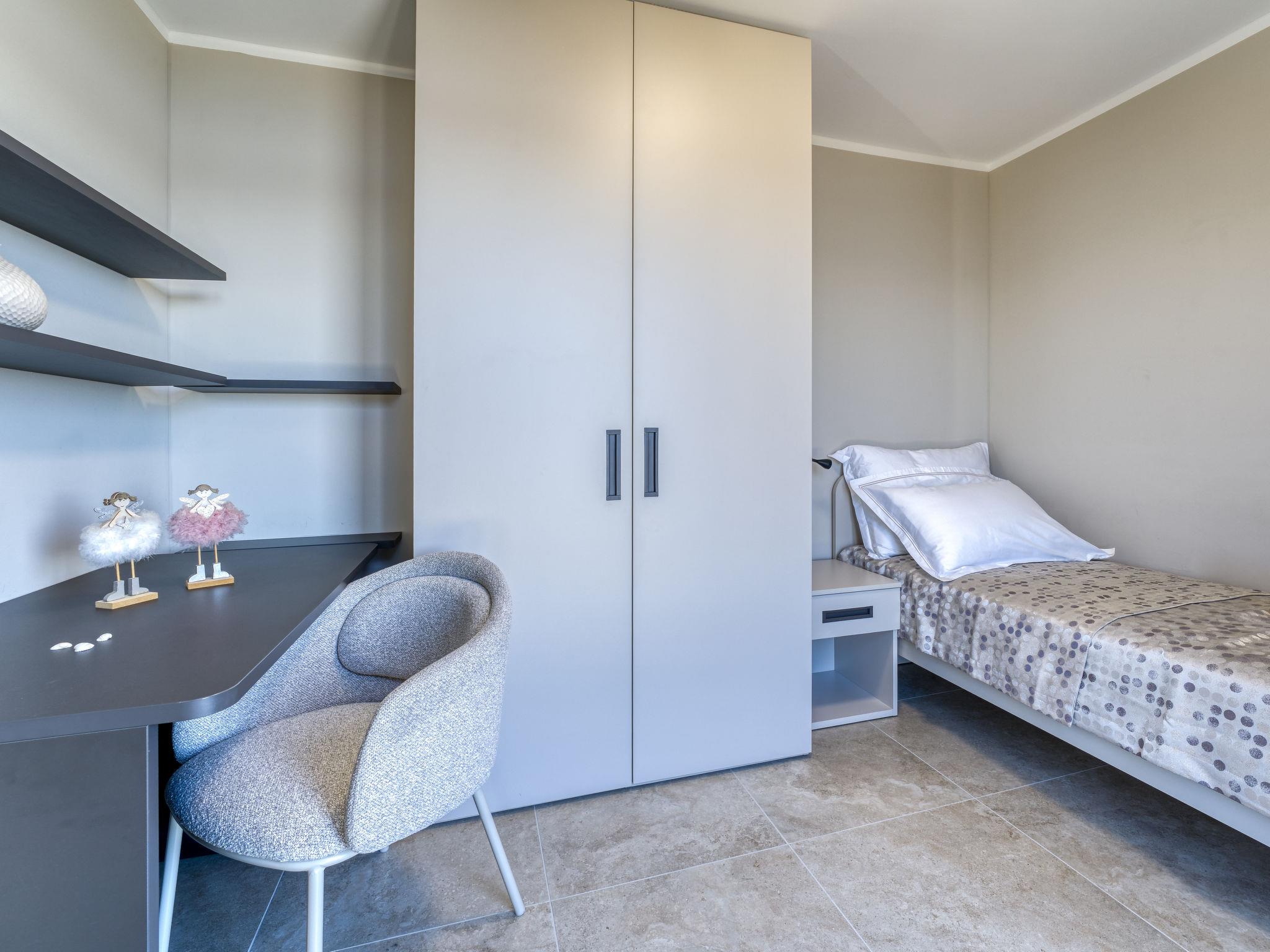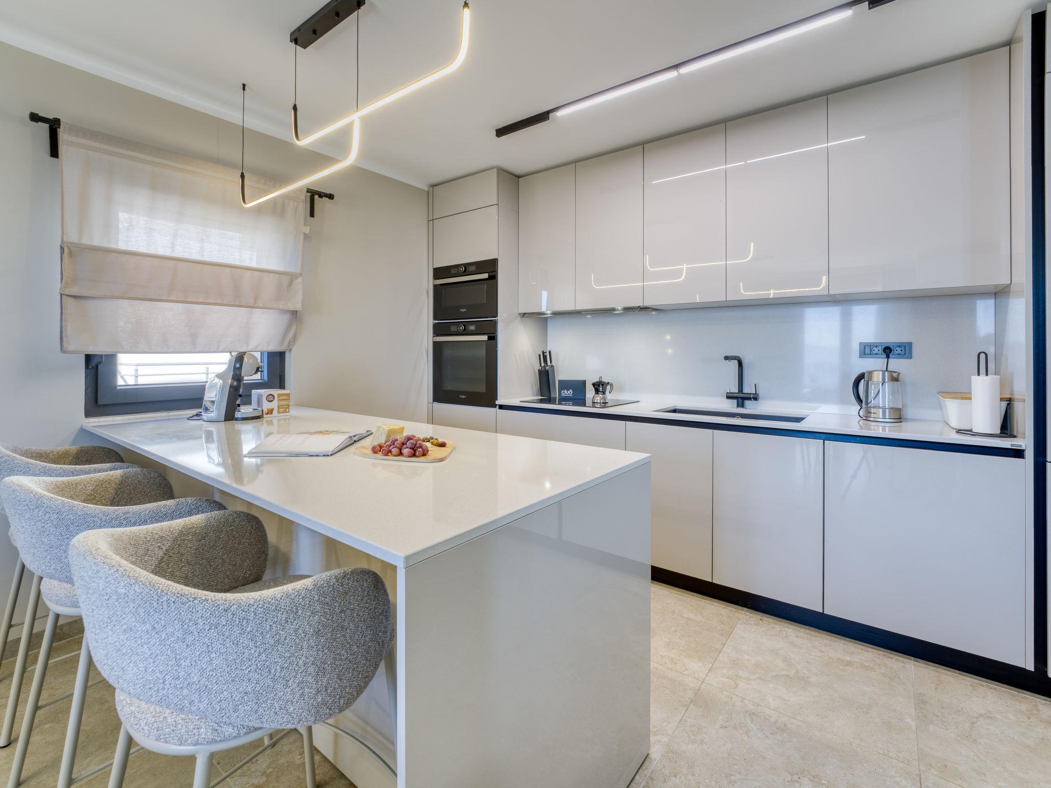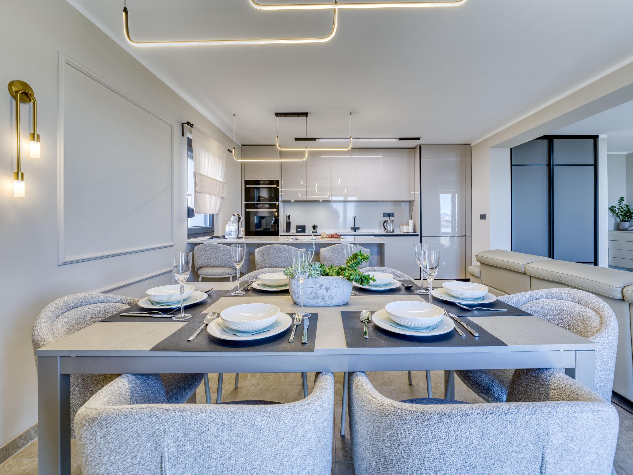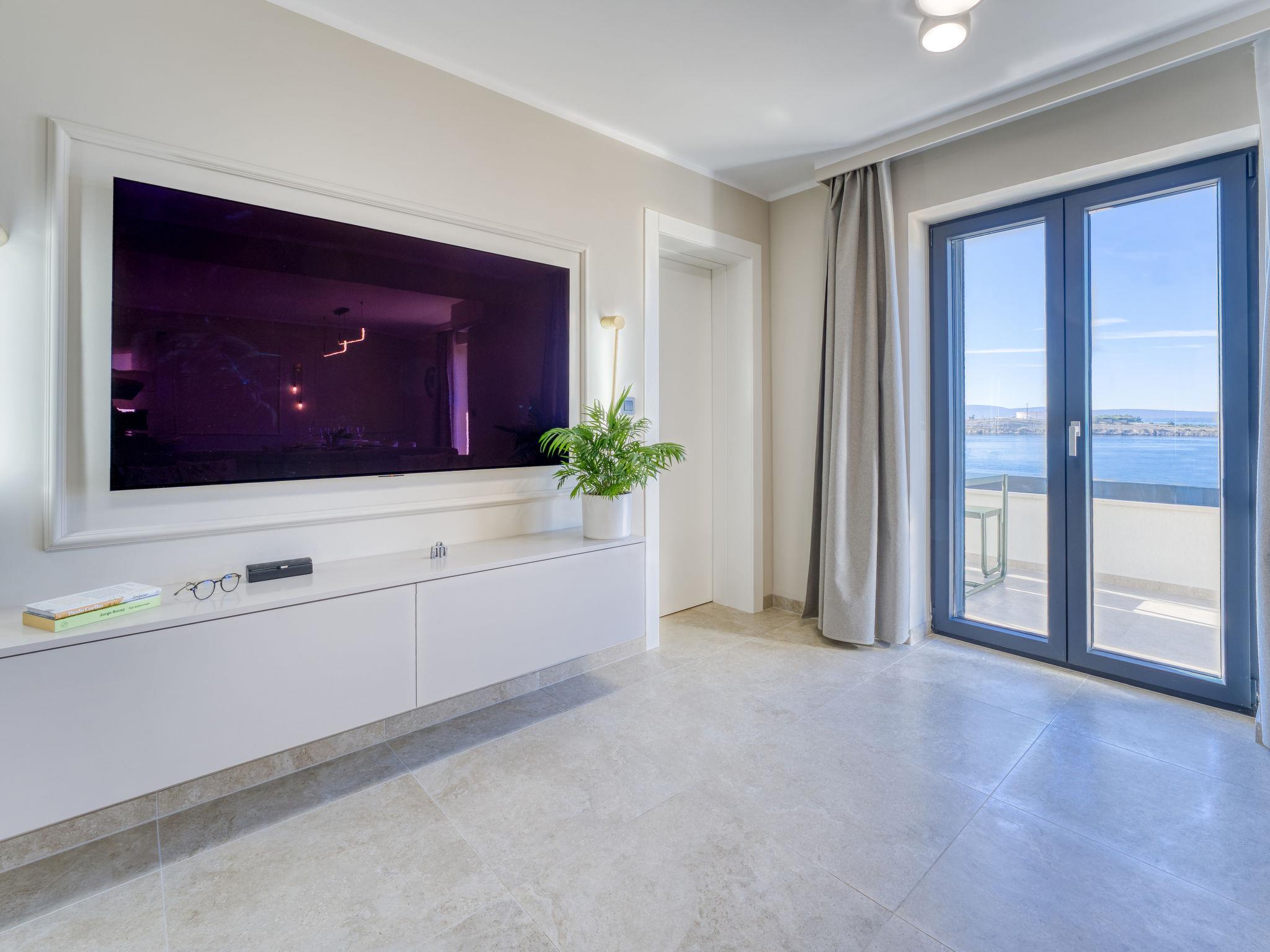"Lamar", 5-room apartment 100 m2, on the upper floor. Spacious and bright, renovated in 2025, modern and tasteful furnishings: living/dining room with cable TV. Exit to the balcony. 1 room with 1 french bed (180 cm, length 200 cm), cable TV and air conditioning. 1 room with 1 french bed (160 cm, length 200 cm), cable TV and air conditioning. Exit to the balcony. 1 room with 1 bed (90 cm, length 200 cm), cable TV and air conditioning. 1 room with 1 bed (80 cm, length 200 cm). Open kitchen (oven, dishwasher, 4 induction hot plates, toaster, kettle, freezer). 2 showers/WC. Forced-air heating. Balcony 15 m2. Balcony furniture. Marvellous view of the sea. Facilities: washing machine, children's high chair, baby cot, hair dryer. Internet (WiFi, free). Please note: suitable for families. Non-smoking house. Fire extinguisher.