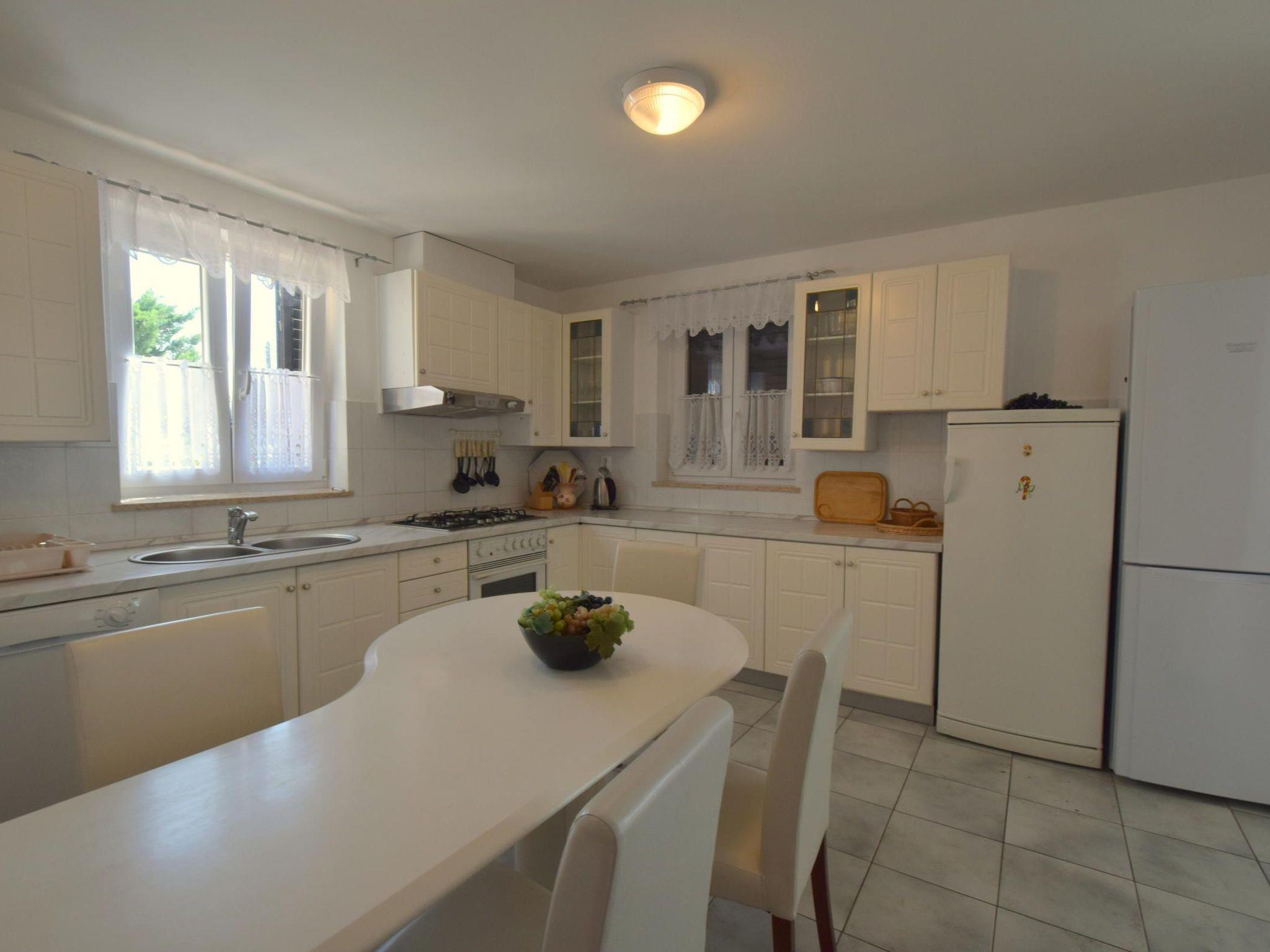 Step inside to discover a well-appointed interior designed for comfort and convenience. The apartment spans a generous 100 m2, providing ample space for everyone. Whether you're retreating to one of the three double bedrooms for some quiet time or gathering in the cozy living room, the layout ensures peace and privacy for all guests. Ease into your vacation mornings or wind down your evenings with a shared meal in the kitchen and dining area, fully equipped with a coffee machine and dishwasher for hassle-free living.