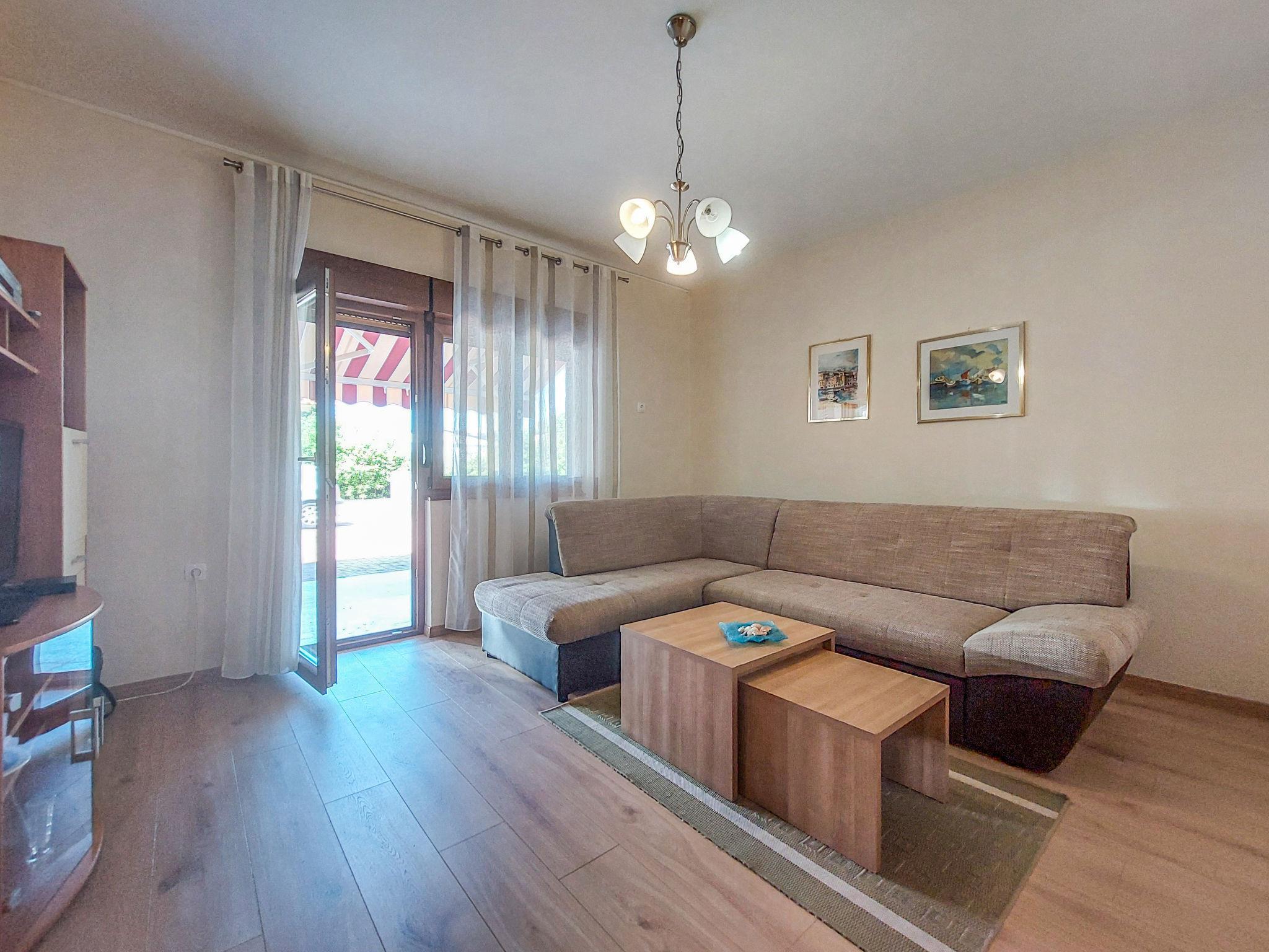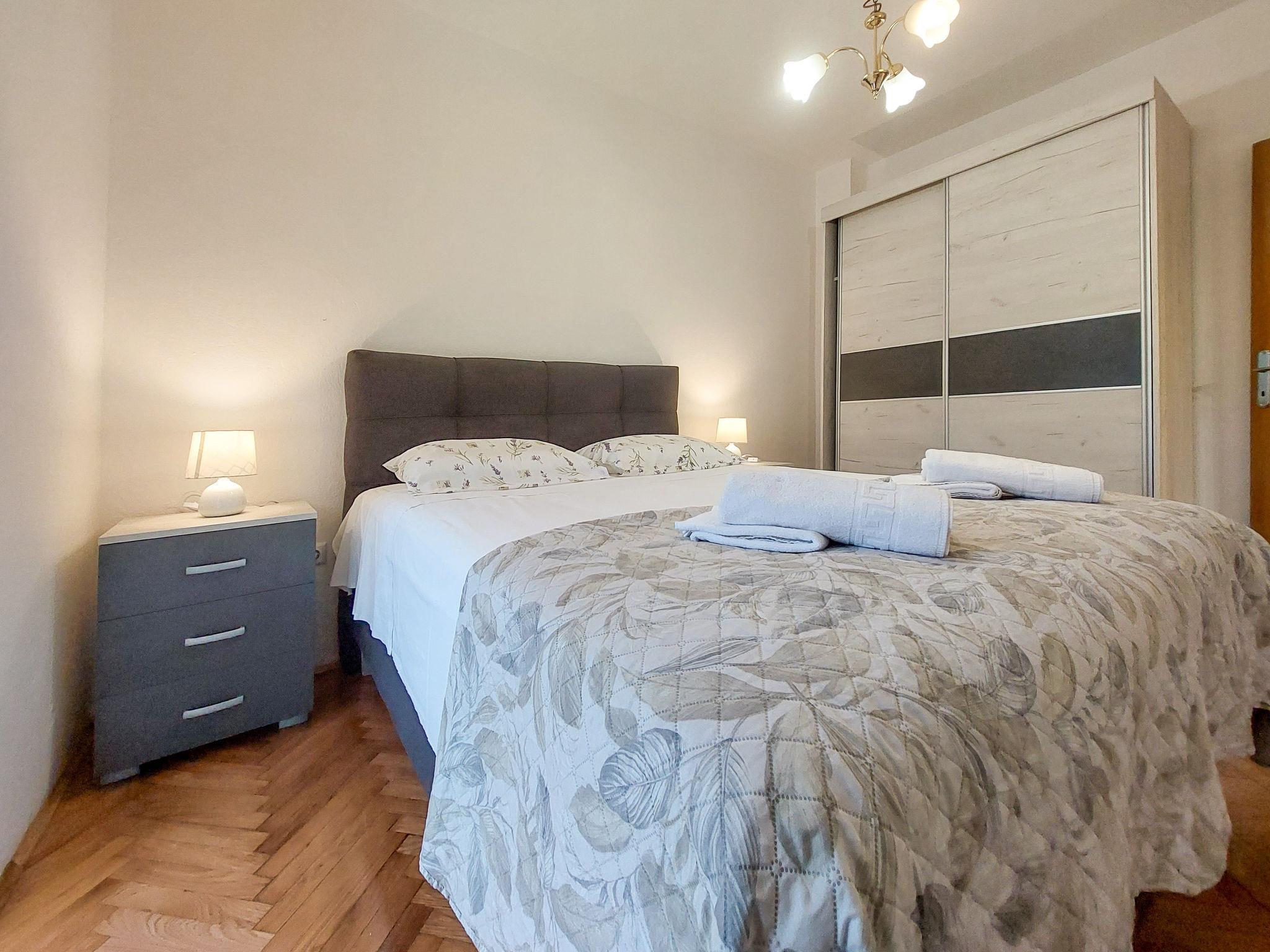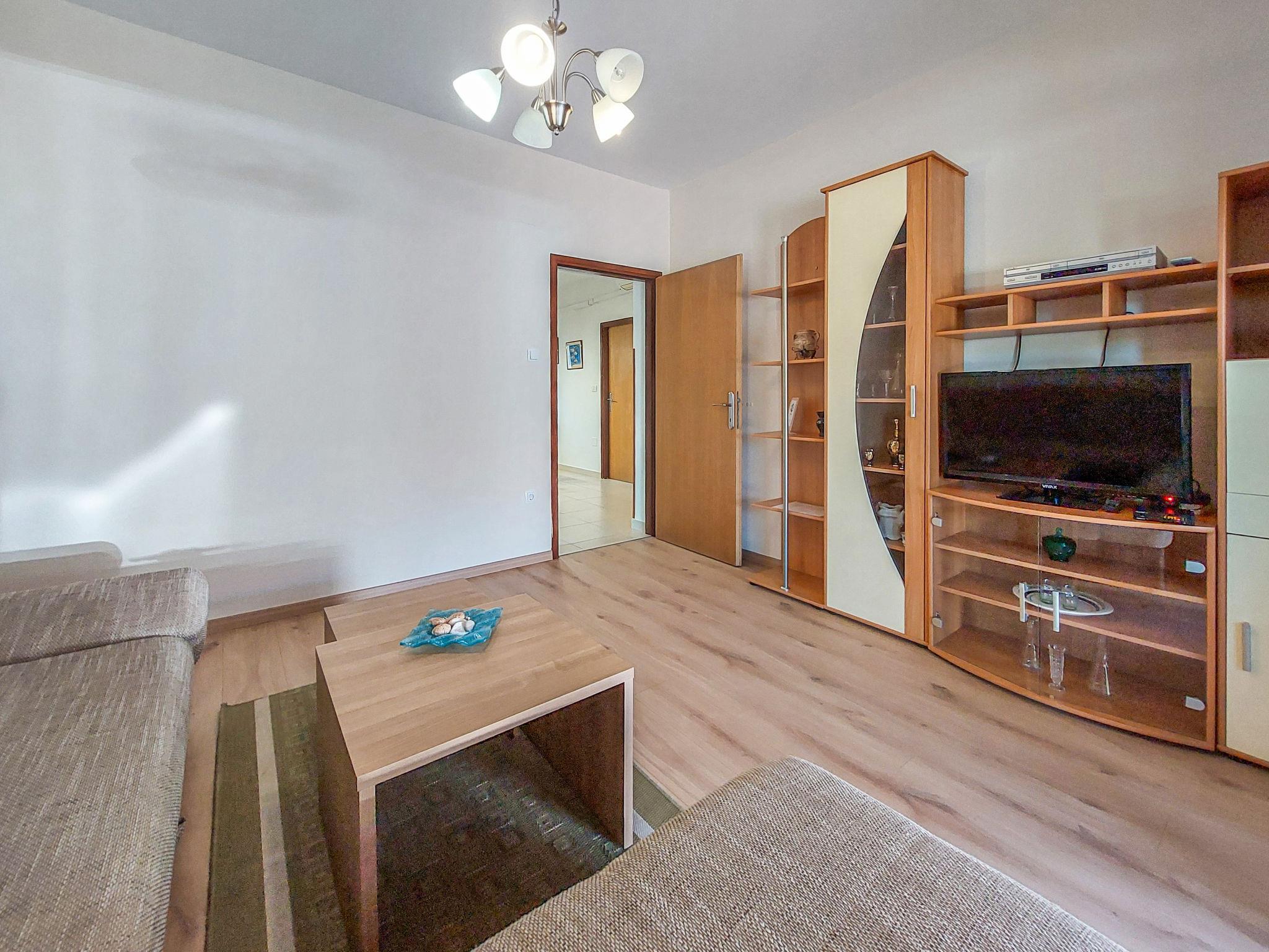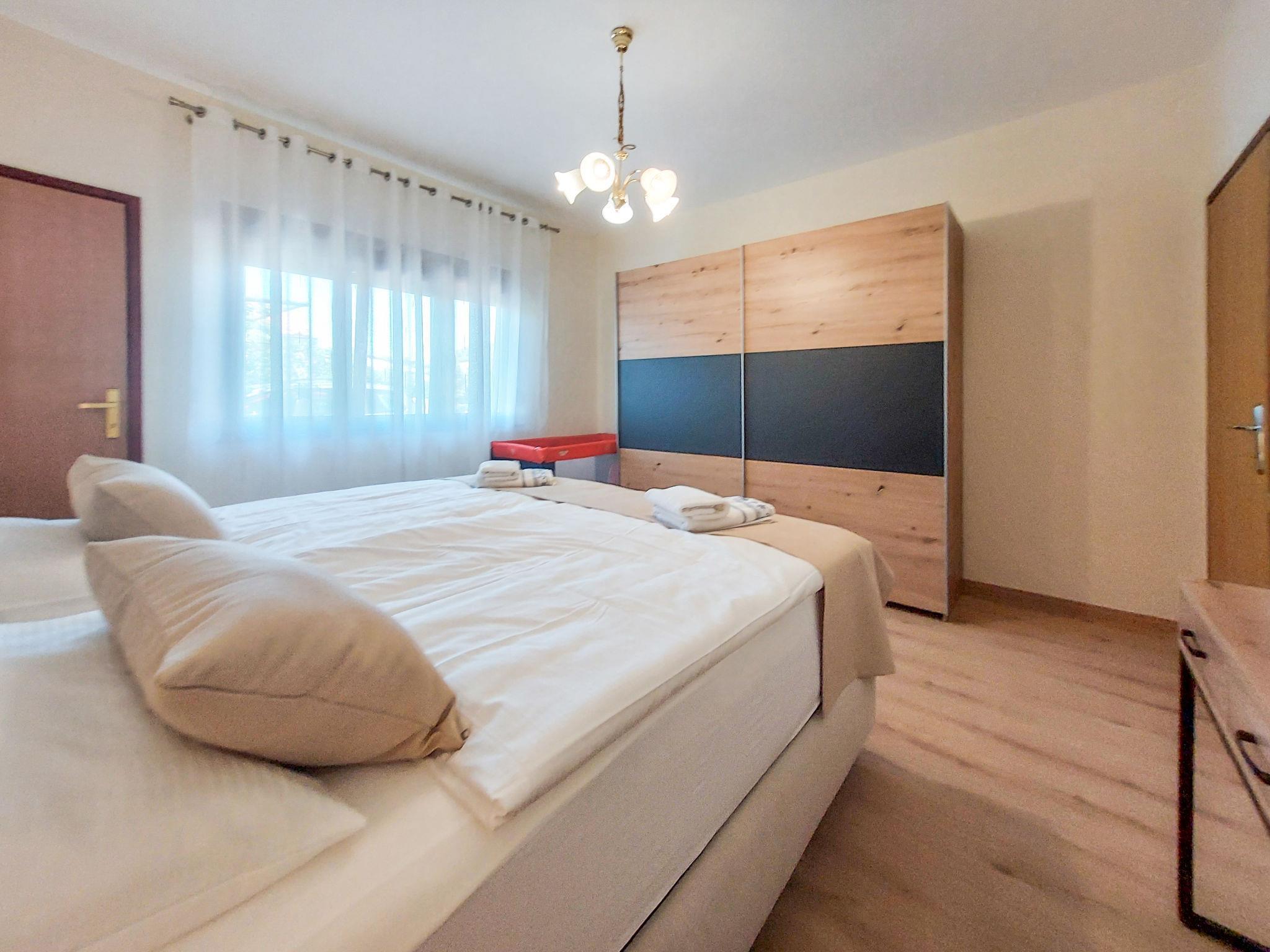 "Vesna", 3-room apartment 75 m2, on the ground floor. Object suitable for 4 adults + 1 child. Living/dining room with 1 sofabed (120 cm, length 200 cm), satellite TV and air conditioning. Exit to the terrace. 1 room with 1 double bed (2 x 90 cm, length 190 cm), separate WC. 1 room with 1 french bed (160 cm, length 200 cm), shower/WC. Kitchen (4 hot plates, oven, toaster, kettle, electric coffee machine) with dining table. Bath/WC. No heating option. Terrace 25 m2. Terrace furniture, barbecue (portable). Facilities: children's high chair, baby cot. Internet (WiFi, free). Please note: non-smokers only. Private entrance.