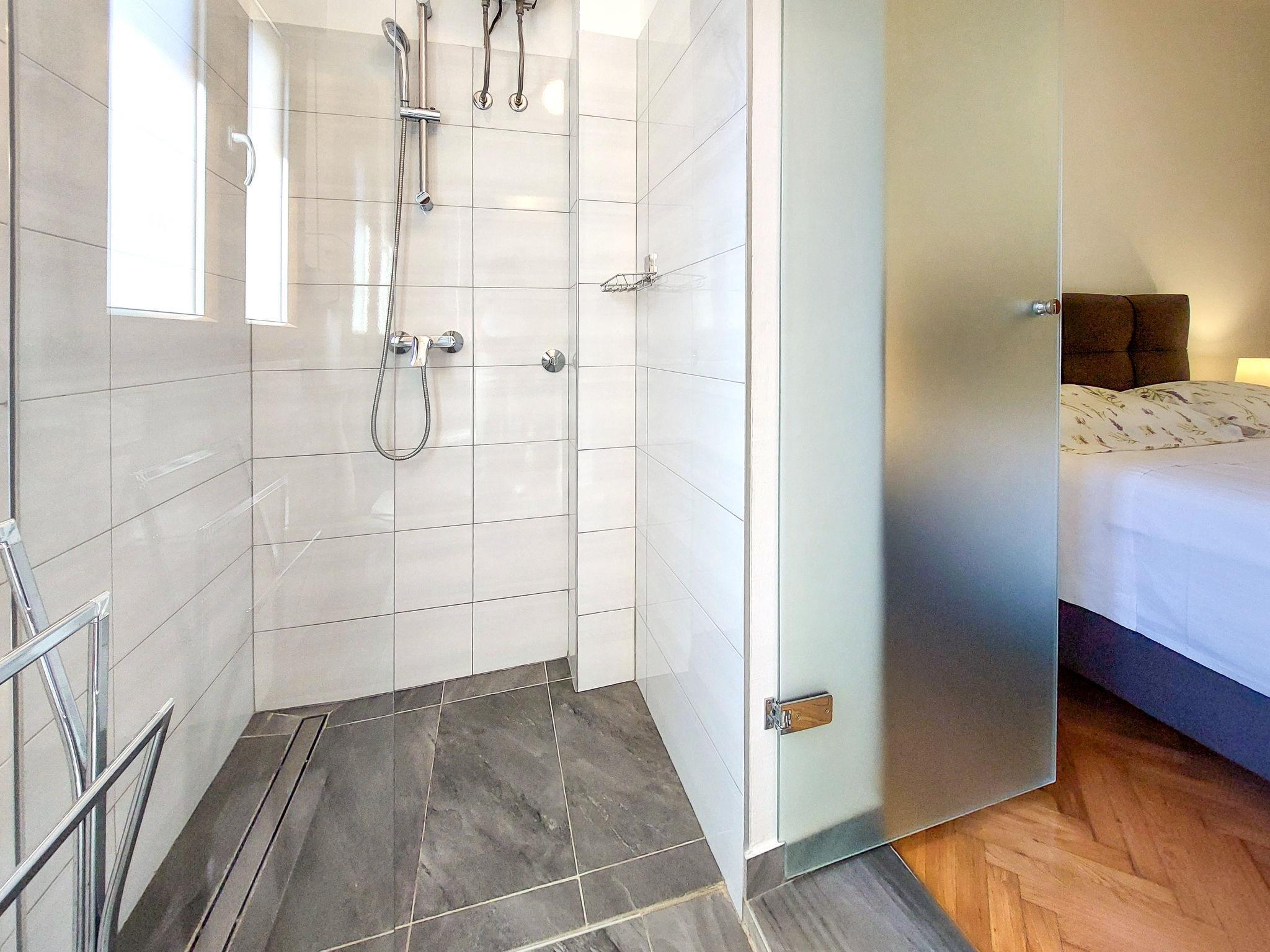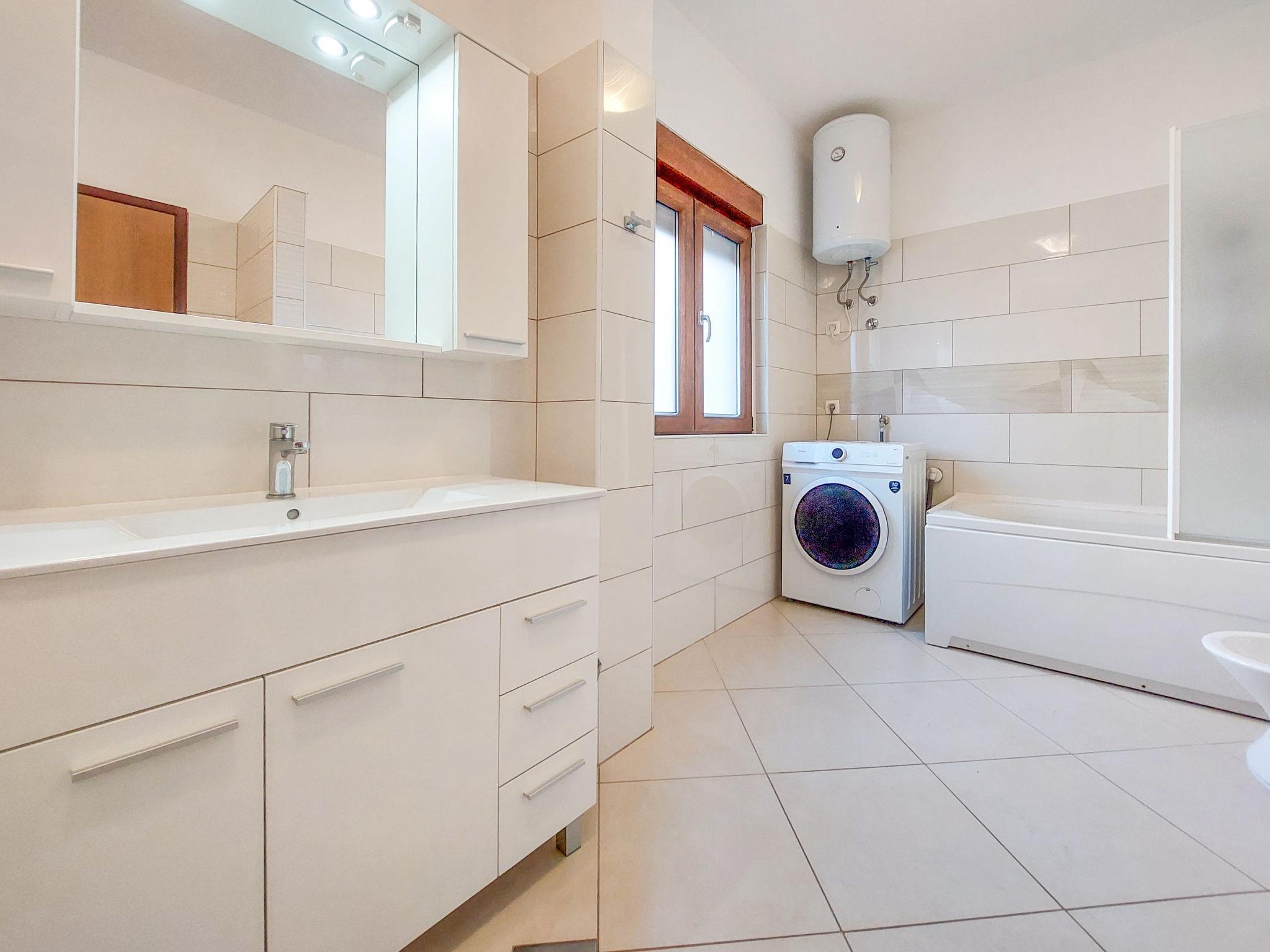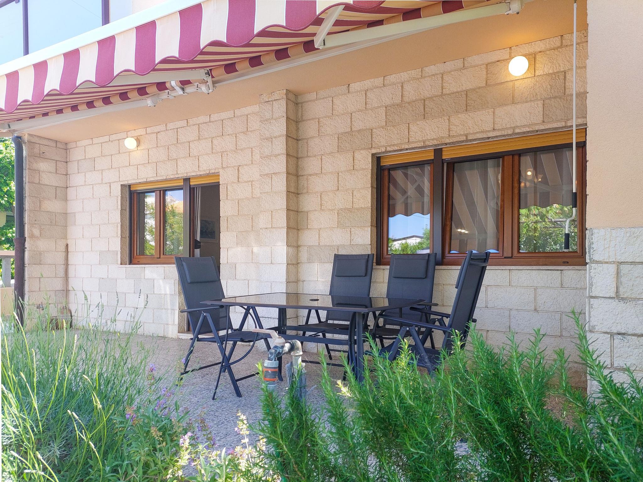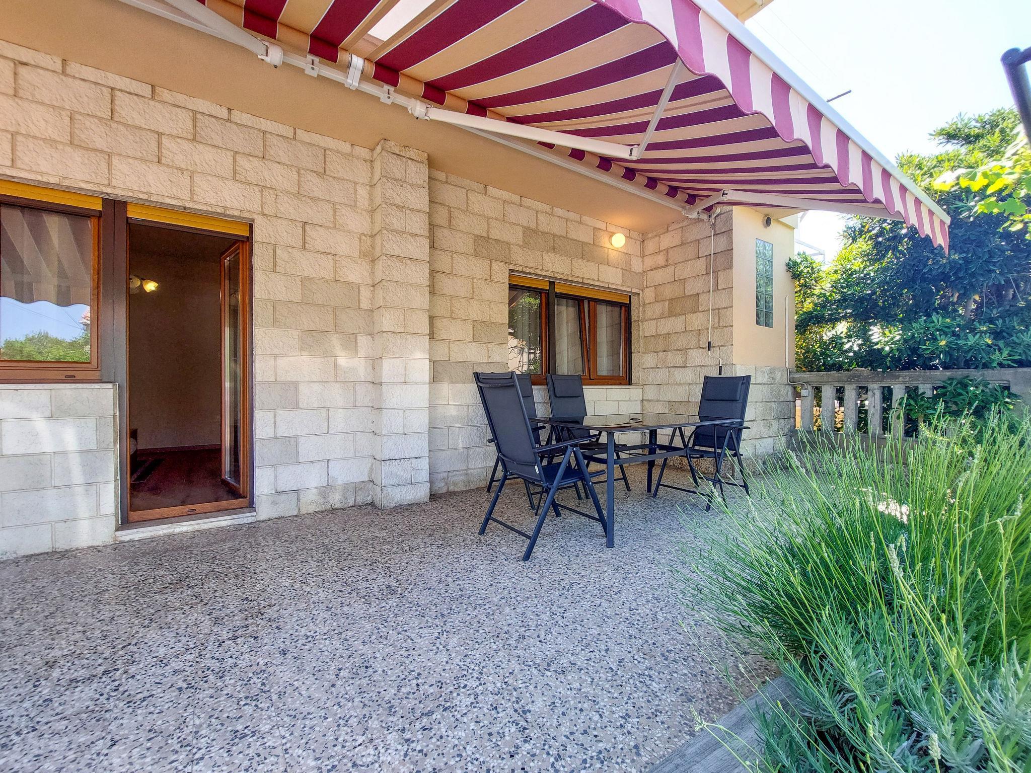 "Vesna", 3-room apartment 75 m2, on the ground floor. Object suitable for 4 adults + 1 child. Living/dining room with 1 sofabed (120 cm, length 200 cm), satellite TV and air conditioning. Exit to the terrace. 1 room with 1 double bed (2 x 90 cm, length 190 cm), separate WC. 1 room with 1 french bed (160 cm, length 200 cm), shower/WC. Kitchen (4 hot plates, oven, toaster, kettle, electric coffee machine) with dining table. Bath/WC. No heating option. Terrace 25 m2. Terrace furniture, barbecue (portable). Facilities: children's high chair, baby cot. Internet (WiFi, free). Please note: non-smokers only. Private entrance.