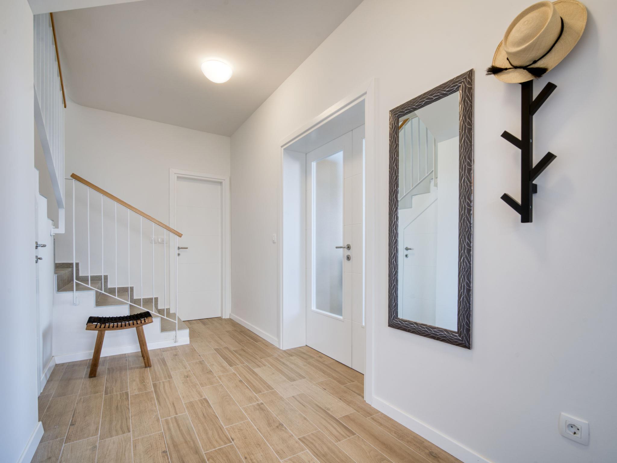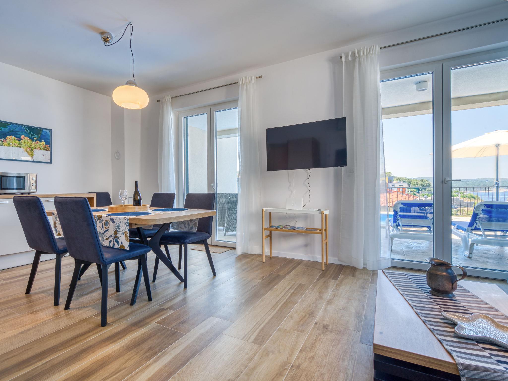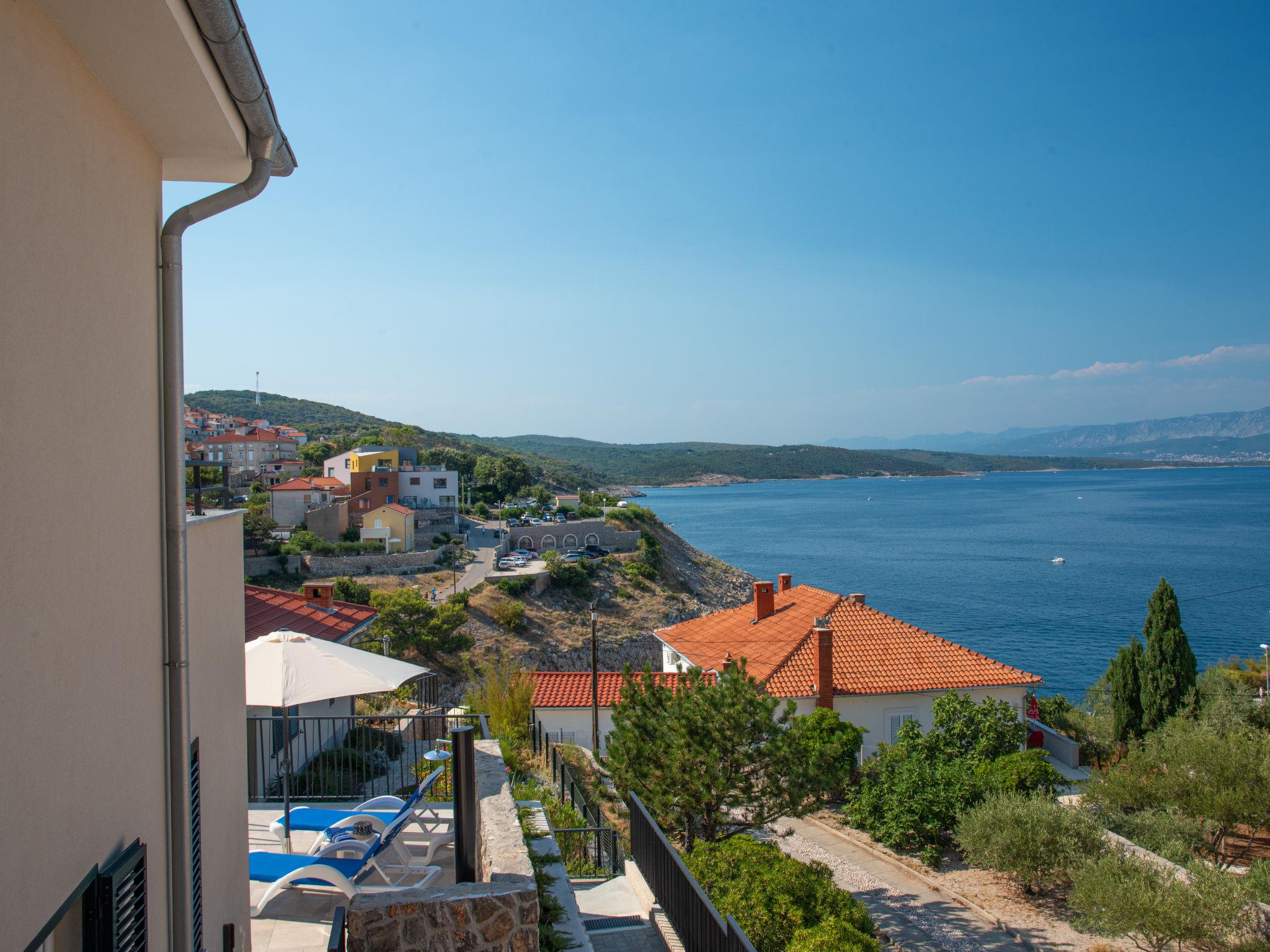 Semi-detached house "Villa Vali 2", 2 storeys, built in 2022. 300 m from the centre of Vrbnik, in a sunny, elevated position, 70 m from the sea, 70 m from the beach, in a cul-de-sac. Private: property 300 m2 (fenced), swimming pool angular (5 x 4 m, depth 140 cm, seasonal availability: 01.May. - 15.Oct.) with salt-electrolysis pool-cleaning system. Outdoor shower. In the house: internet access, washing machine. Shop 400 m, restaurant 70 m, bus stop 750 m, pebble beach, rocky beach, concrete beach 70 m.