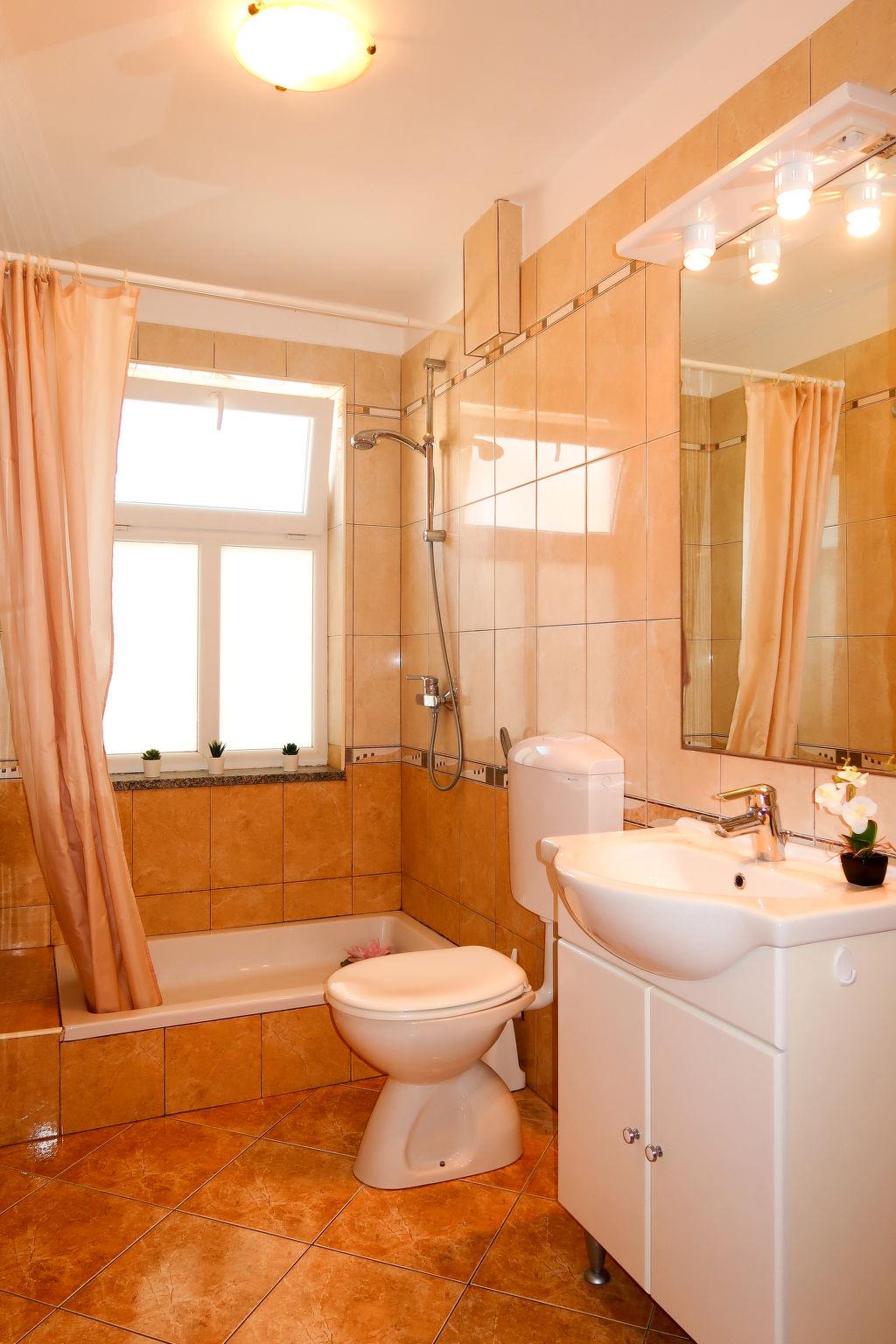 Apartment house "Marija". 300 m from the centre of Vrbnik, 12 km from the centre of Krk, 18 km from the centre of Malinska, in a sunny position, 200 m from the sea, 200 m from the beach, located by a road. For shared use: property 1'000 m2. In the house: internet access, washing machine (for shared use). Parking at the house. Shop 100 m, restaurant 250 m, bus stop 500 m, pebble beach 200 m. Please note: airfield 30 km from the property.