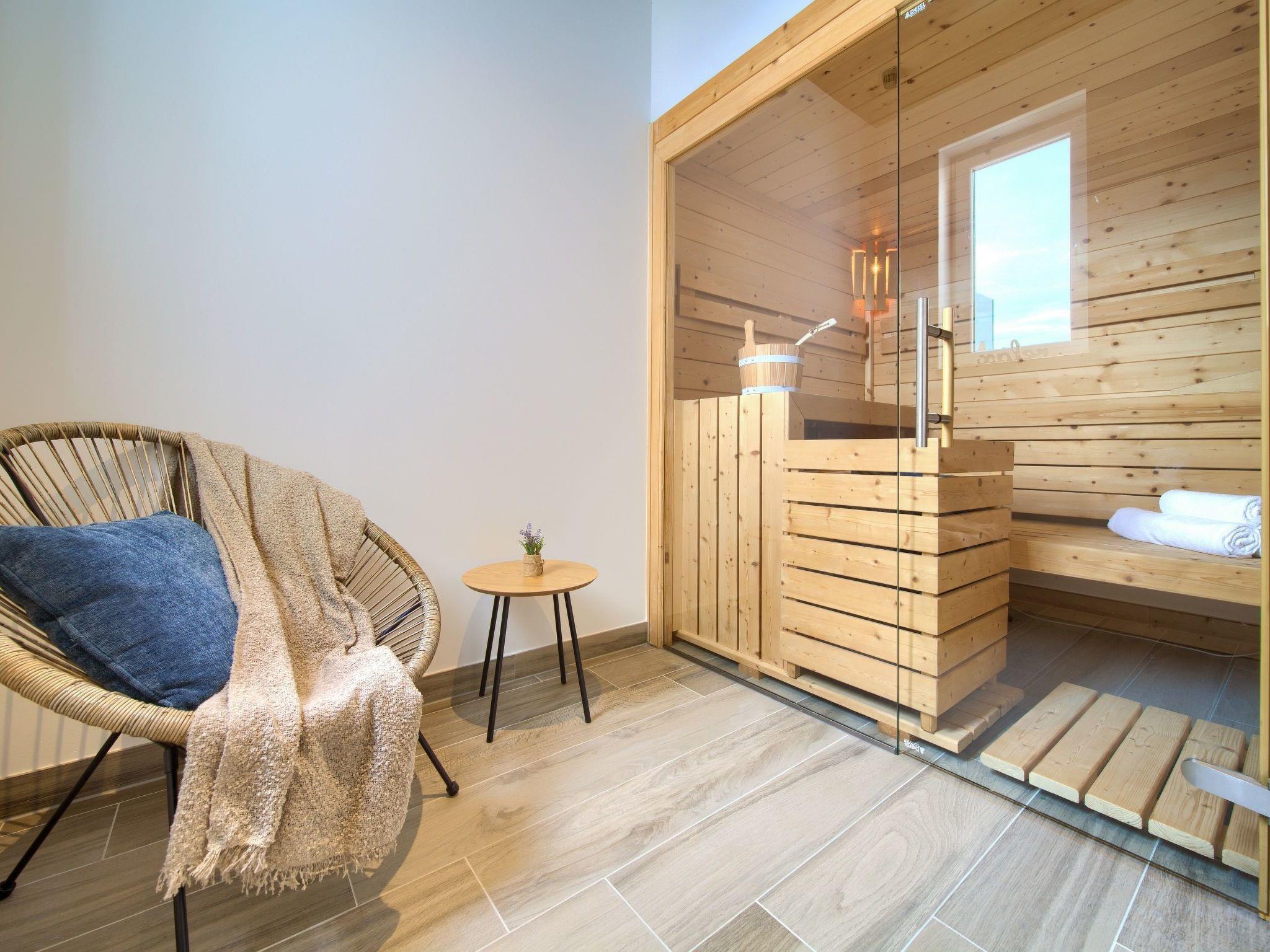 In the small and romantic town of Vrbnik, on the island of Krk, this new beautiful villa with a fantastic view of the sea is located. The villa has 350 m2, 4 bedrooms and 4 bathrooms. In the entrance hall there is a laundry room and a large garage, on the first floor there is a living room, a bedroom with a bathroom and a sauna. The living room leads to a covered terrace with an infinity pool overlooking the sea.