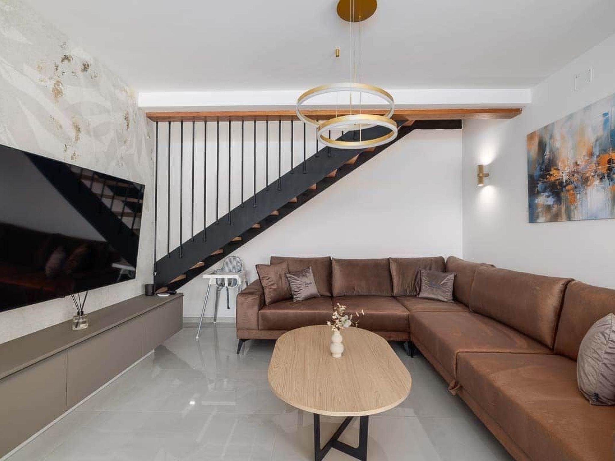 Inside, the house is fully equipped with all the amenities needed for a seamless holiday experience. It features three inviting bedrooms and two bathrooms with showers, ensuring comfort and privacy for all guests. The presence of air conditioning throughout the house guarantees a cool and pleasant environment regardless of the outdoor temperatures. Entertainment is easily available thanks to a smart TV, and a washing machine for sole use adds an element of home convenience. The kitchen is well-appointed with an induction hob, a coffee machine, a dishwasher, and an electric kettle, catering to all your culinary needs.