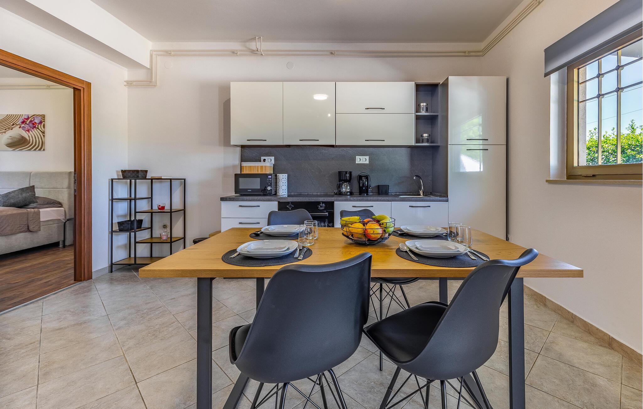 Gå udenfor om morgenen og begynd dagene med en solid morgenmad. Nyd havens grønne omgivelser og den middelhavsagtige atmosfære, der omgiver jer. Om aftenen kan I tilberede lækre måltider på grillen og hælde jer selv en fin kroatisk vin op.