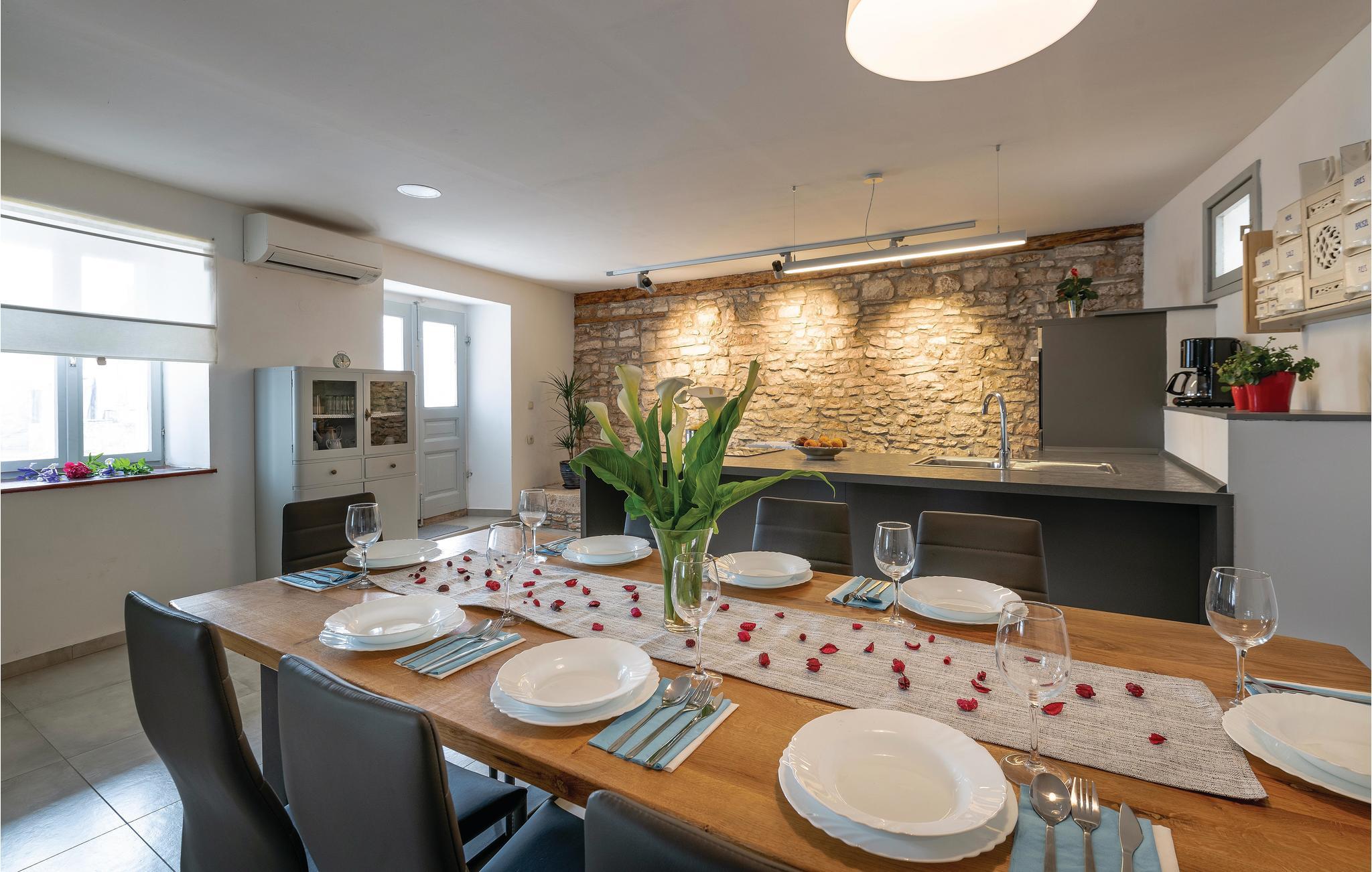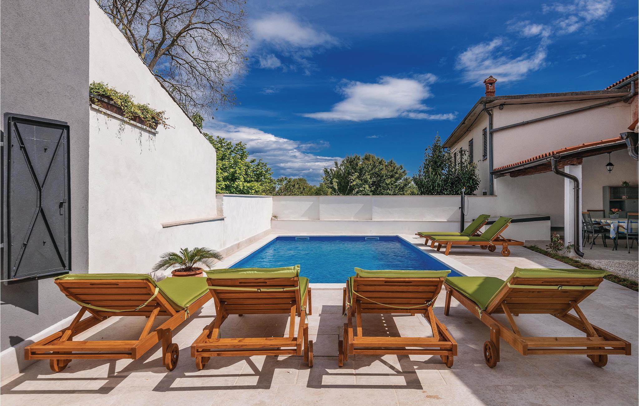I landsbyen Hreljici ligger dette egnstypiske og autentiske istriske feriehus, der er blevet fuldstændigt tilpasset moderne levestandard. Der er tænkt på de mindste detaljer, ved indretningen af det smukke indre, for at sikre jer et behageligt ophold. I den indhegnede indre gård ligger den forfriskende pool og den overdækkede terrasse, perfekt til hyggeligt samvær i de lange lune afslappede feriedage. De nærmeste strande ligger i Blazbugten, Krnicki Porat og Duga Uvala. I den nærliggende landsby Manjadvorci en en hesteranch hvor I kan få undervisning og komme med på tur på hesteryg og i Glavani ligger en klatrepark. Pula bugner af historiske seværdigheder og mange former for sommerunderholdning.