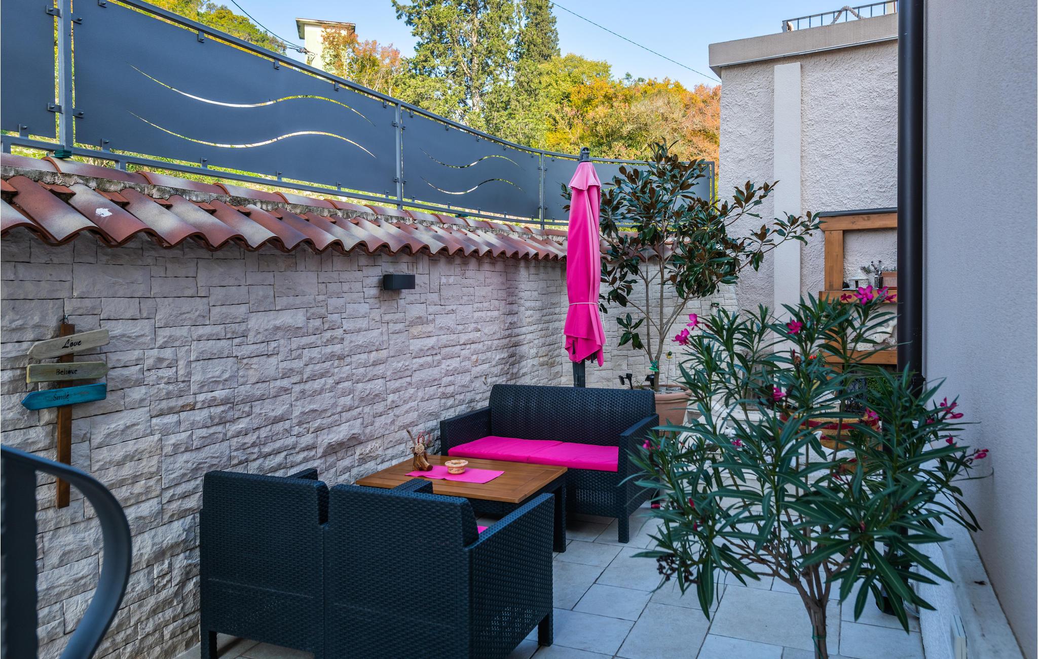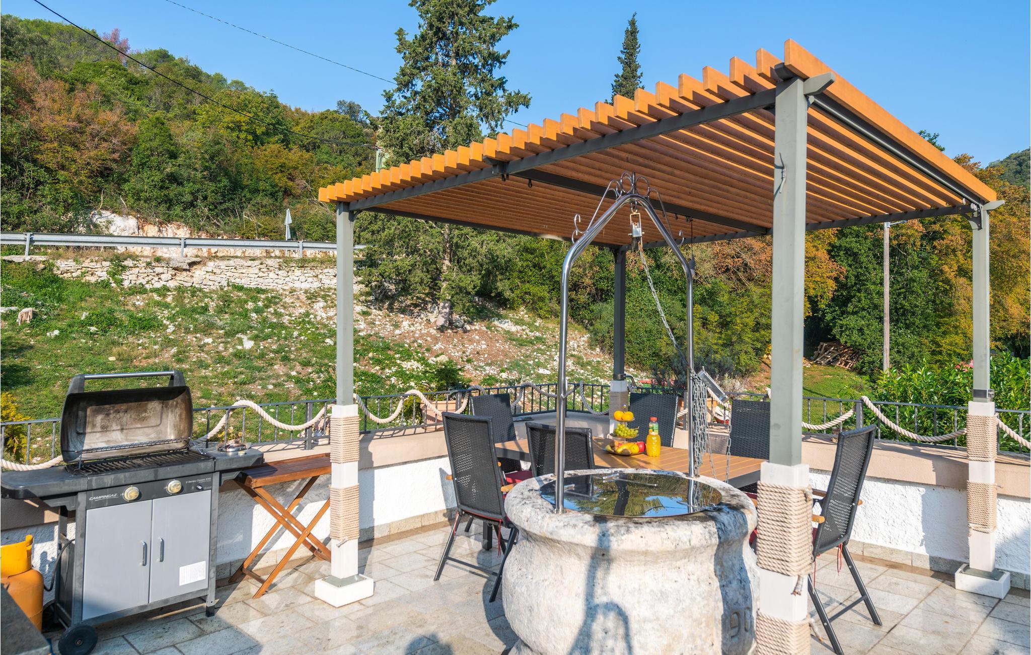 Det flisebelagte udeareal omkring huset har mange hyggelige solkroge, hvor man kan solbade eller læse en bog. Særligt bemærkelsesværdig er den store terrasse, som giver jer et hyggeligt sted til aftenmiddagen. Grillen er prikken over i'et, så køb friske fisk på havnen og anden lækker kroatisk mad, som I kan tilberede på terrassen.