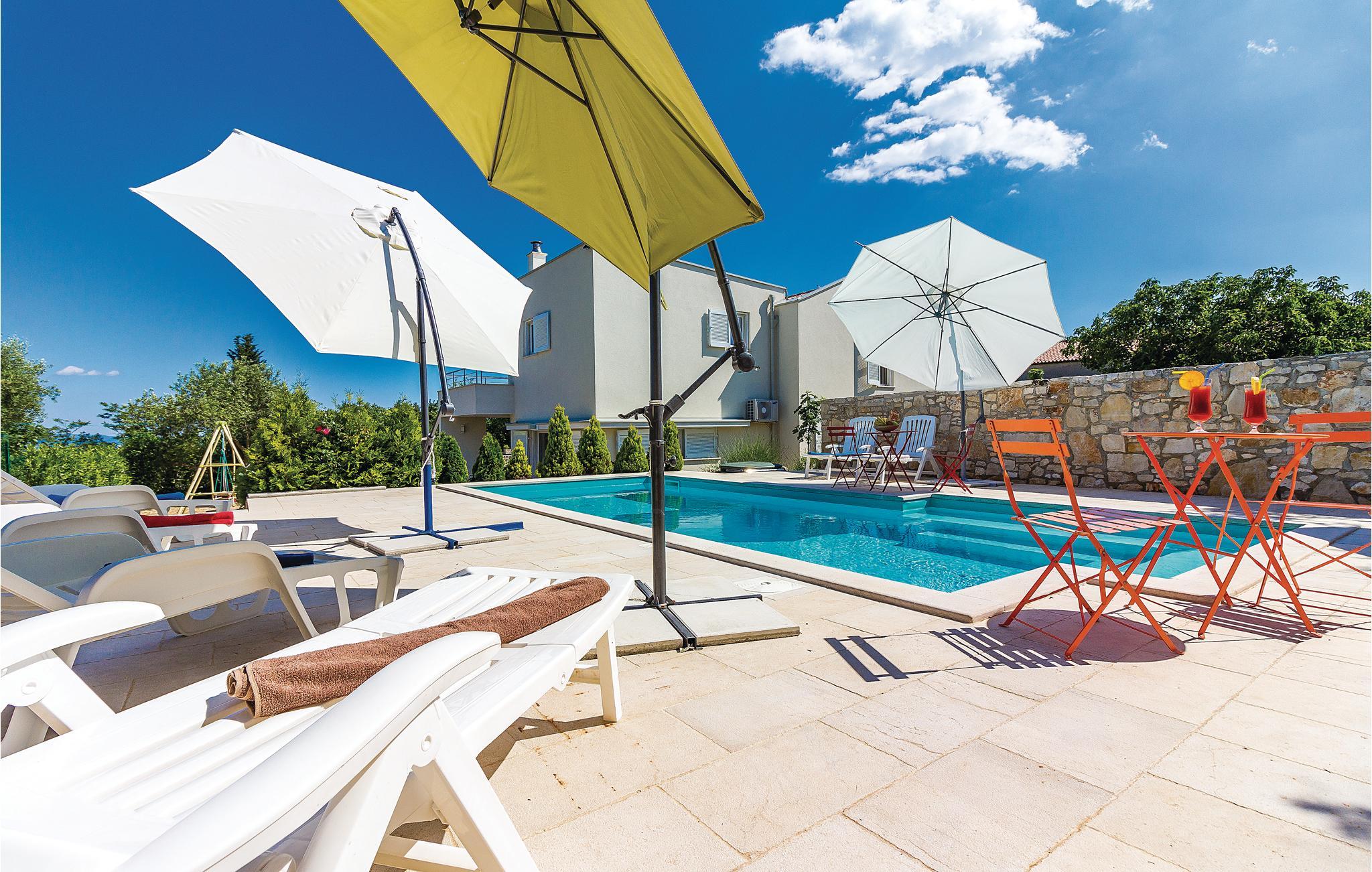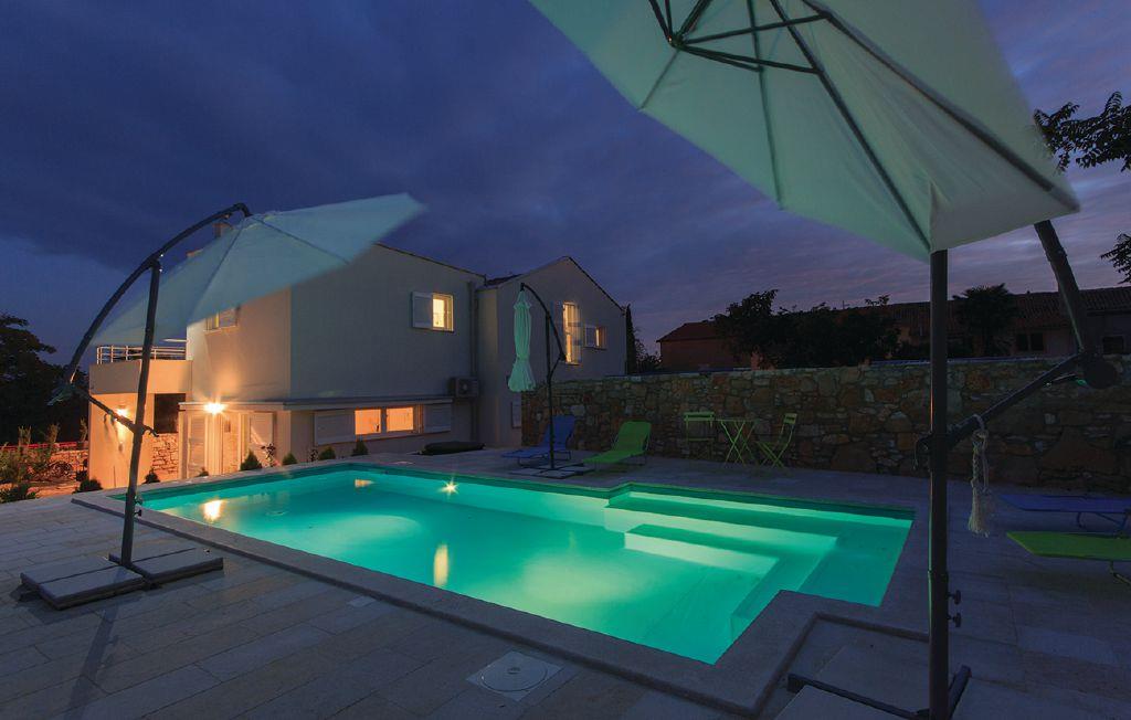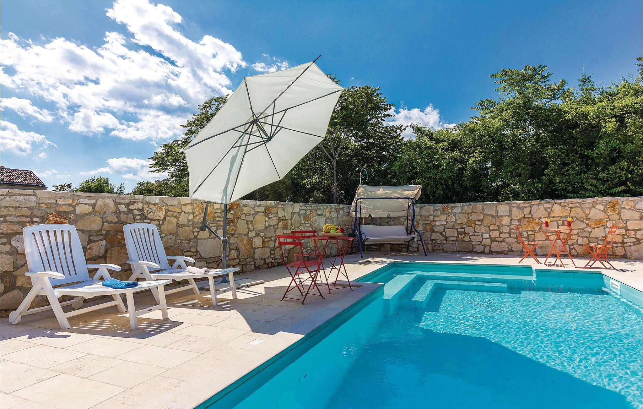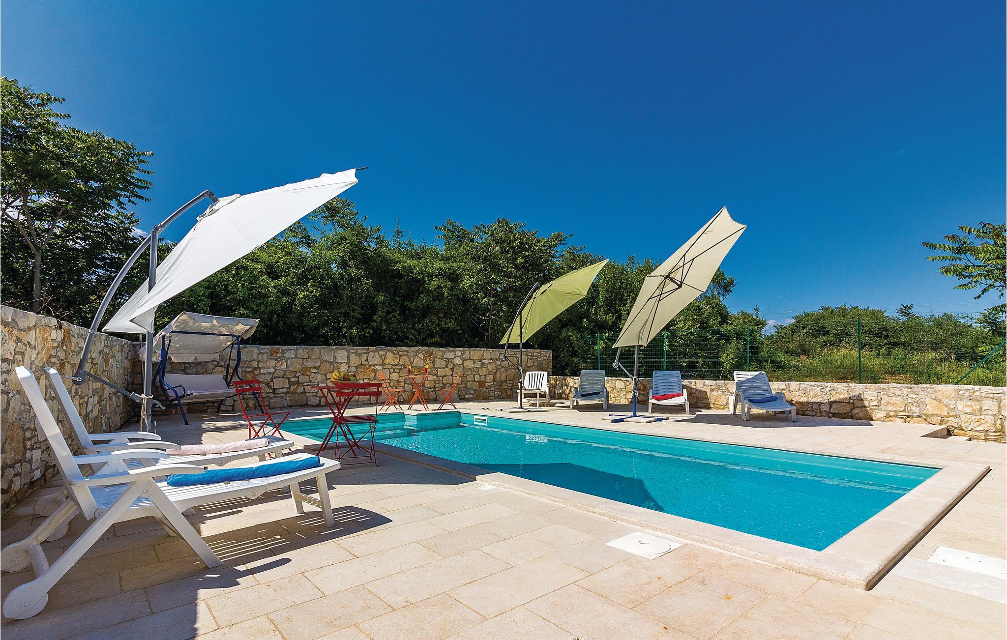 Dette dejlige feriehus med pool ligger i byen Rakalj nær havet. Her er en charmerende blanding af traditionelle istriske og moderne detaljer. I stueplan er et stort opholdsområde, hvorfra I går direkte ud på terrassen. På første sal ligger soveværelset med badeværelse en suite og en balkon med skøn udsigt over Kvarner bugten. Huset har sauna, en whirlpool hvis tusinder af bobler forkæler jeres ømme muskler, legeredskaberne i haven vil begejstre familiens børn. Besøg de små byer i nærheden, hvor der om sommeren foregår mange arrangementer som fiskerfester, hvor I har gode muligheder for at lære lokale skikke og det rige, traditionelle køkken at kende. Nyd det idylliske landskab og gå op opdagelse efter de mange skønne strande. I kan leje en cykel på stedet for at udnytte de mange cykelstier.