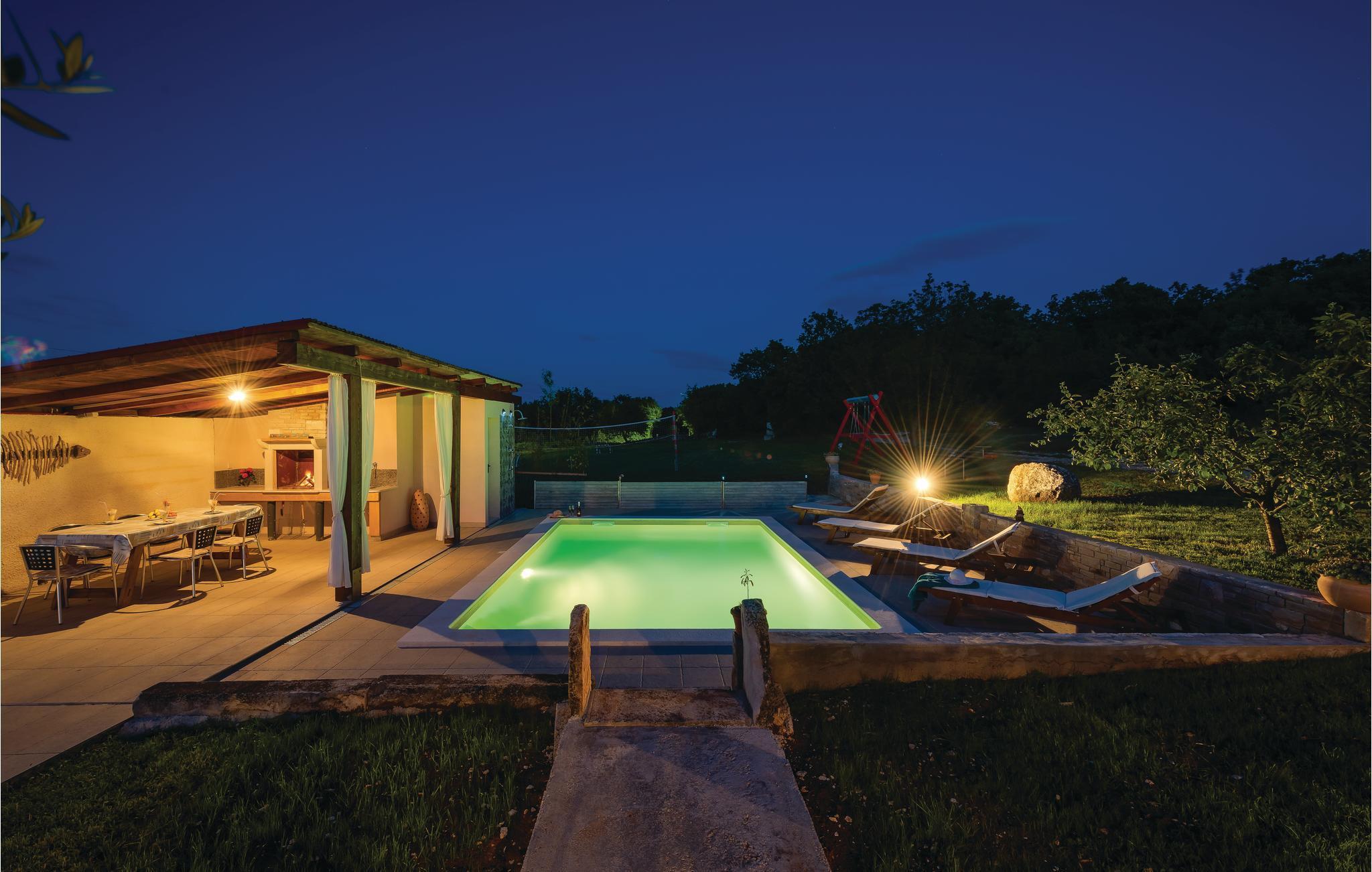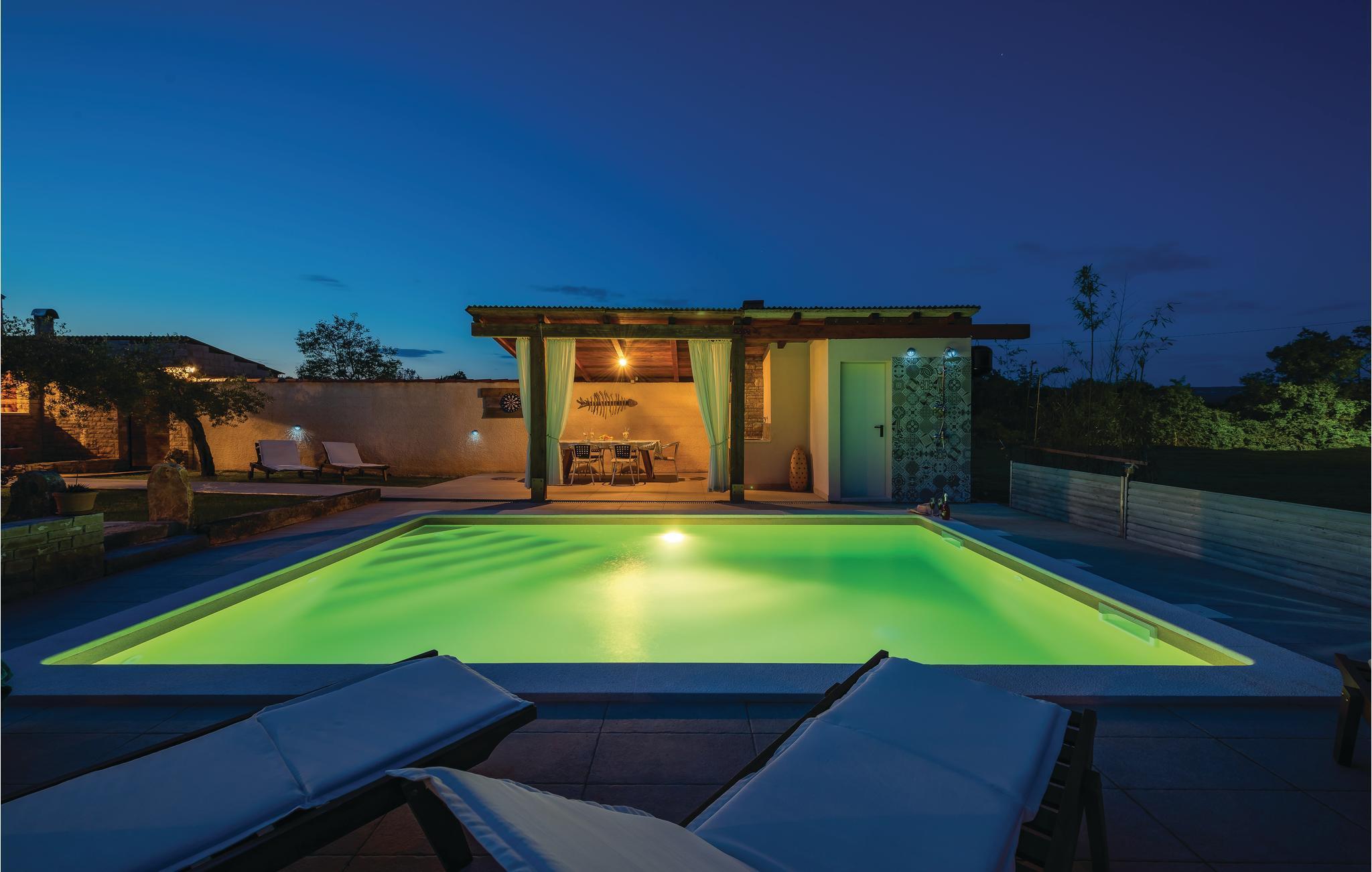 Hold en velgørende ferie langt væk fra den hektiske hverdag, i skønne landlige og rolige omgivelser. Huset har swimingpool som bliver det forfriskende midtpunkt for ferien. Ud over en komfortabel stue i åben forbindelse med køkkenet, tre soveværelser og to badeværelser, har I også adgang til en skøn have, hvor børnene kan lege som de har lyst, mens I slapper af på den overdækkede terrasse. Her laver maden næsten sig selv på grillen, mens I nyder et glas af den lokale vin. I er omgivet af skøn natur, det krystalklare hav, mange solrige timer og mange naturlige små ensomme bugte. Vi kan især anbefale jer at besøge de maleriske kystbyer Pula, Fažana og Medulin og til sjov og afveksling forlystelsesparken Glavani.