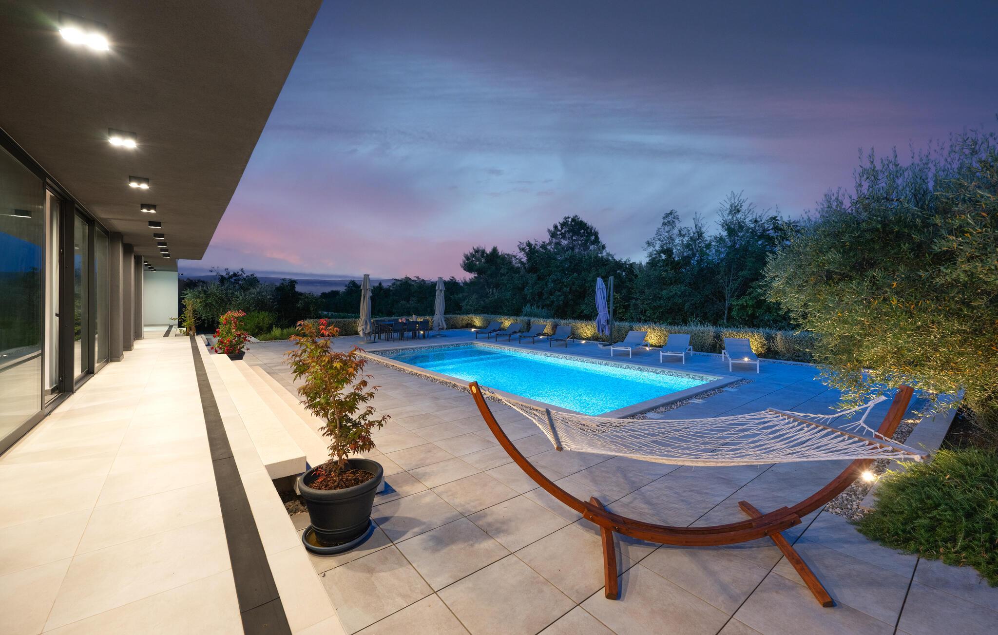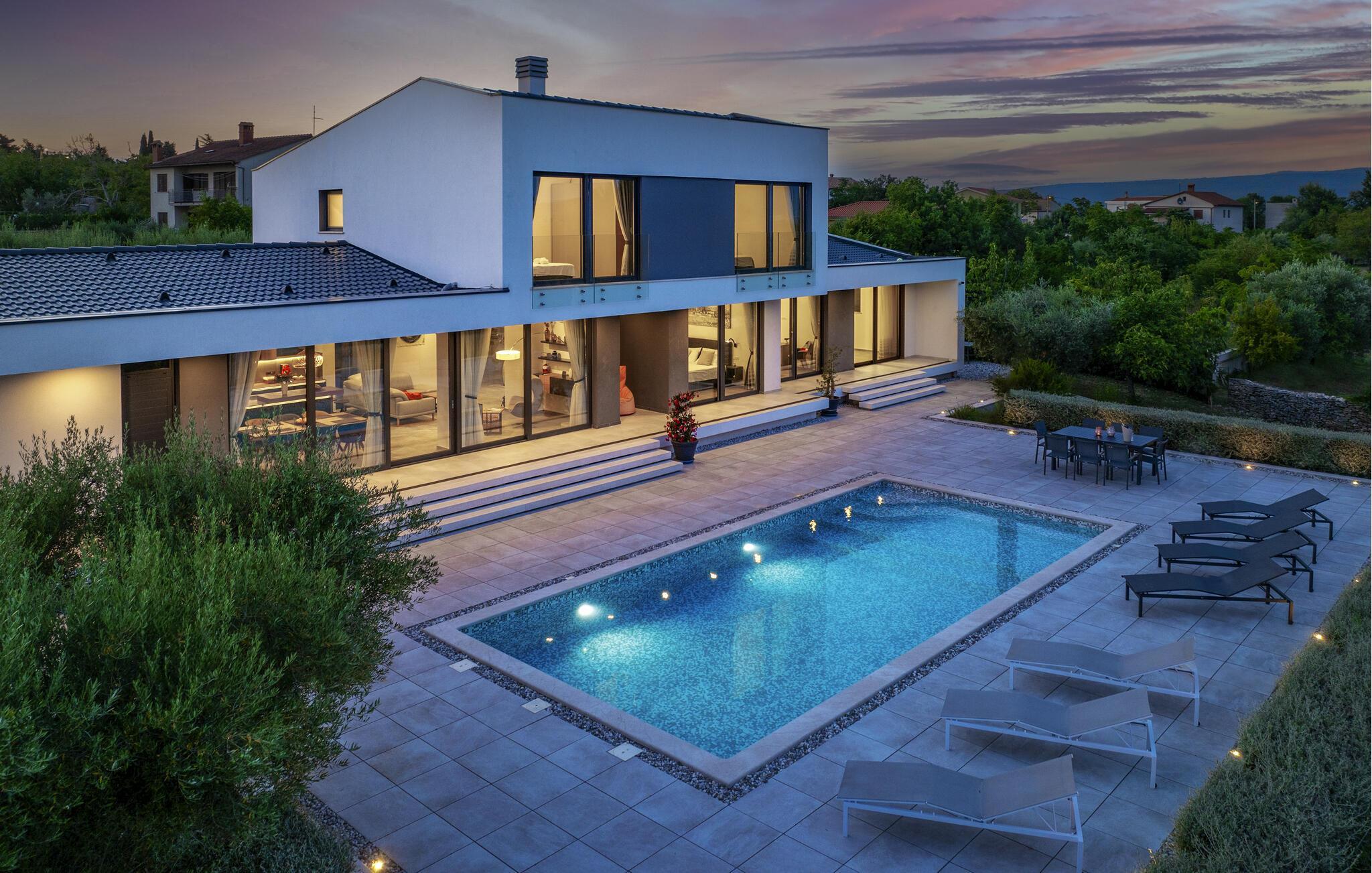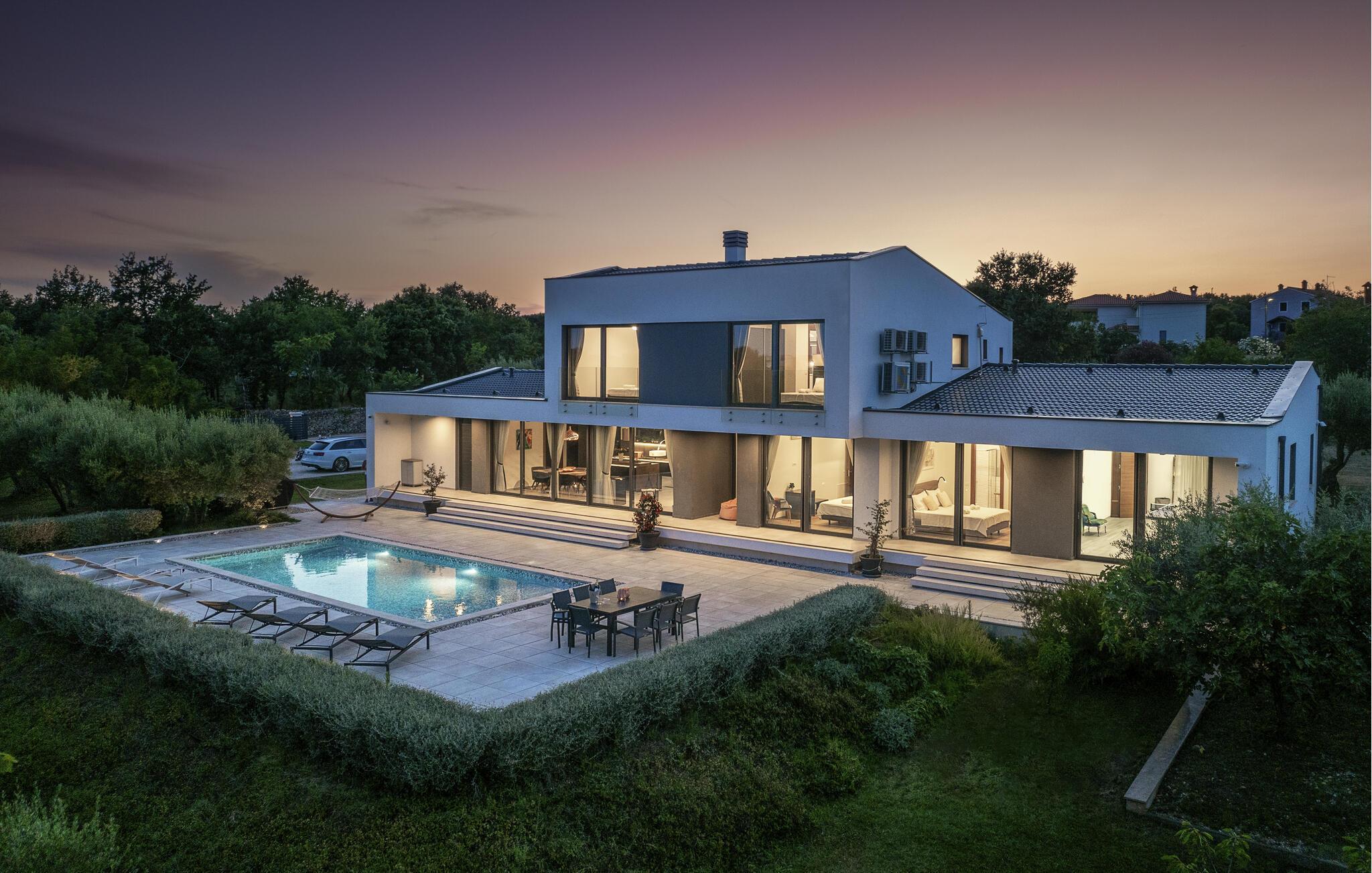 Flot og moderne feriehus med pool.