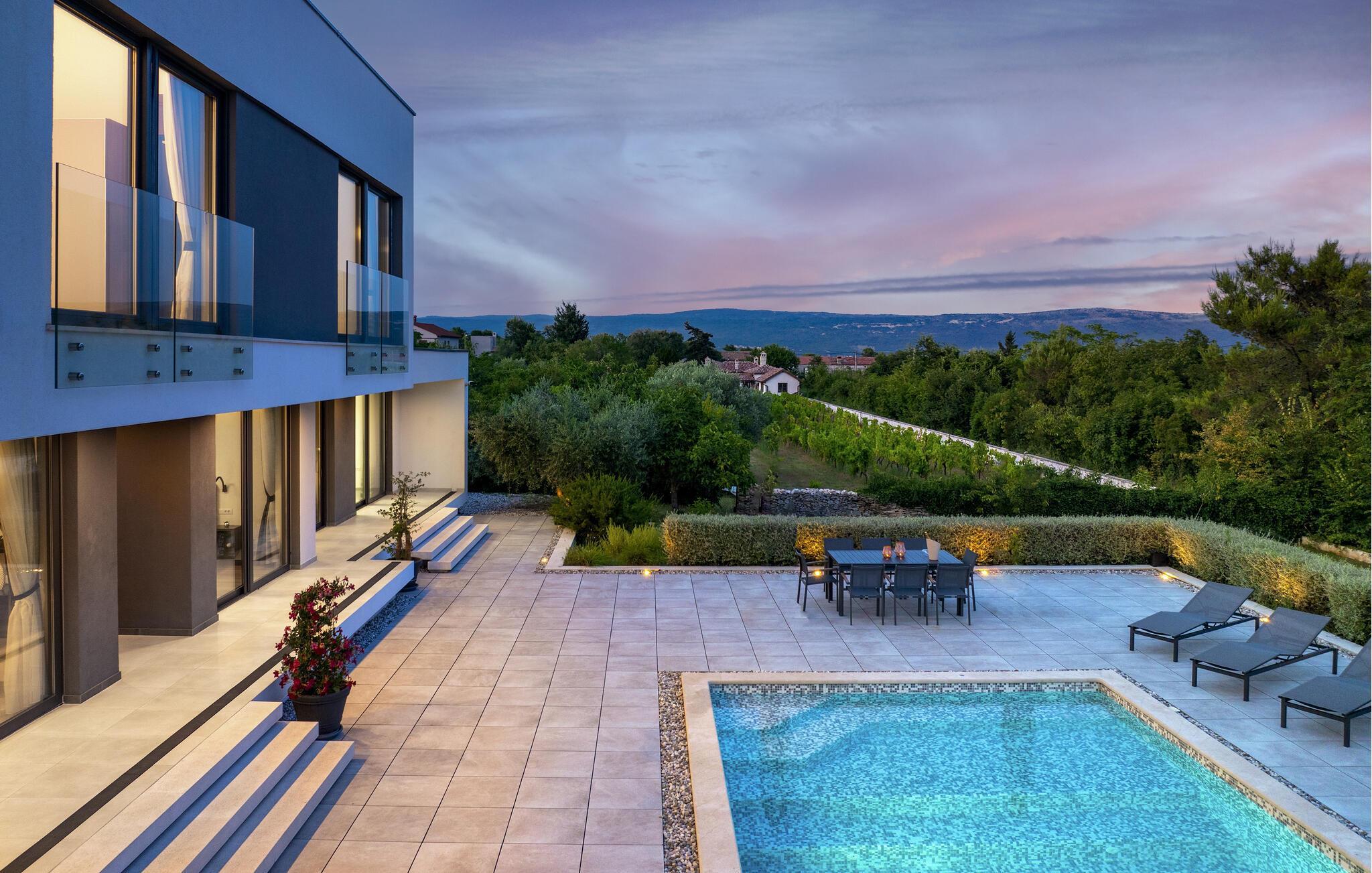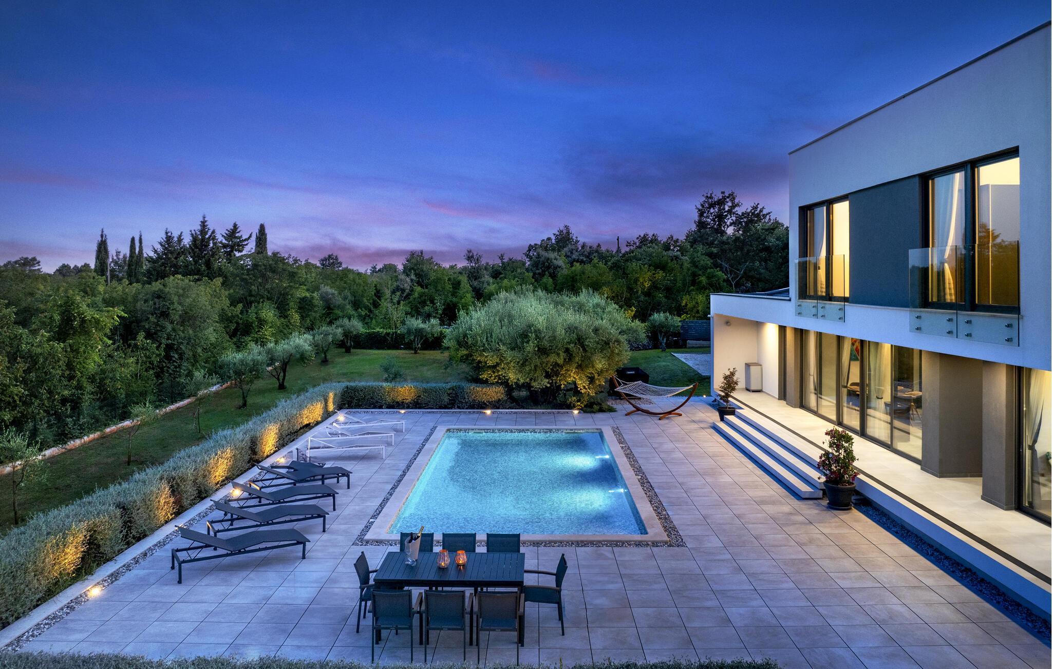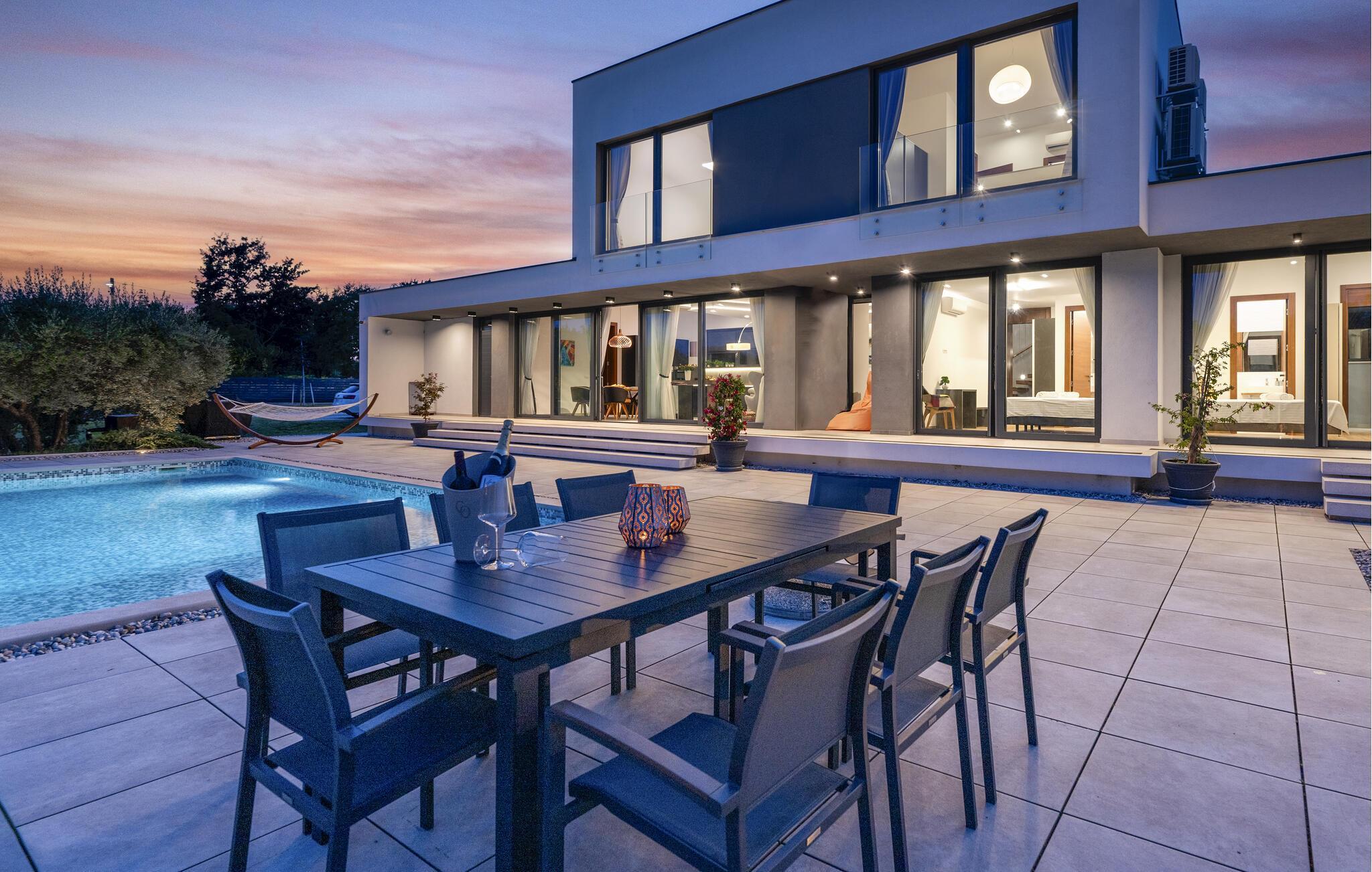 Flot og moderne feriehus med pool.