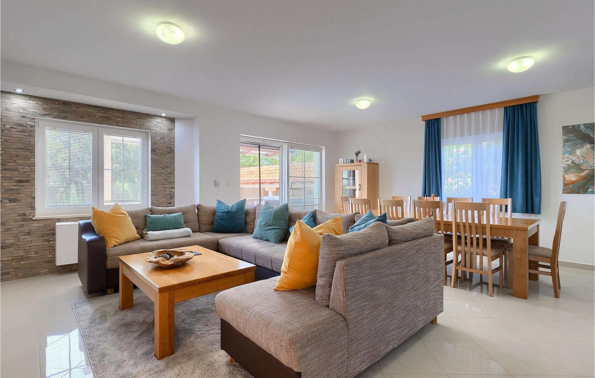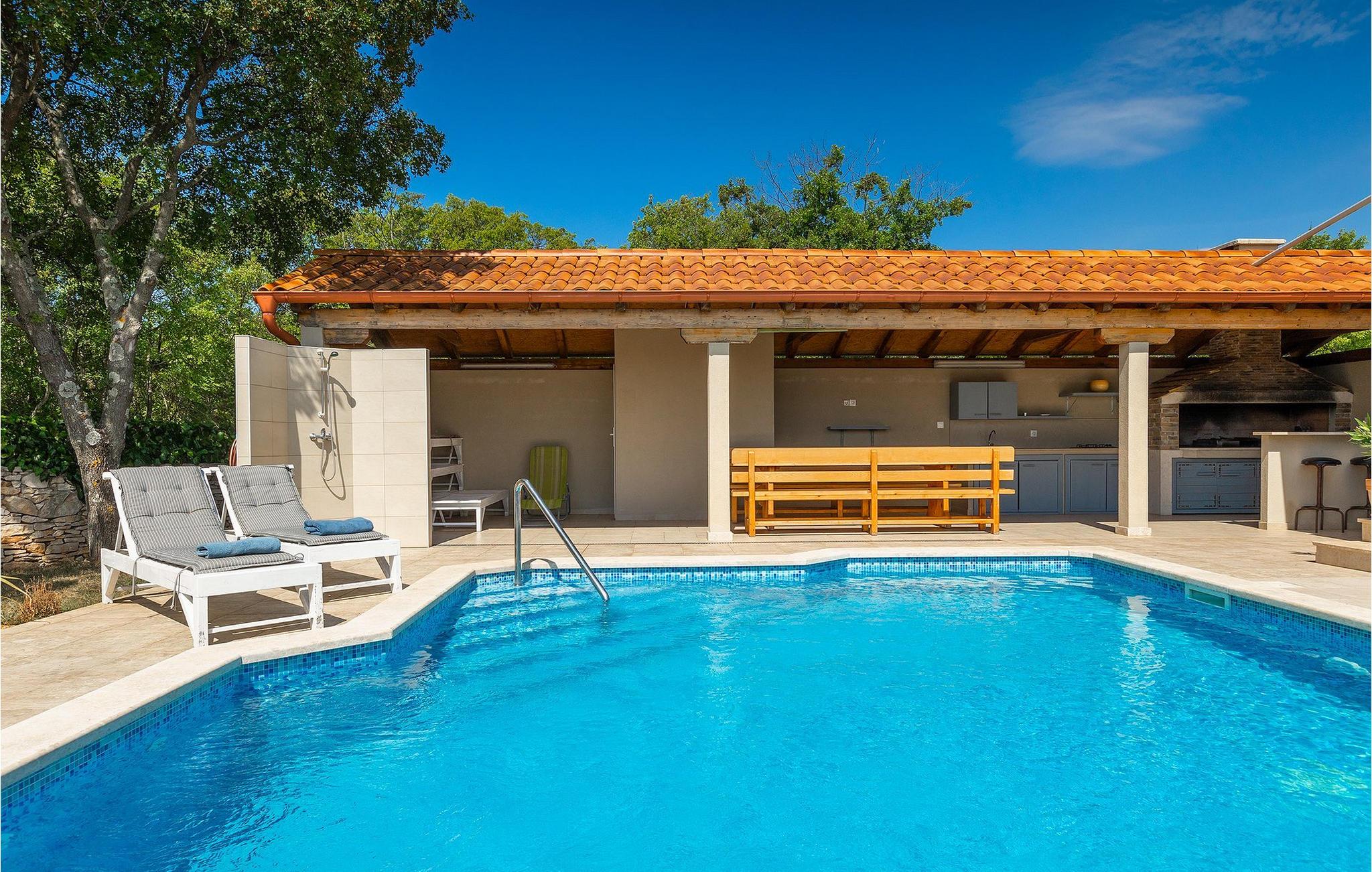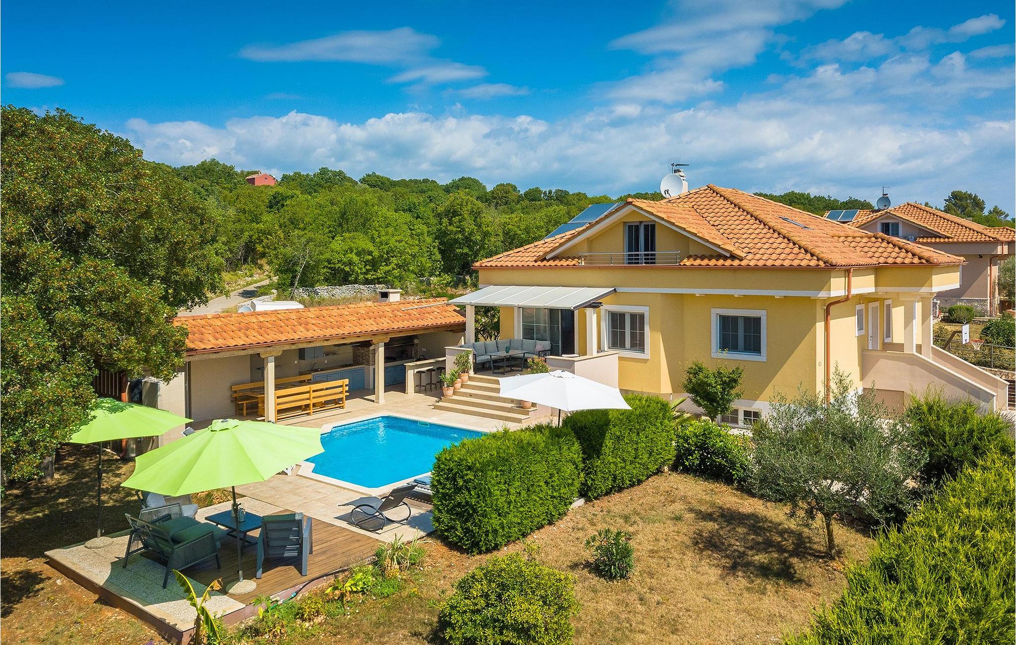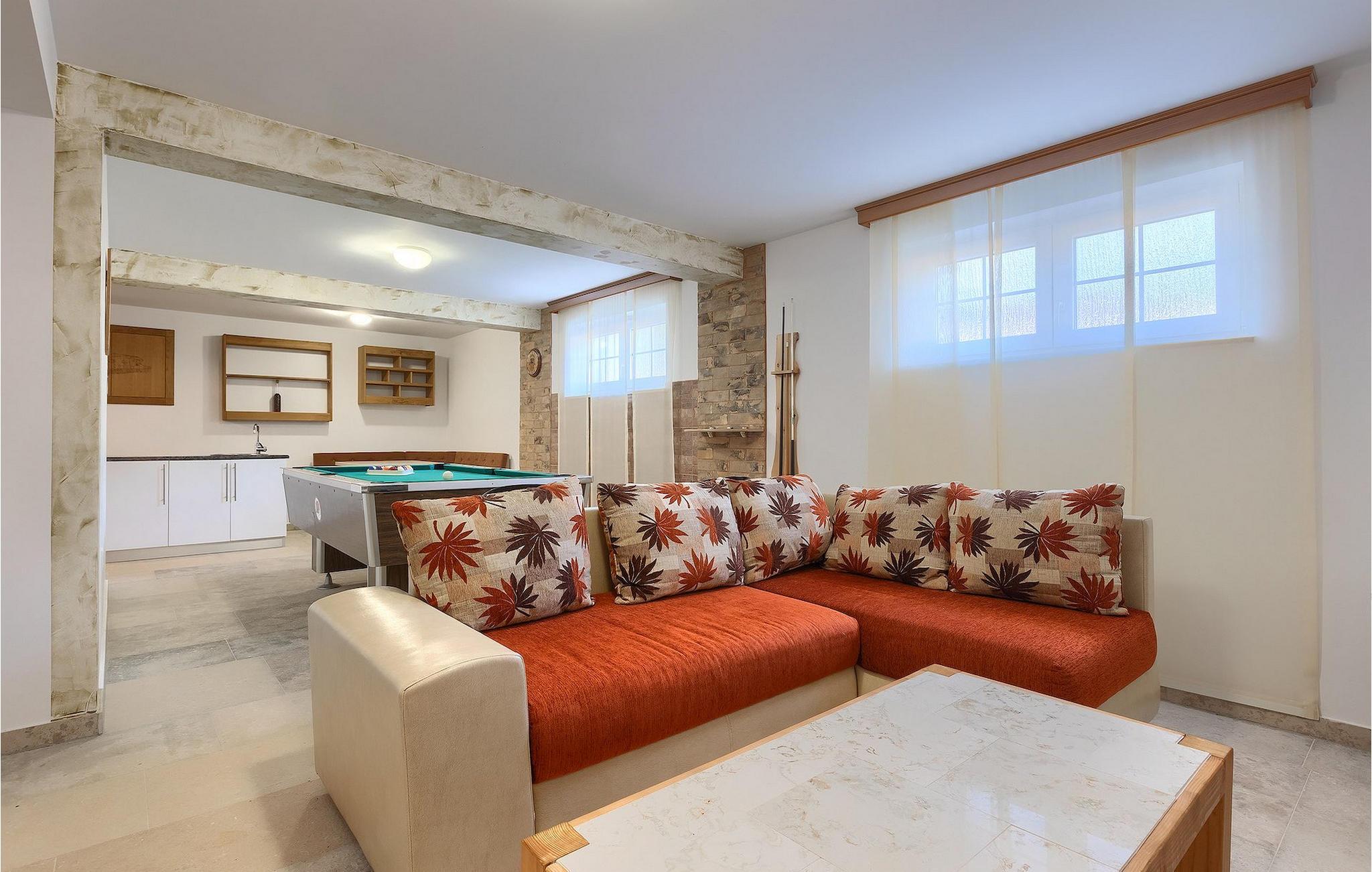 Villa Krase ligger i den lille landsby Rakalj på østkysten af Istrien. Med mere end 320 m2 boligareal fordelt på 2 etager og med 5 soveværelser kan dette skønne hus rumme op til 10 personer. Køkkenet, stue med spiseplads, 3 soveværelser med dobbeltsenge og 2 badeværelser med bruser er i stueetagen. Ovenpå er der 2 soveværelser og 2 badeværelser med bruser. Den private swimmingpool er på 28 m2. Poolområdet strækker sig til 1000 m2 og er udstyret med 10 liggestole og 3 parasoller. Haven omfatter også en grillplads med spisebord, hvor du kan nyde uforglemmelige stunder med familie eller venner. En basketballkurv og et bordtennisbord fuldender faciliteterne. Villaen tilbyder et lille fitnesscenter, sauna og jacuzzi. Der er også en lounge med et poolbord, fodbold og tv. Villa Krase er fuldt udstyret med aircondition og digitalt satellit-tv og trådløst internet. Der er rigelig parkeringsplads til din rådighed. Dette skønne feriehus ligger i den lille landsby Rakalj på østsiden af halvøen Istrien. Placeringen af villaen tilbyder en perfekt balance mellem fred og privat nydelse væk fra byens travlhed og turistmængder matchet med kort afstand til alle større halvø-byer. Pula, den største by i Istrien, kun 20 kilometer væk fra villaen, er verdensberømt for sit fantastiske Colosseum, et gammelt amfiteater, der blev bygget i det 1. århundrede, mens den romerske kejser Vespasian regerede denne del af verden. Udover kulturelle og historiske skønheder byder Istrien på en unik gastrooplevelse, velkendt i denne del af Europa. Hjemmelavet istrisk prosciutto (prsut), vin, istrisk pasta (fuzi) er blot nogle få af mange lækre gastro-fornøjelser, Istrien kan tilbyde for en ægte oplevelse af middelhavshjemmelavet køkken. Halvøen Istrien er også hjemsted for en af de smukkeste nationalparker i denne del af Europa - Brijuni. Det kan tilgås med båd med afgang fra Fazana. En bil anbefales.