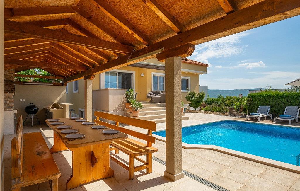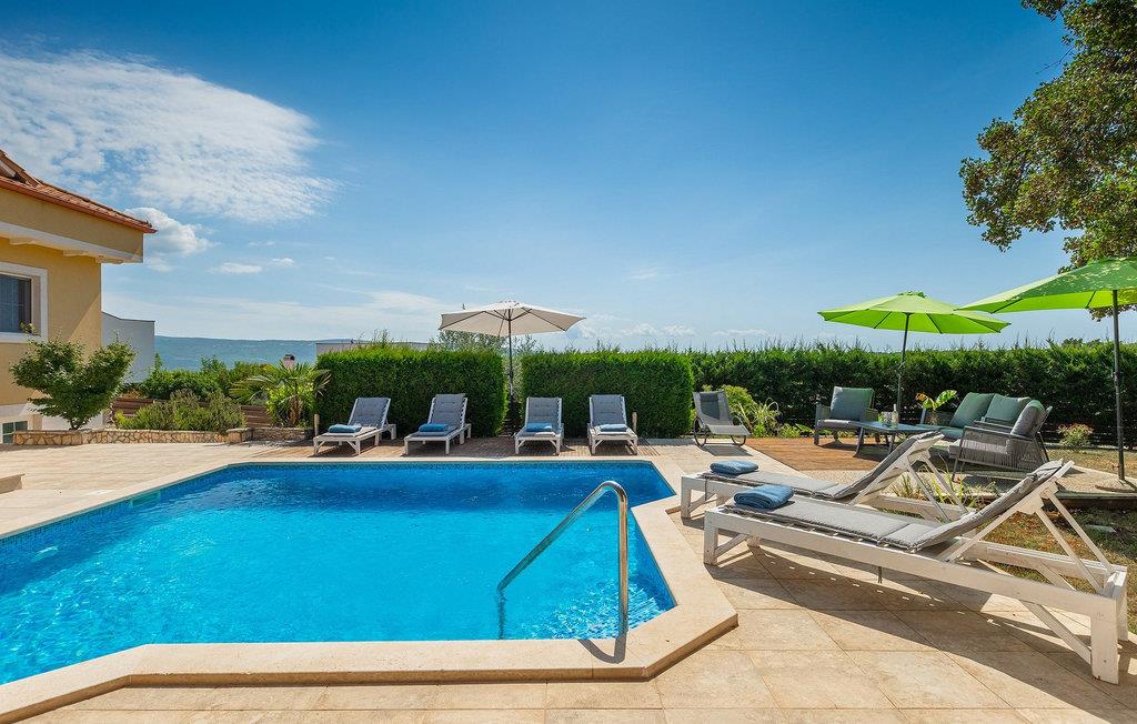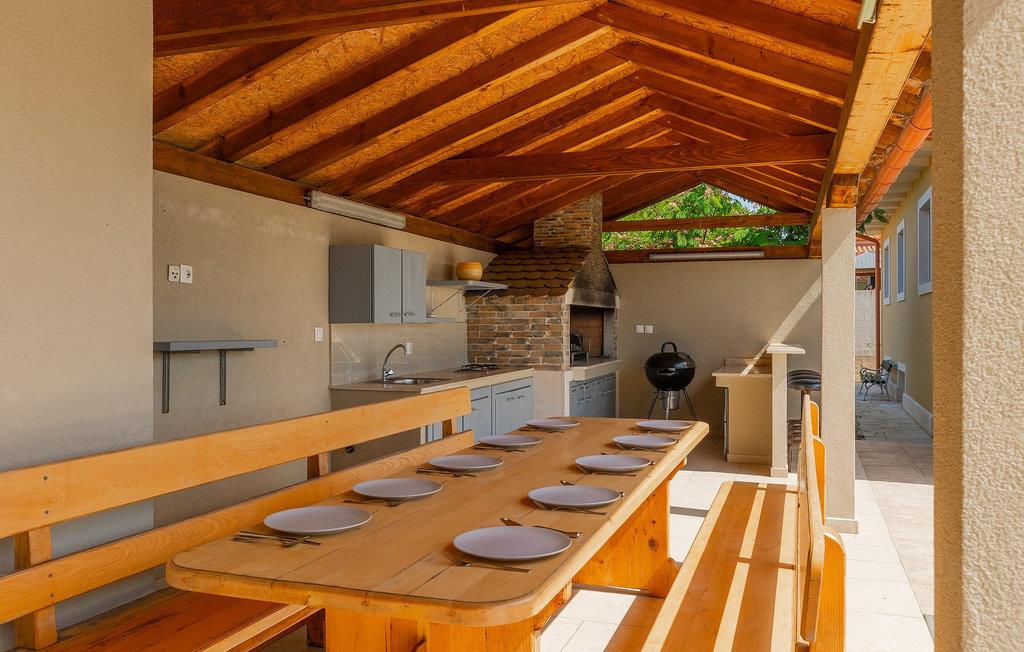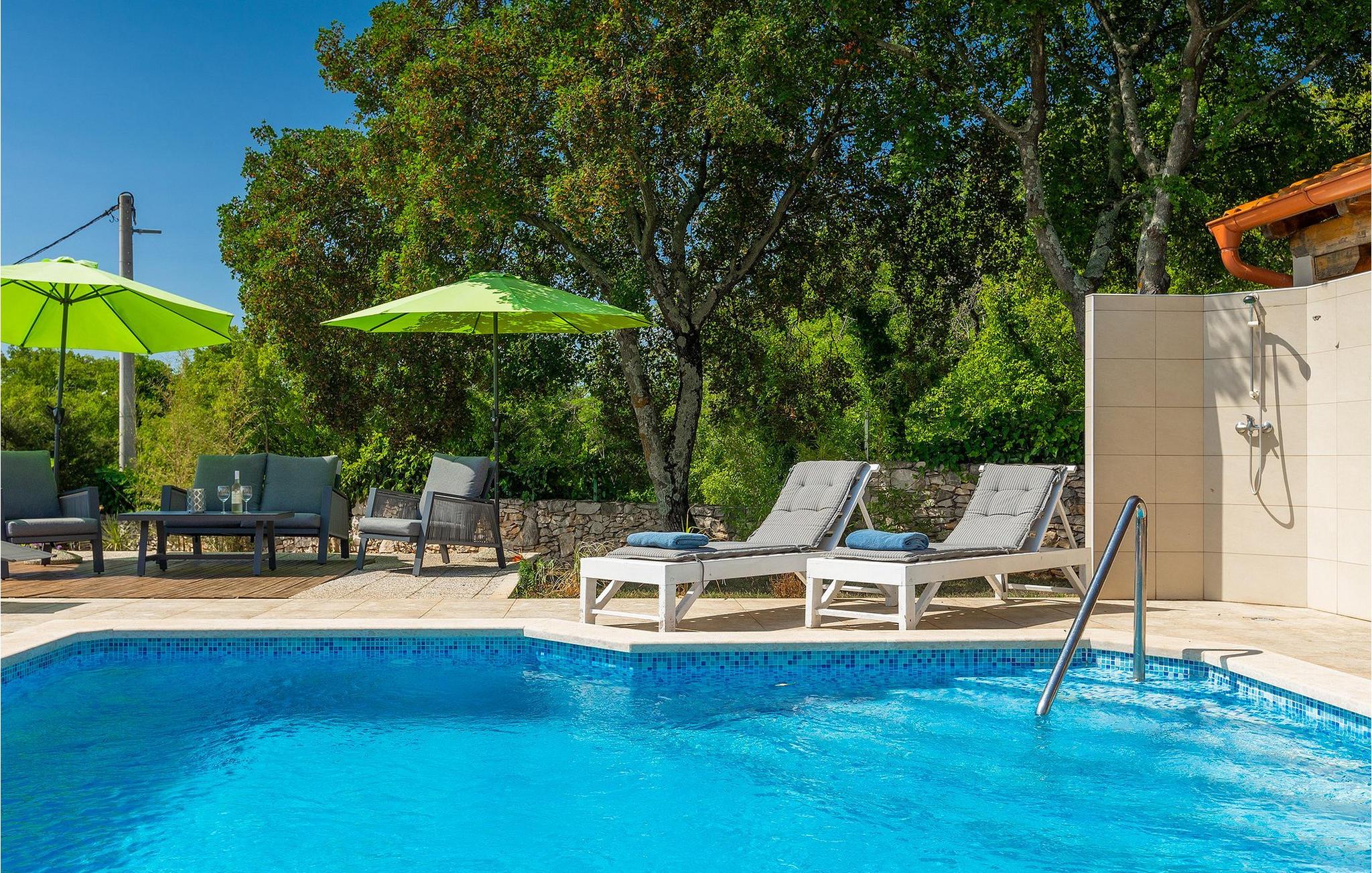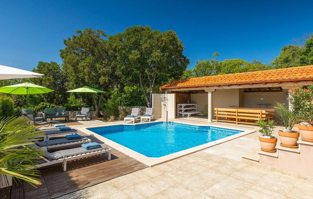 Villa Krase ligger i den lille landsby Rakalj på østkysten af Istrien. Med mere end 320 m2 boligareal fordelt på 2 etager og med 5 soveværelser kan dette skønne hus rumme op til 10 personer. Køkkenet, stue med spiseplads, 3 soveværelser med dobbeltsenge og 2 badeværelser med bruser er i stueetagen. Ovenpå er der 2 soveværelser og 2 badeværelser med bruser. Den private swimmingpool er på 28 m2. Poolområdet strækker sig til 1000 m2 og er udstyret med 10 liggestole og 3 parasoller. Haven omfatter også en grillplads med spisebord, hvor du kan nyde uforglemmelige stunder med familie eller venner. En basketballkurv og et bordtennisbord fuldender faciliteterne. Villaen tilbyder et lille fitnesscenter, sauna og jacuzzi. Der er også en lounge med et poolbord, fodbold og tv. Villa Krase er fuldt udstyret med aircondition og digitalt satellit-tv og trådløst internet. Der er rigelig parkeringsplads til din rådighed. Dette skønne feriehus ligger i den lille landsby Rakalj på østsiden af halvøen Istrien. Placeringen af villaen tilbyder en perfekt balance mellem fred og privat nydelse væk fra byens travlhed og turistmængder matchet med kort afstand til alle større halvø-byer. Pula, den største by i Istrien, kun 20 kilometer væk fra villaen, er verdensberømt for sit fantastiske Colosseum, et gammelt amfiteater, der blev bygget i det 1. århundrede, mens den romerske kejser Vespasian regerede denne del af verden. Udover kulturelle og historiske skønheder byder Istrien på en unik gastrooplevelse, velkendt i denne del af Europa. Hjemmelavet istrisk prosciutto (prsut), vin, istrisk pasta (fuzi) er blot nogle få af mange lækre gastro-fornøjelser, Istrien kan tilbyde for en ægte oplevelse af middelhavshjemmelavet køkken. Halvøen Istrien er også hjemsted for en af de smukkeste nationalparker i denne del af Europa - Brijuni. Det kan tilgås med båd med afgang fra Fazana. En bil anbefales.